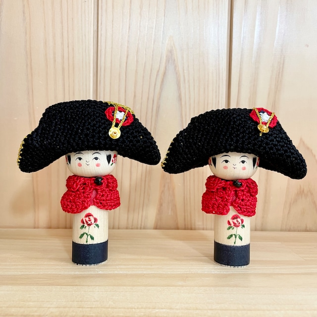 【佐藤英之工人:弥治郎系】フランスこけし ナポレオン帽子セット: 約8cm