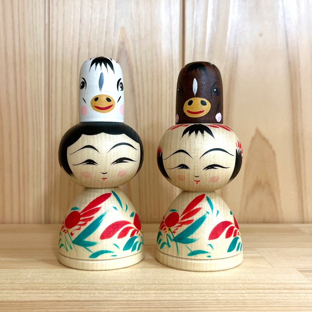 【平賀輝幸工人:作並系】干支こけし えじこ 馬:約12㎝ N6TeH-212 N6TeH-218
