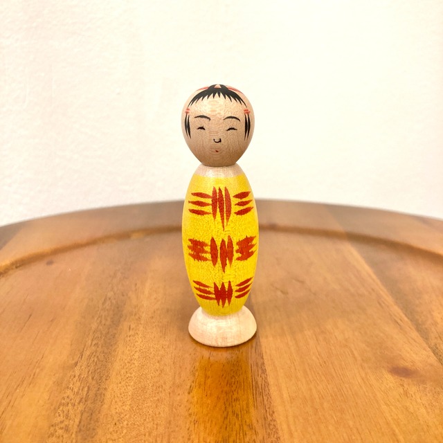 【岡本雄工人:鳴子系】小寸こけし 黄:約2.2寸 6.5㎝ N4YO-38