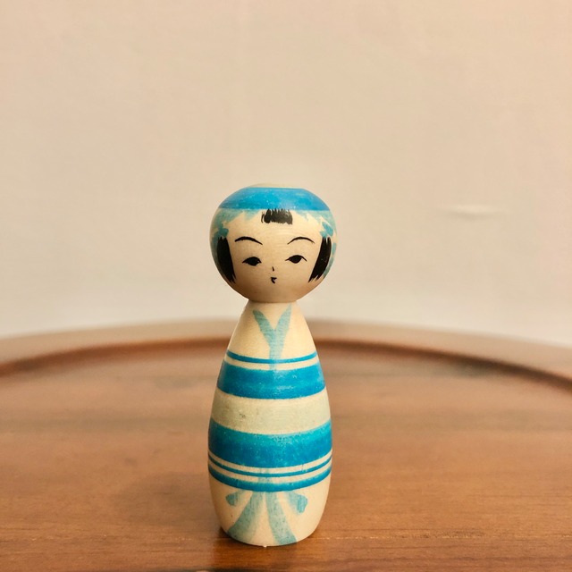 【新山真由美工人:弥治郎系】2寸 こけし 小寸 水色 : 約6cm N10MaN-321