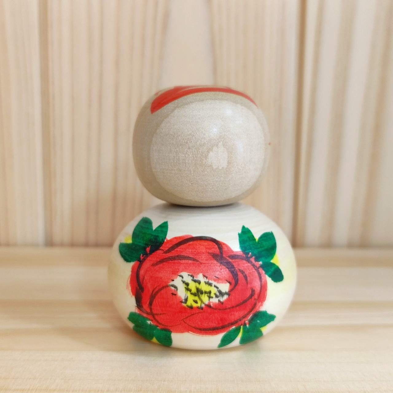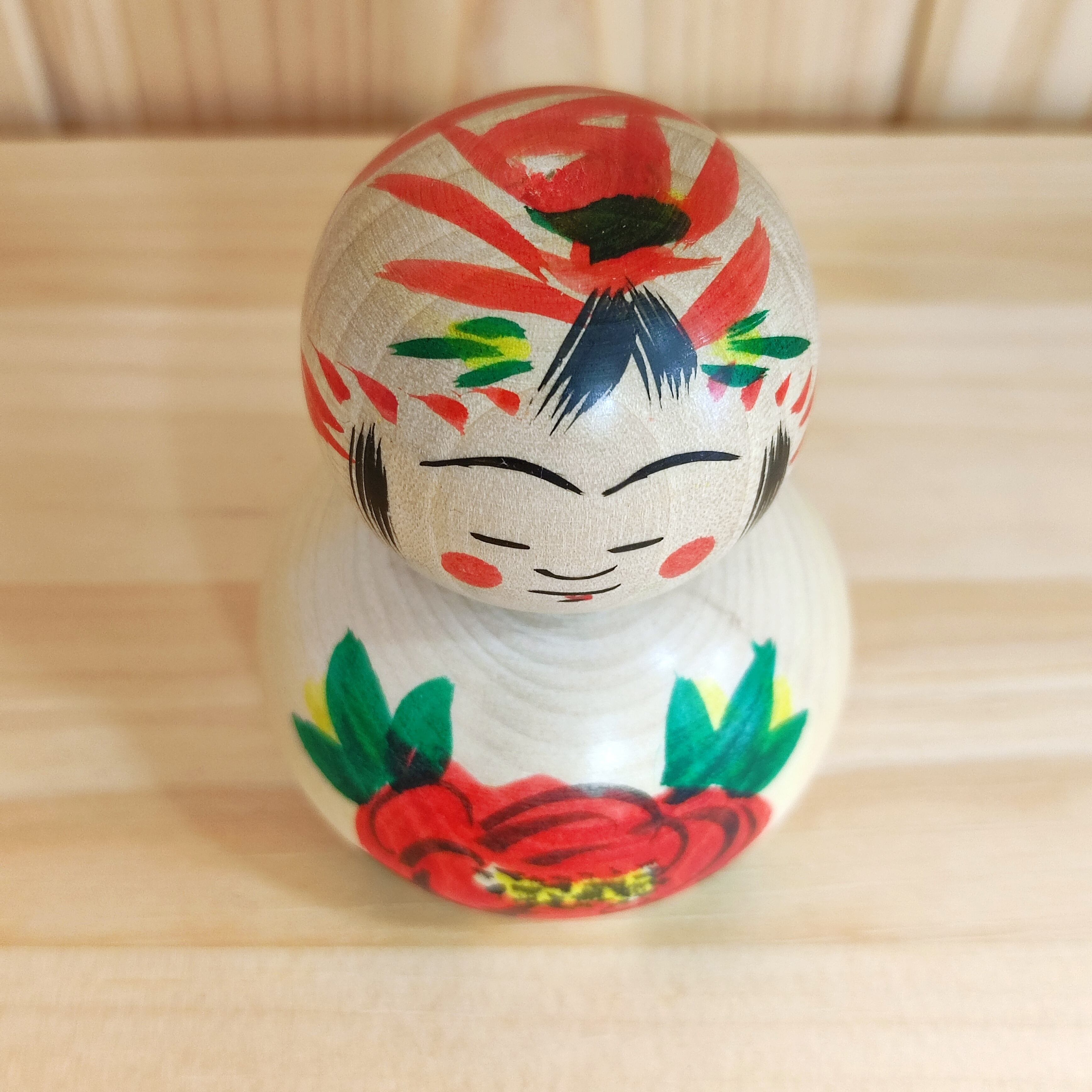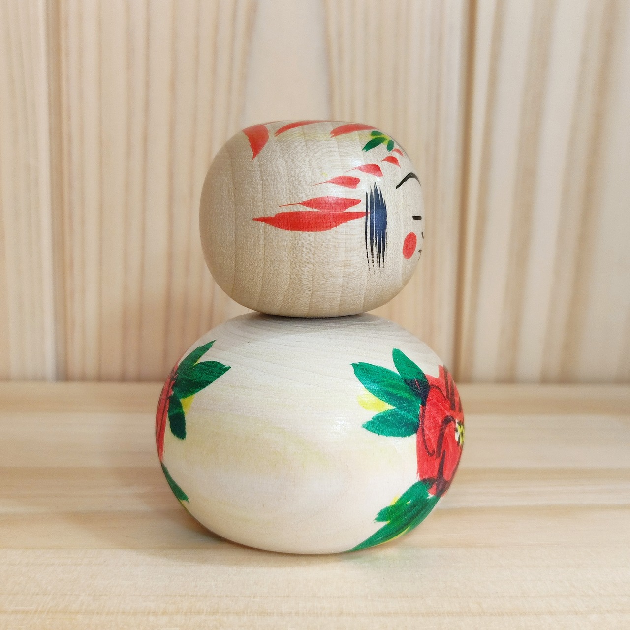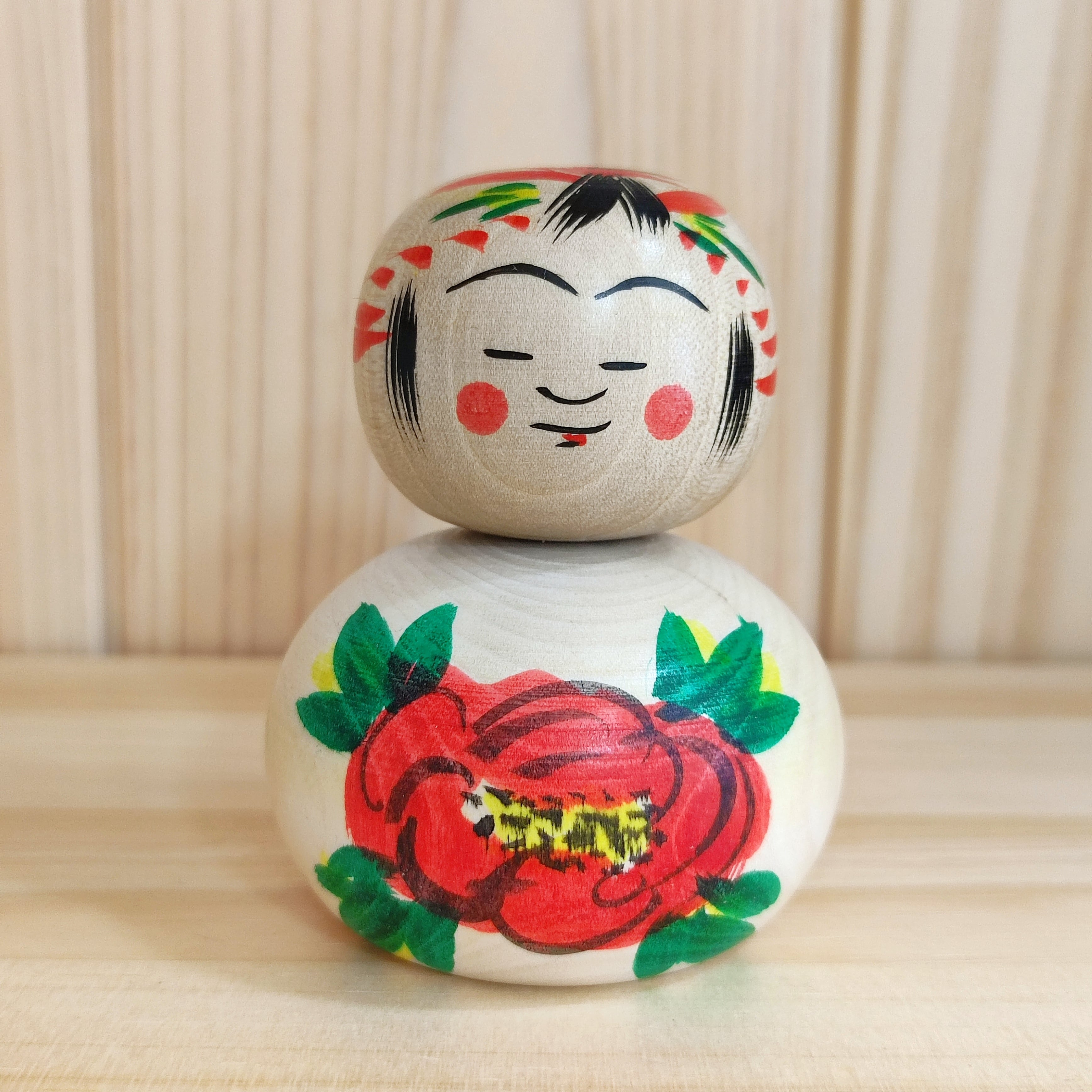 Since all kokeshi dolls are handmade by craftsmen, the grain and coloring of each kokeshi doll differs from one another.