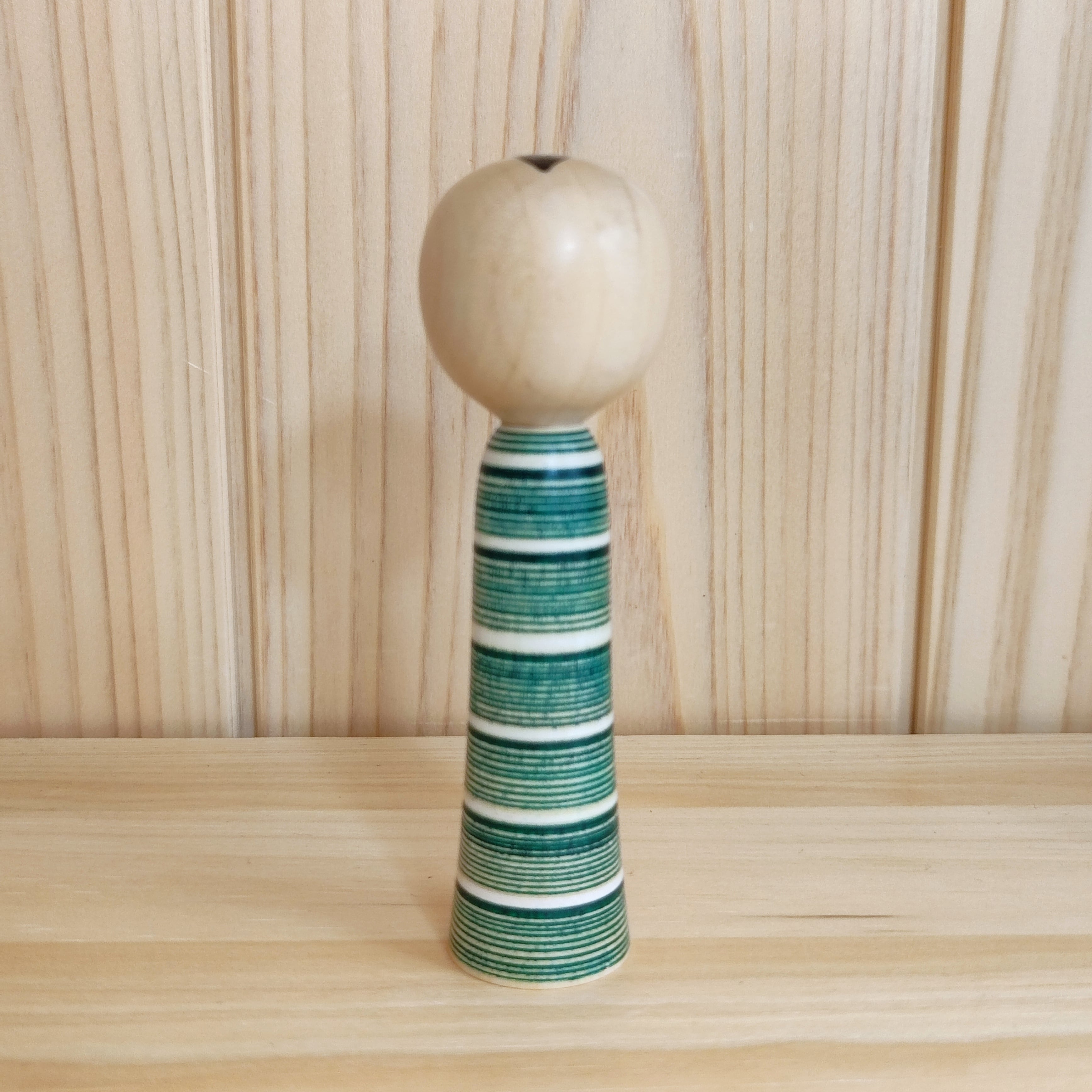 【高橋義一工人:鳴子系】3寸 こけし ろくろ線 緑:9cm N4YT-6
