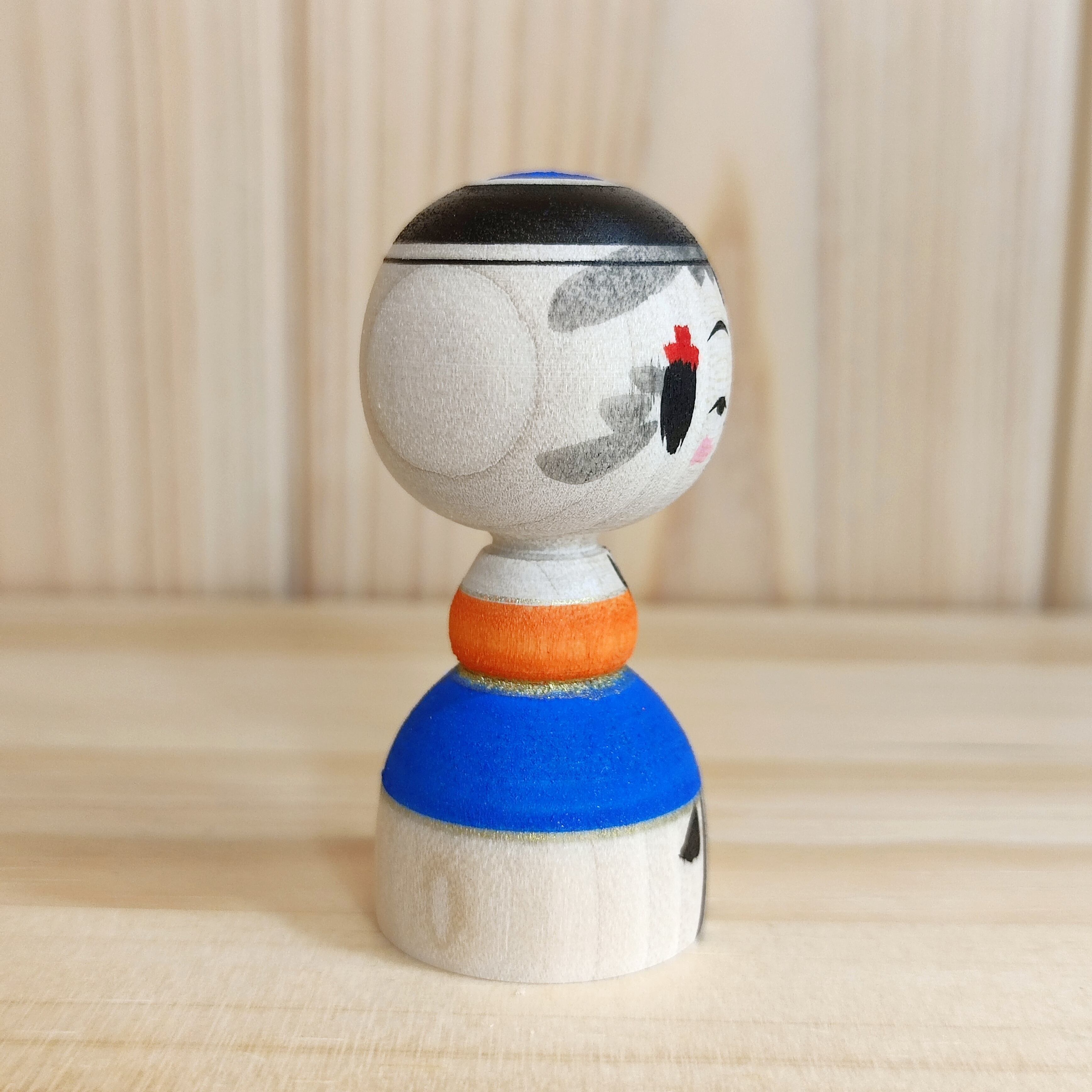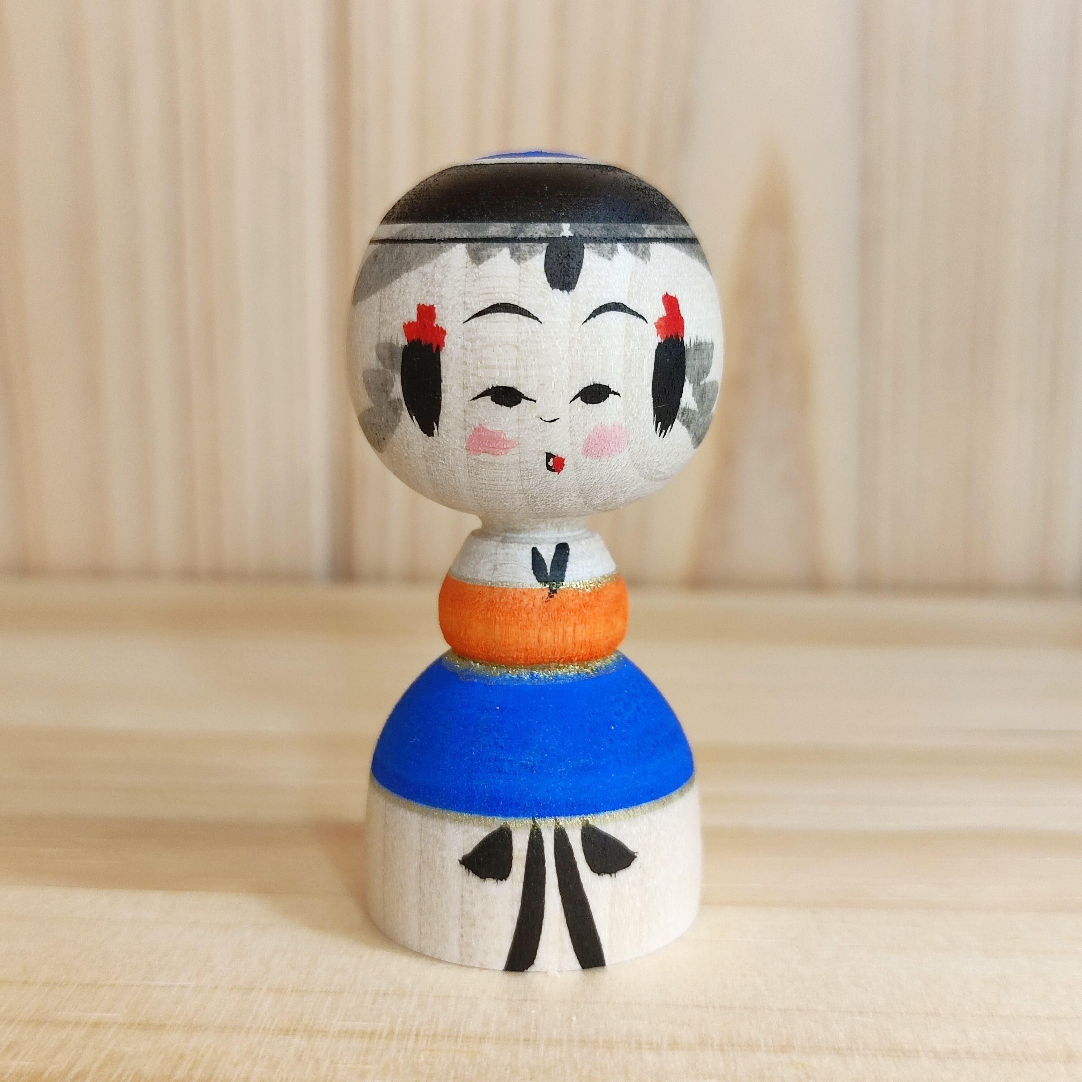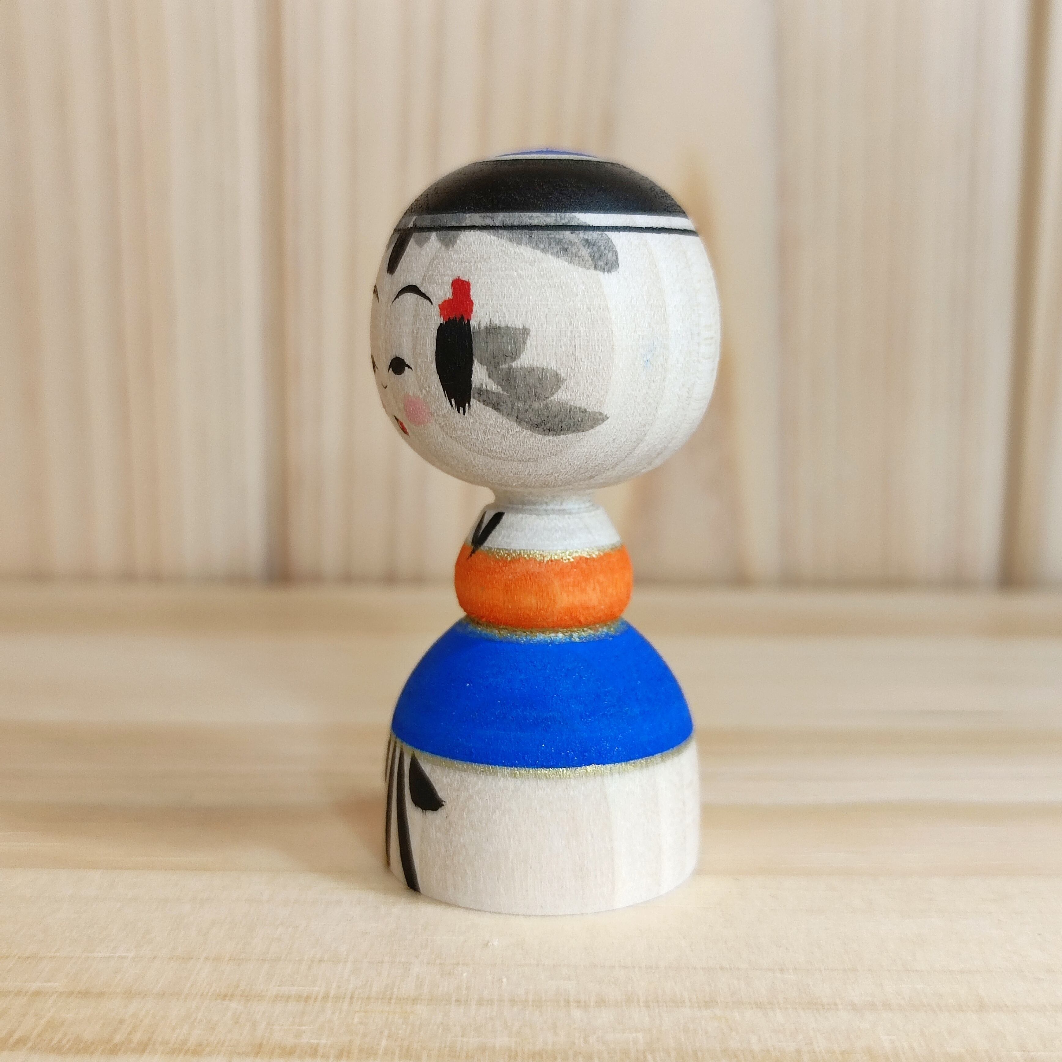 【池内潮音工人:弥治郎系】2寸 こけし マットカラー オレンジ・青:6cm N10SI-191