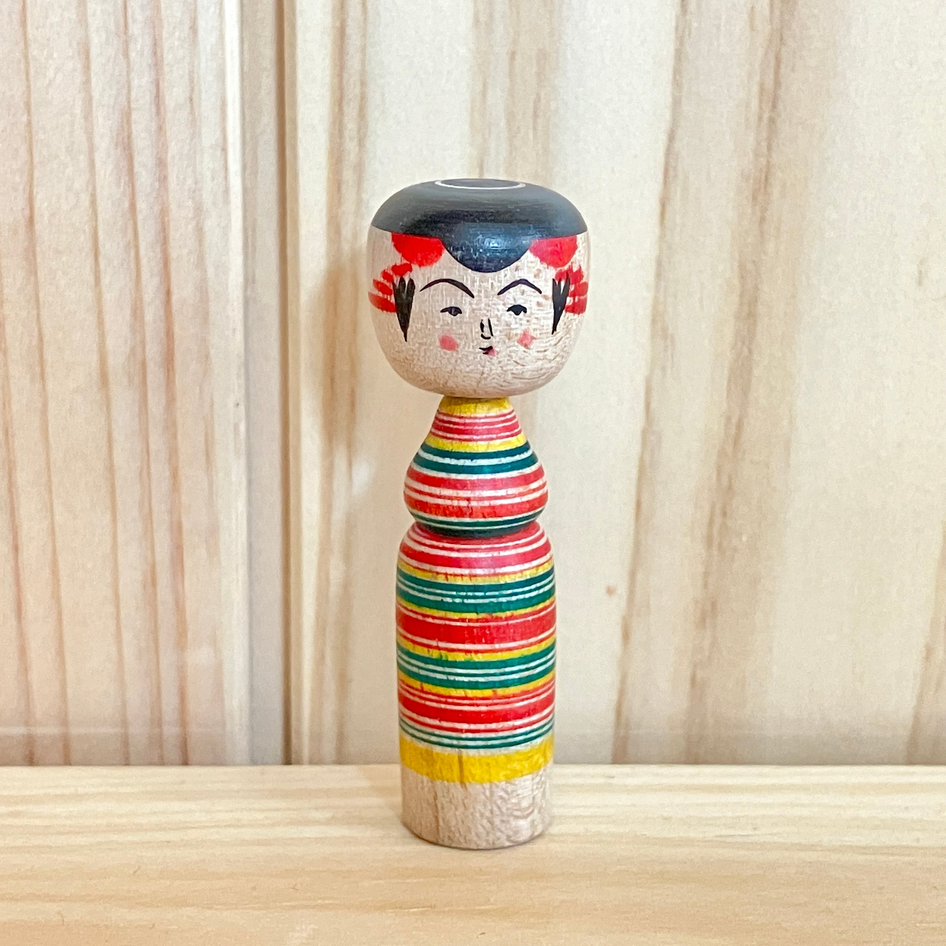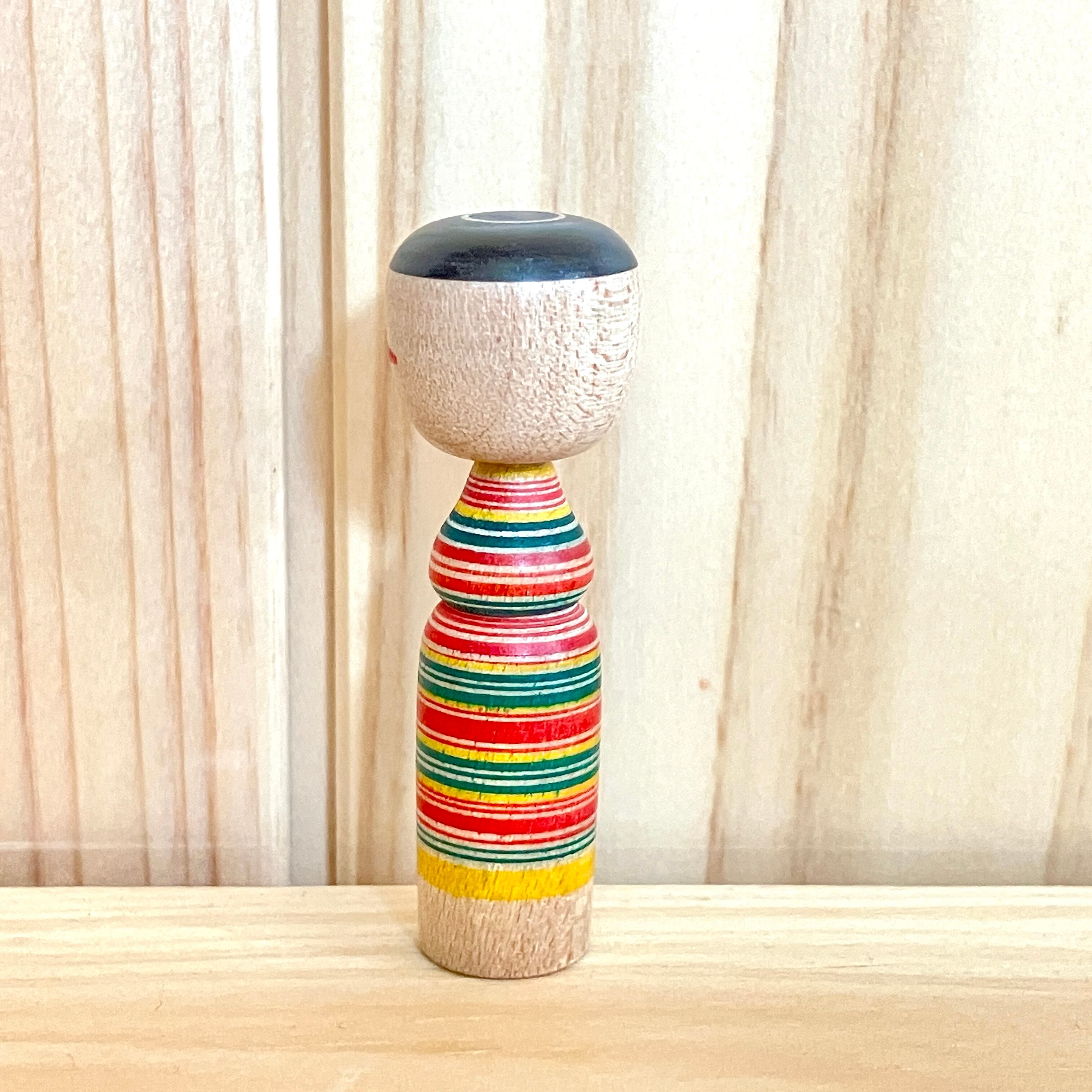 【佐藤誠孝工人:弥治郎系】極小寸 こけし 赤緑黄:1.5寸 4.5cm