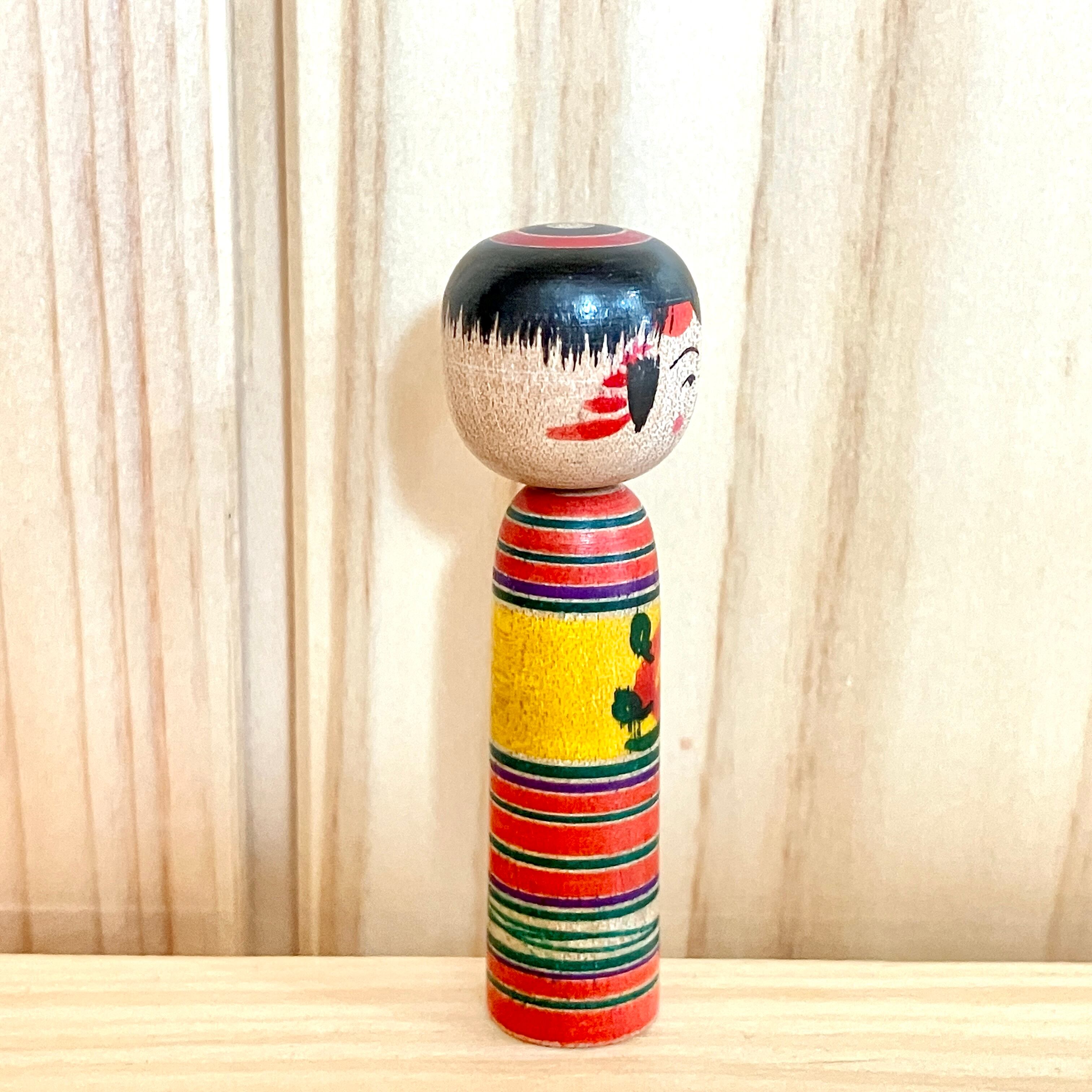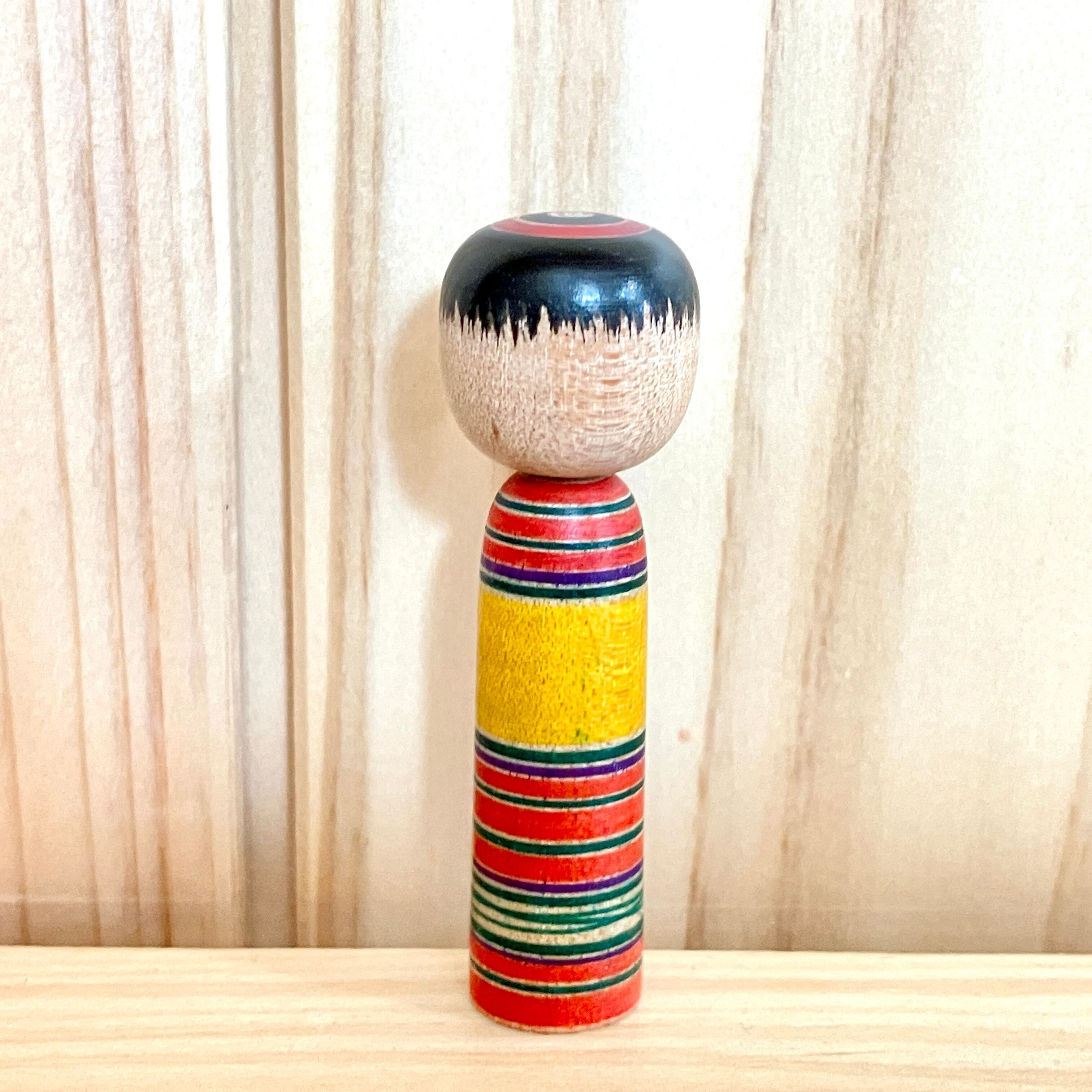【佐藤誠孝工人:弥治郎系】 極小寸 こけし 赤黄:1.5寸 4.5cm