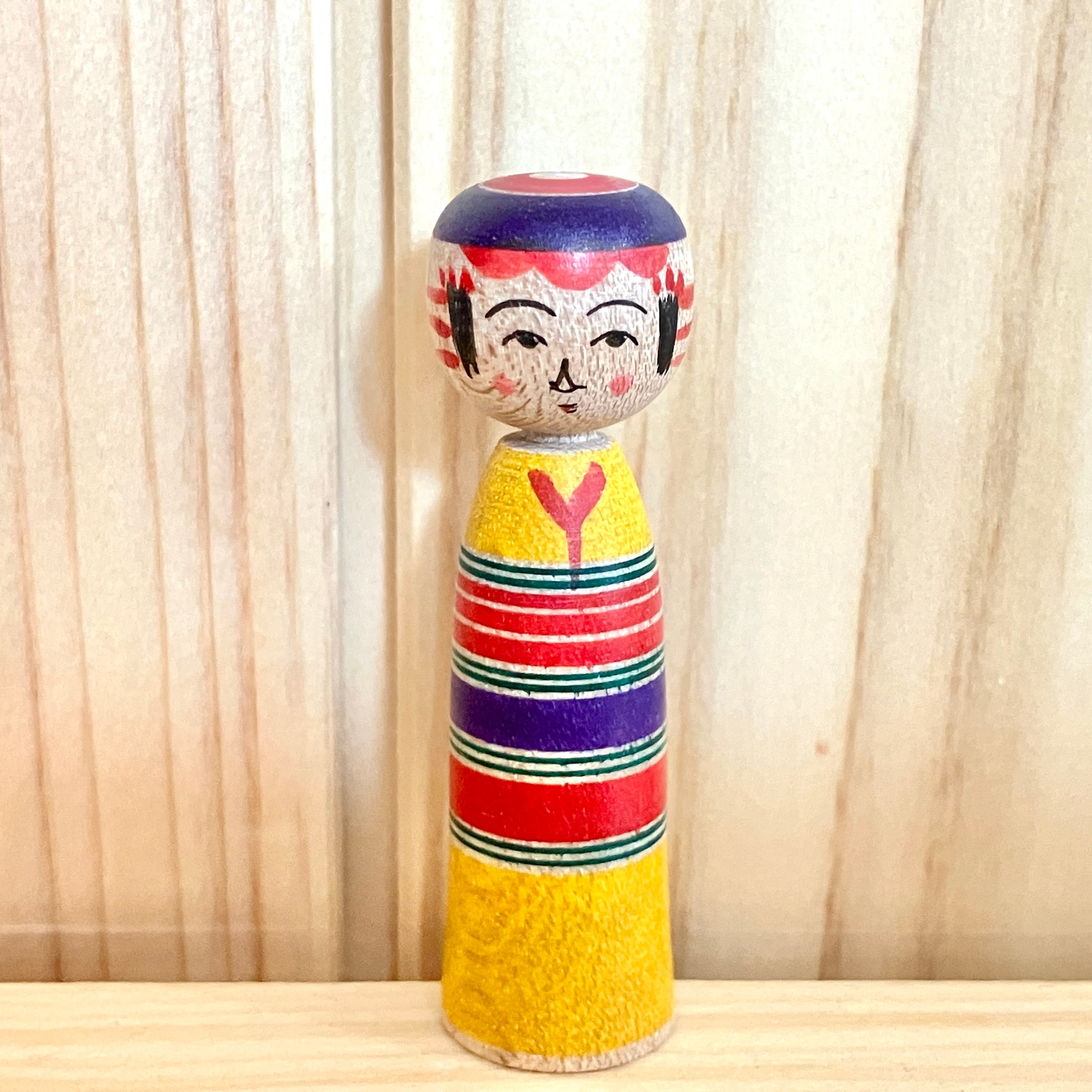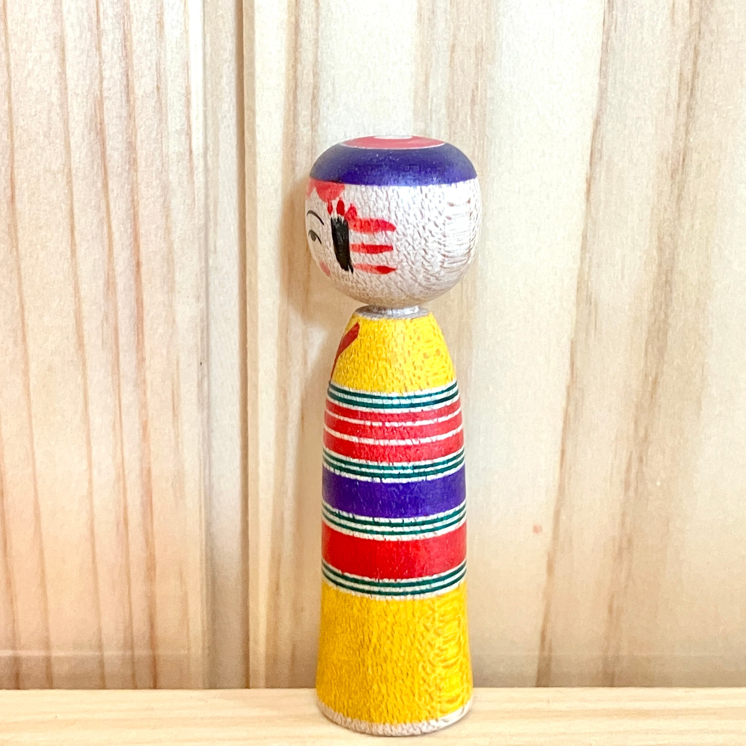 【佐藤誠孝工人:弥治郎系】 極小寸 こけし 黄赤紫:1.5寸 4.5cm