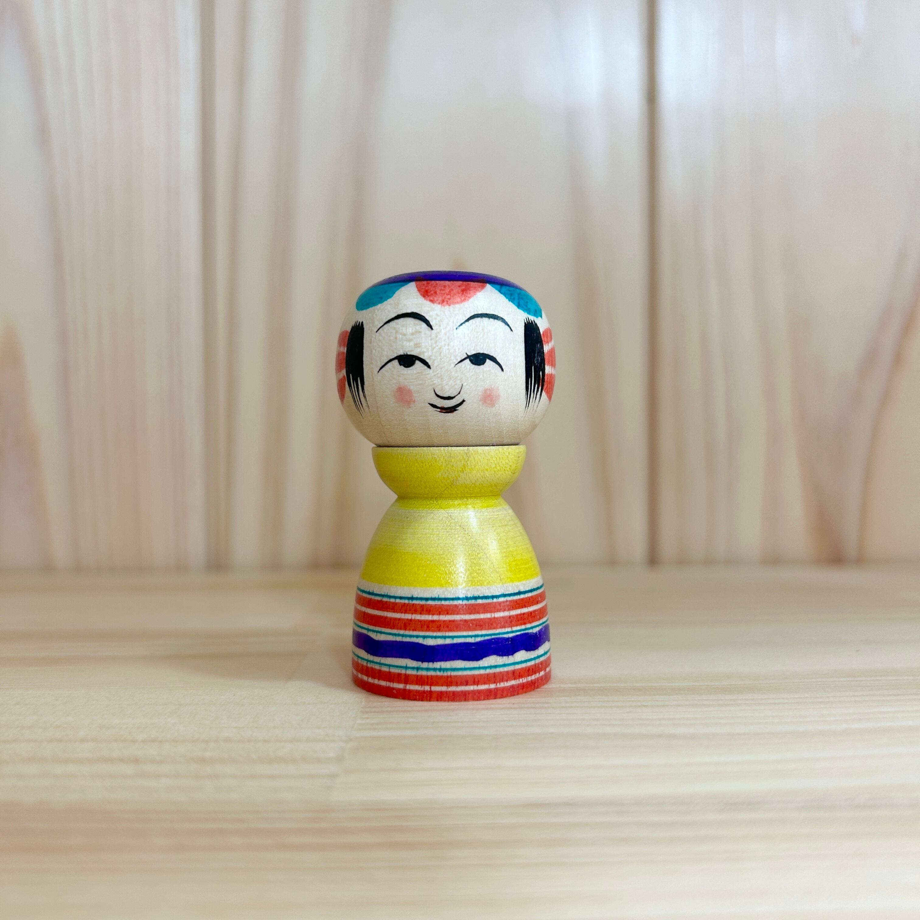 【鎌田孝志工人:弥治郎系】こけし ろくろ 黄緑赤紫:2寸 6cm N10KK-68