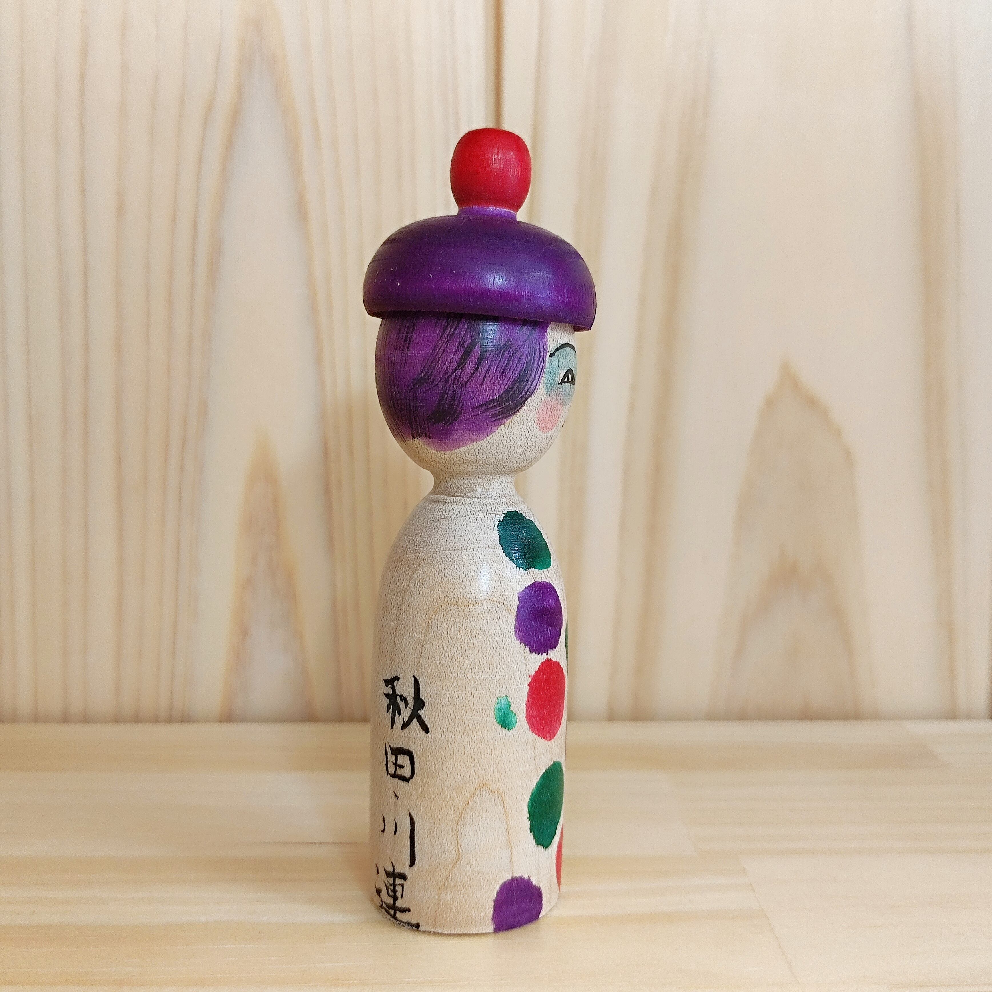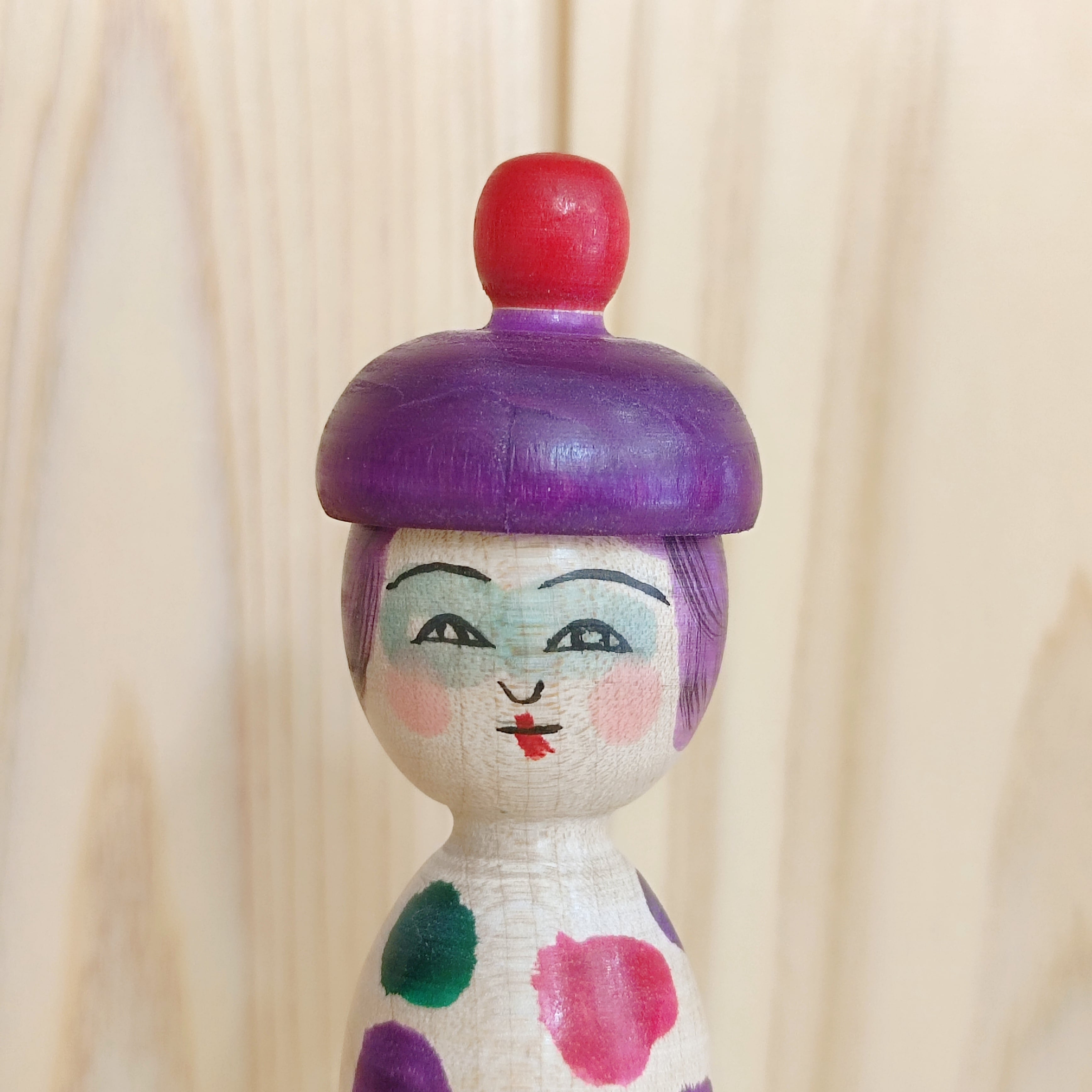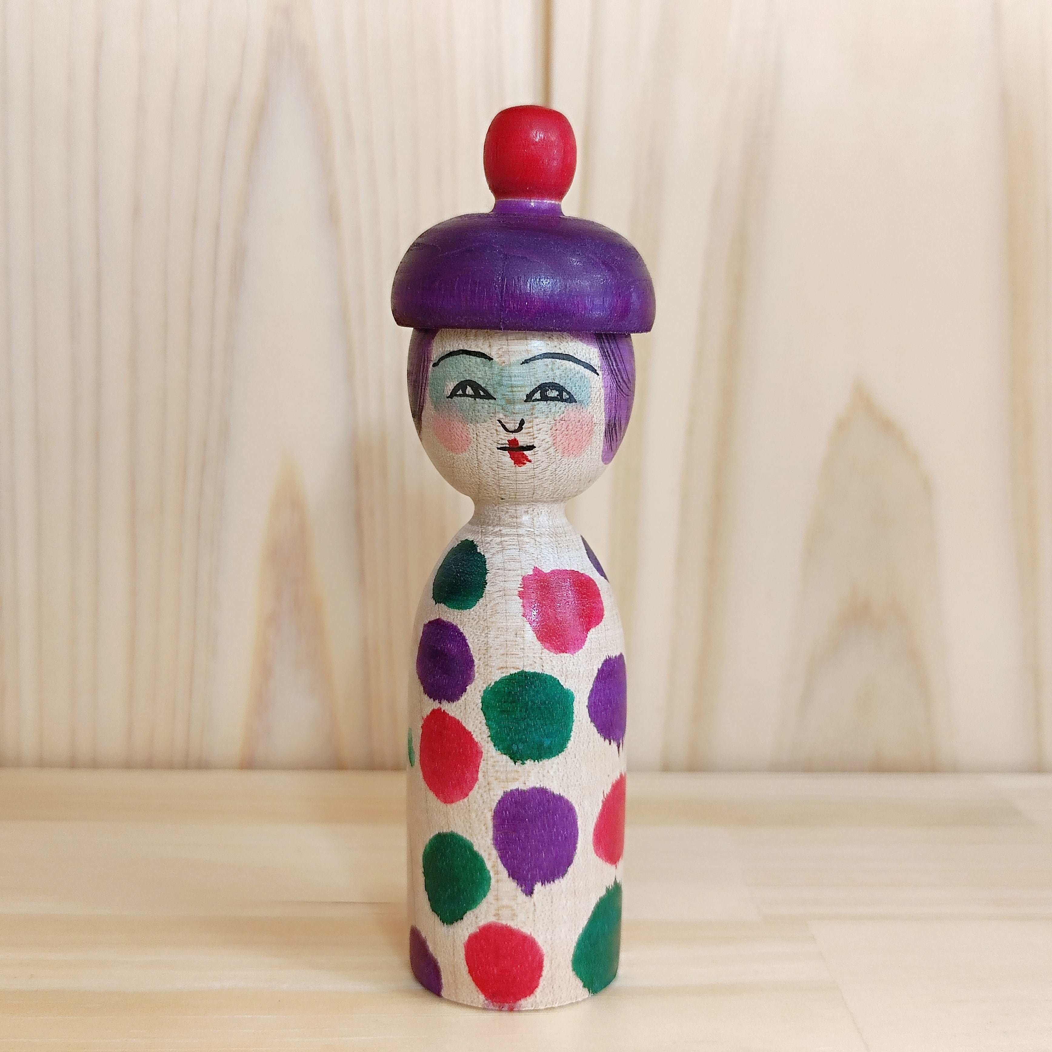 【佐藤達雄工人:木地山系】こけし 紫帽子 カラフルドット:11.5cm N3TS-90