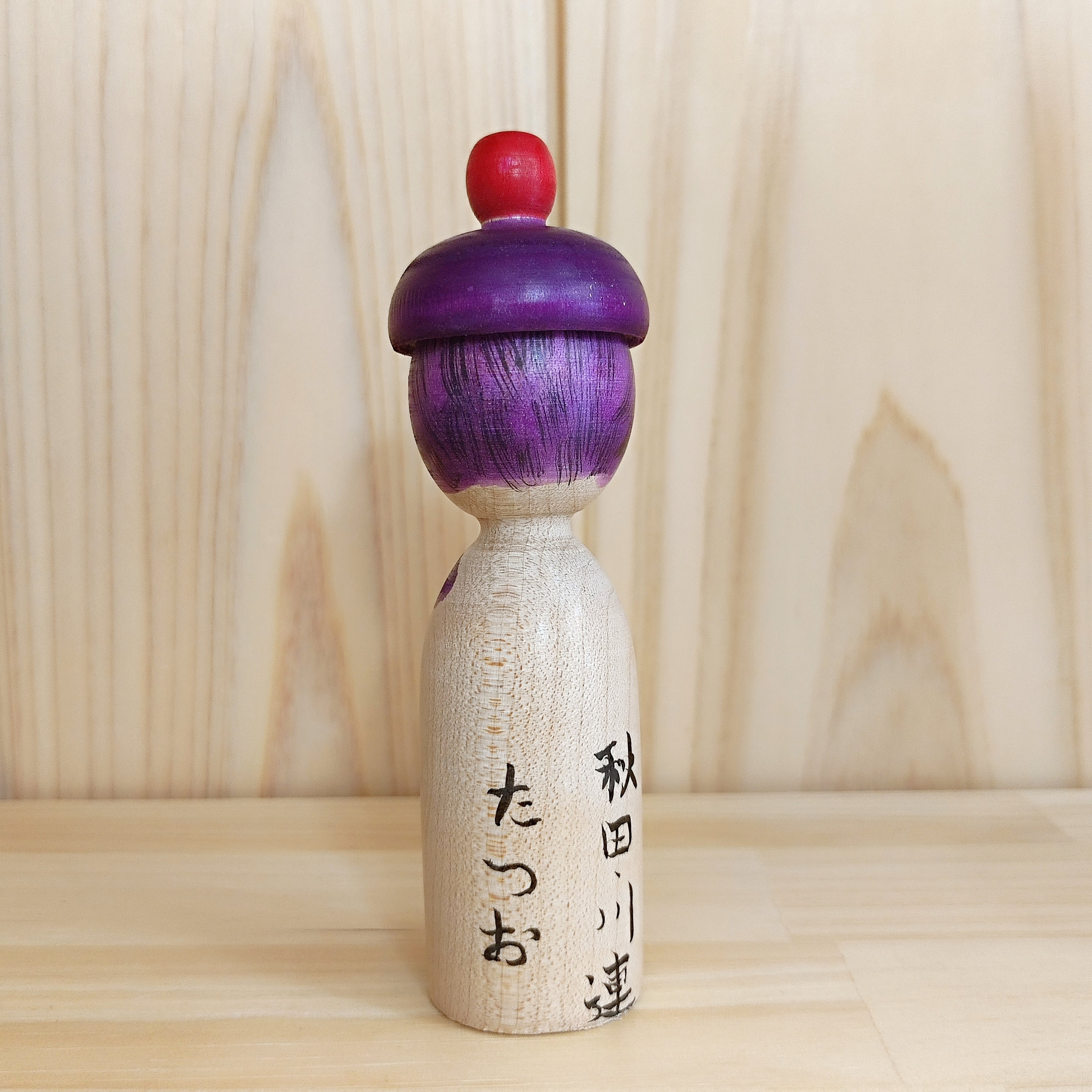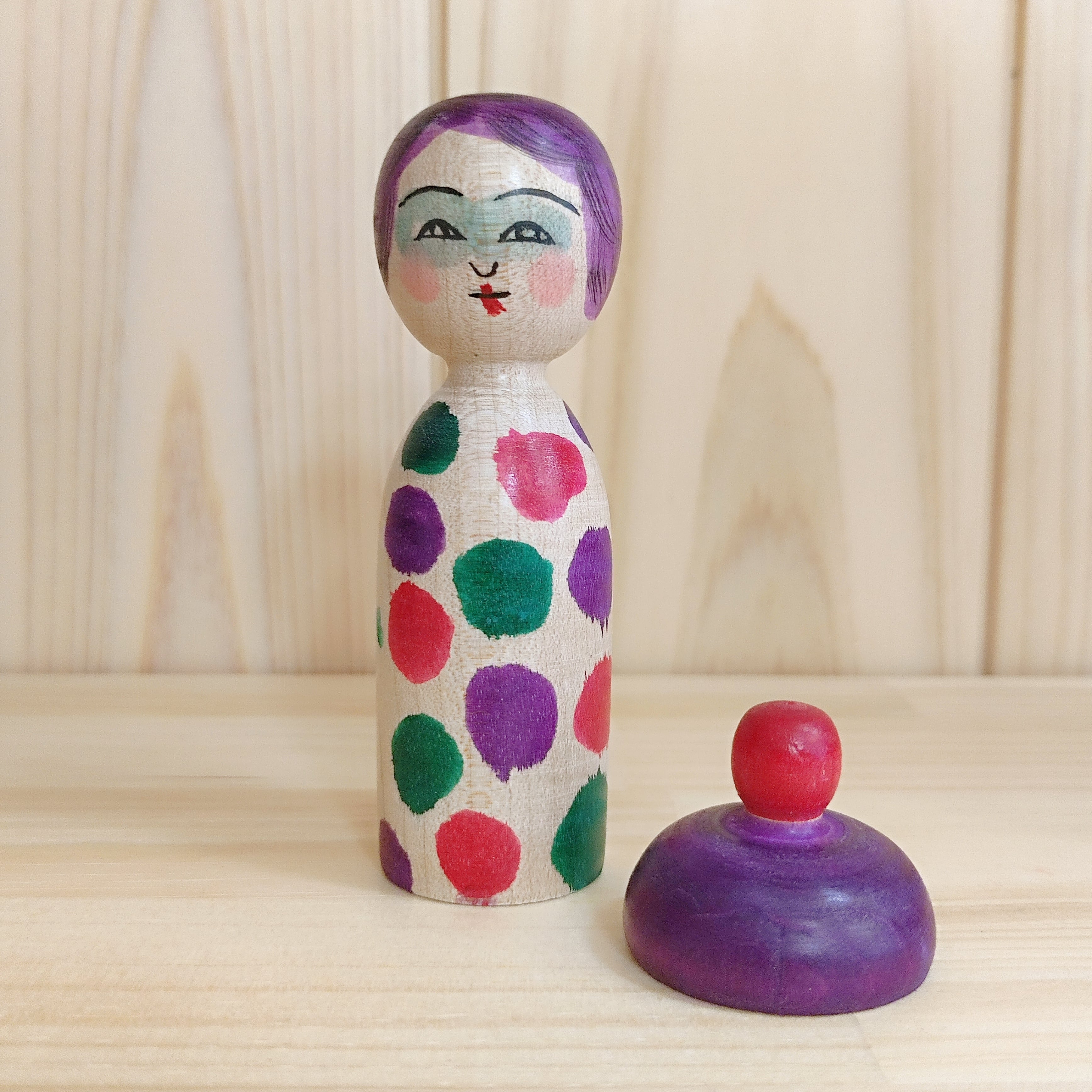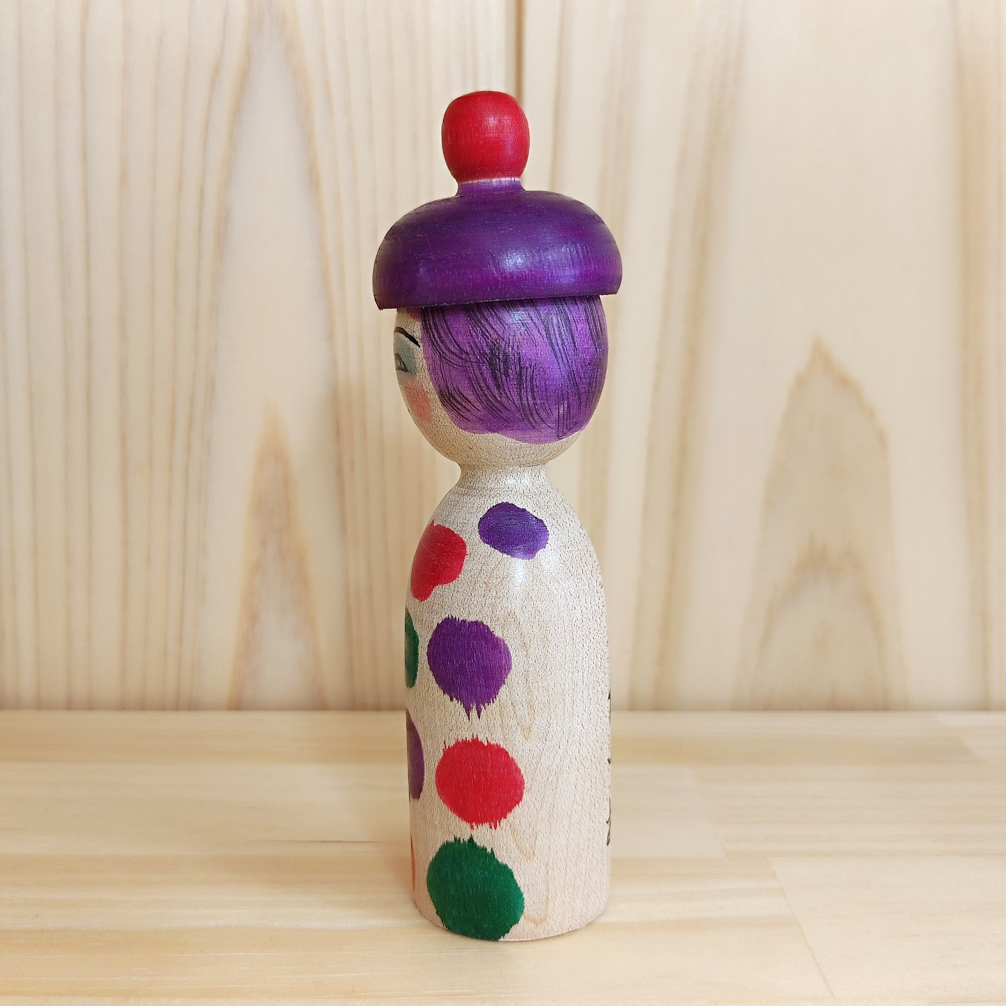 【佐藤達雄工人:木地山系】こけし 紫帽子 カラフルドット:11.5cm N3TS-90