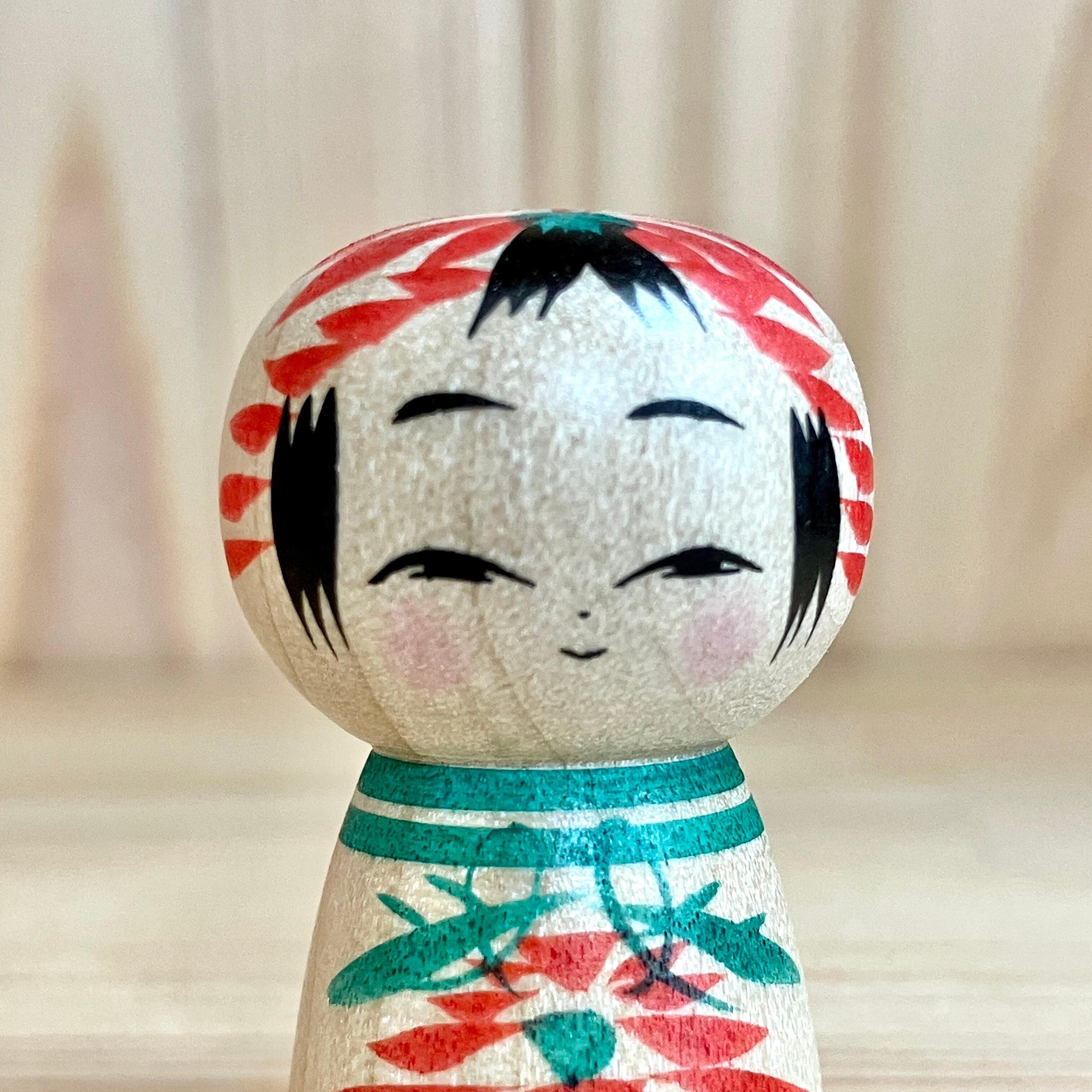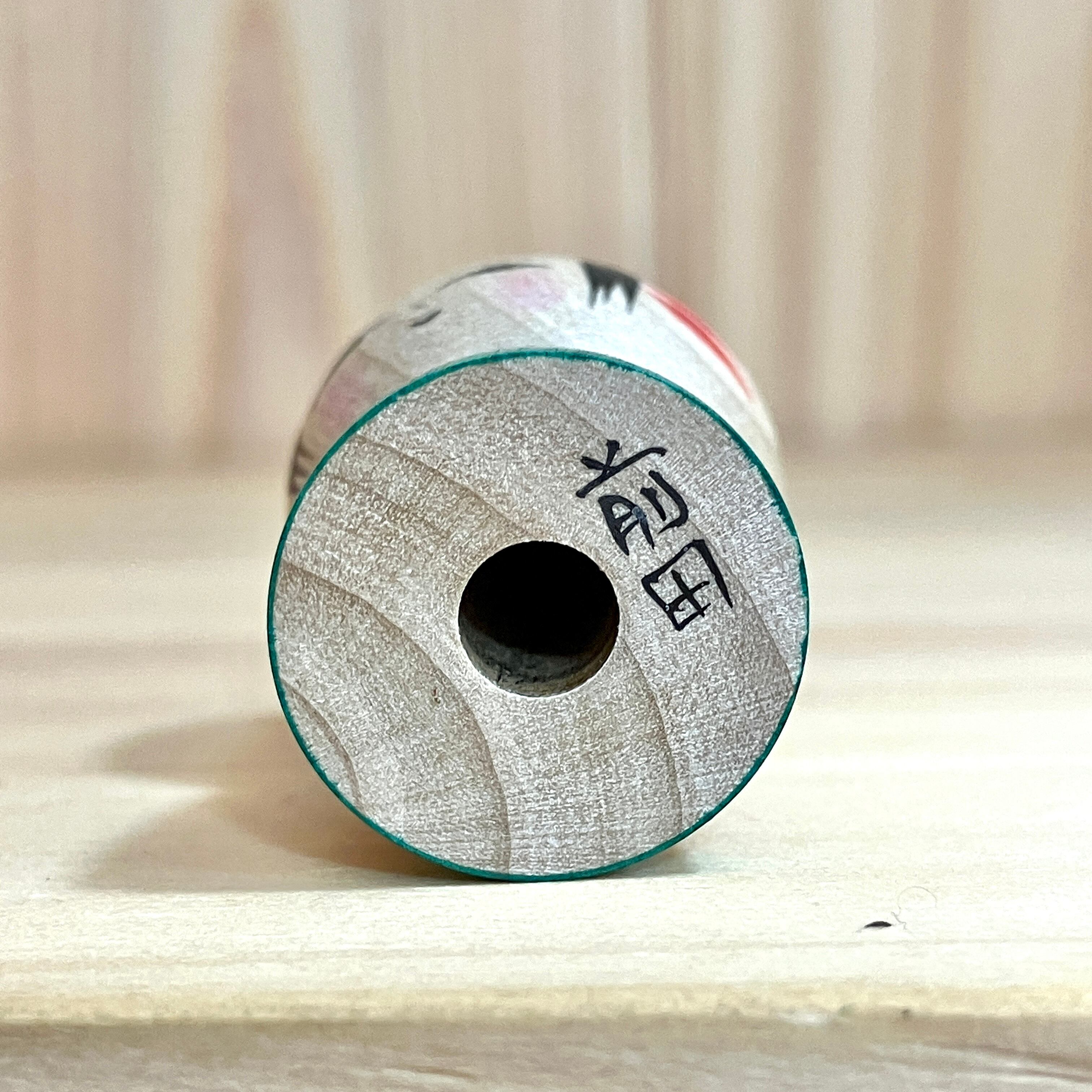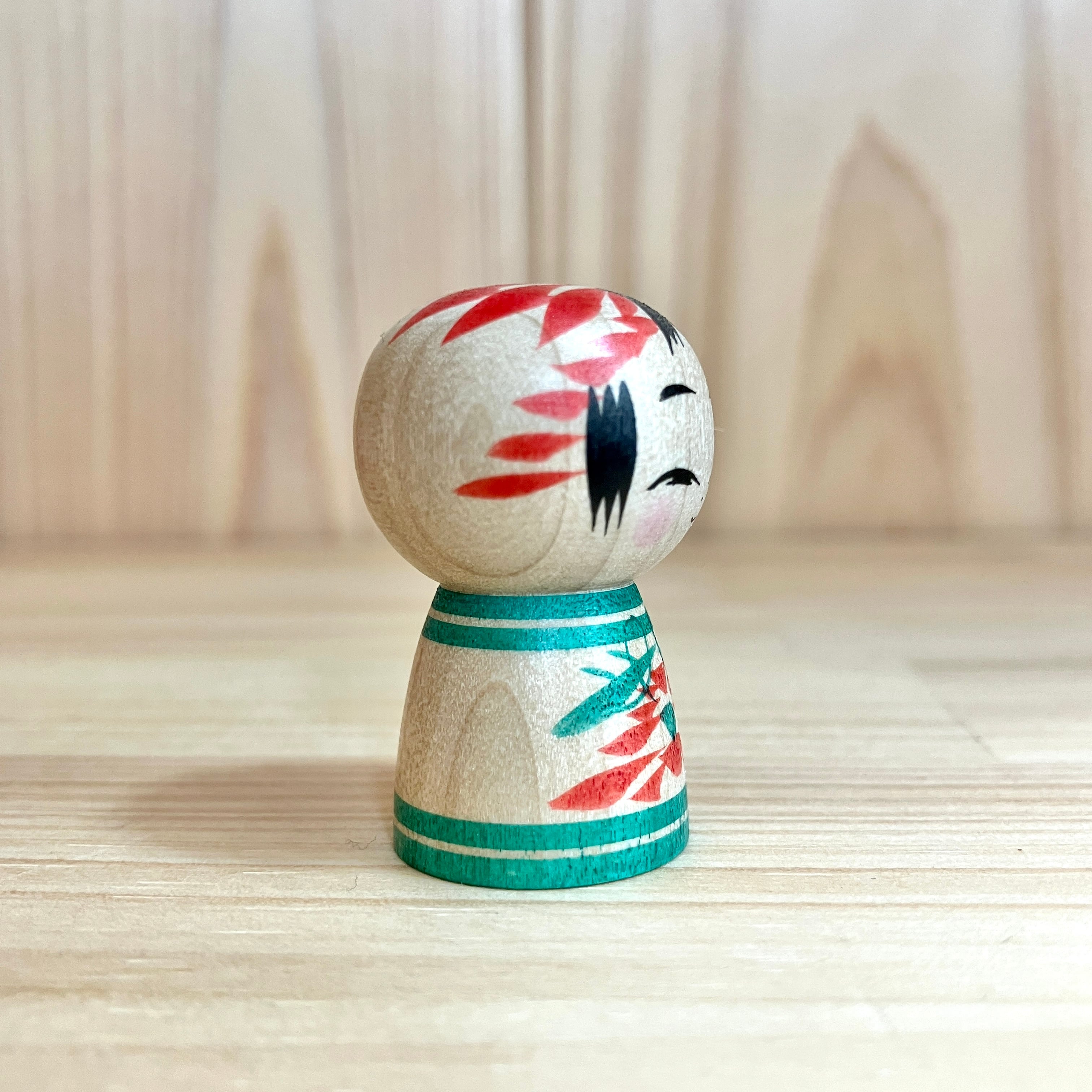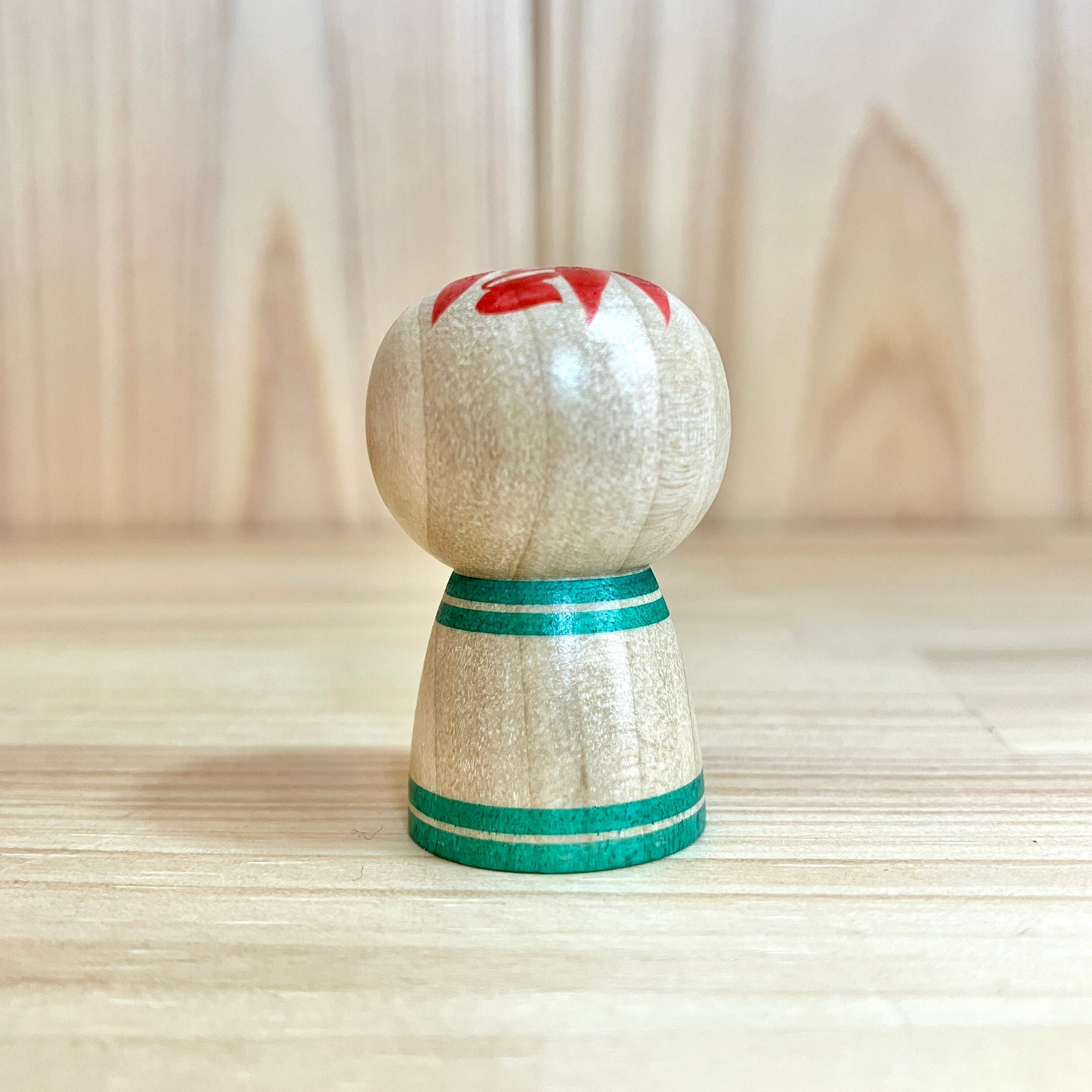【前田良二工人:遠刈田系】1.3寸 こけし 緑赤 4cm N9RM-87
