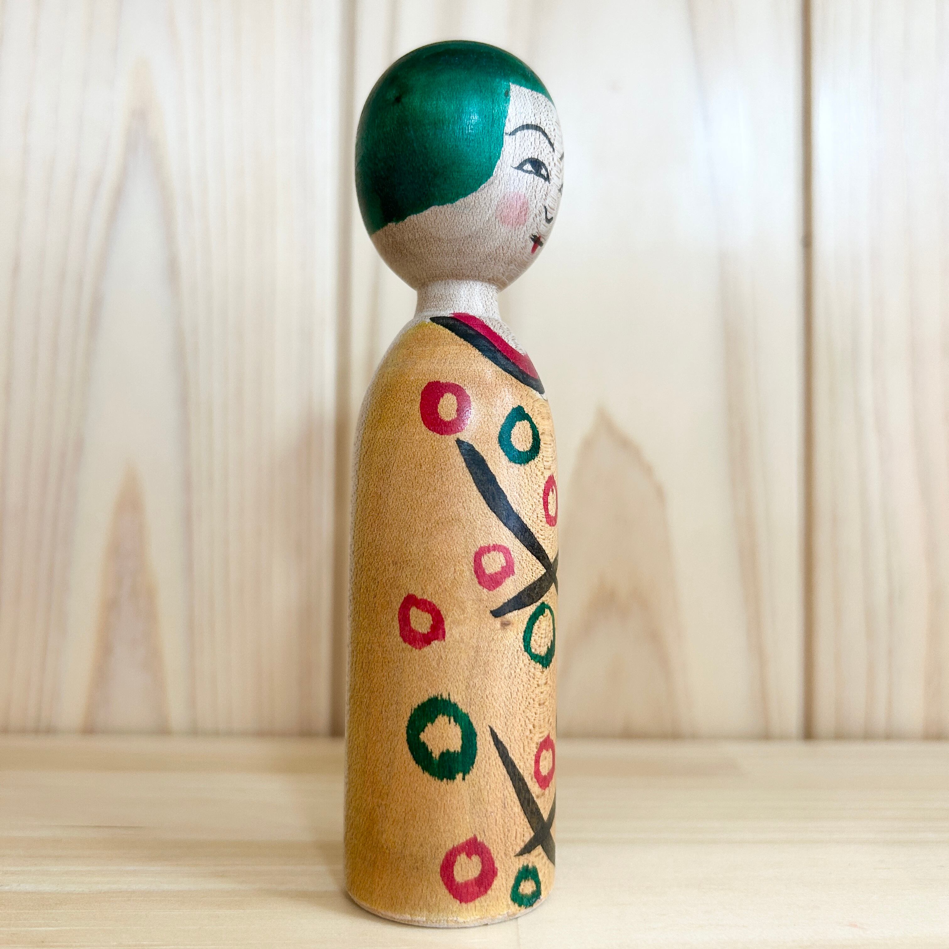 Since all kokeshi dolls are handmade by craftsmen, the grain and coloring of each kokeshi doll differs from one another.
