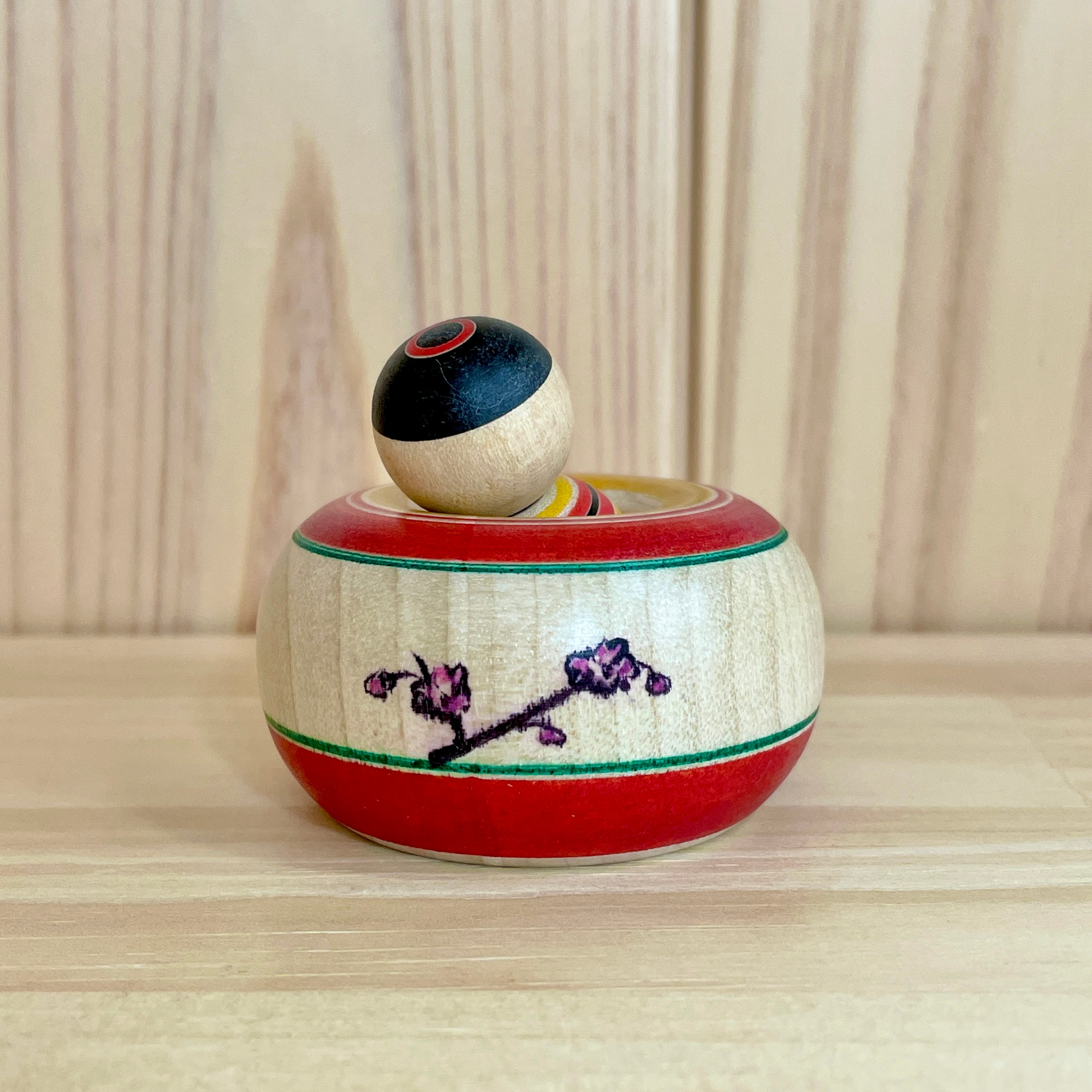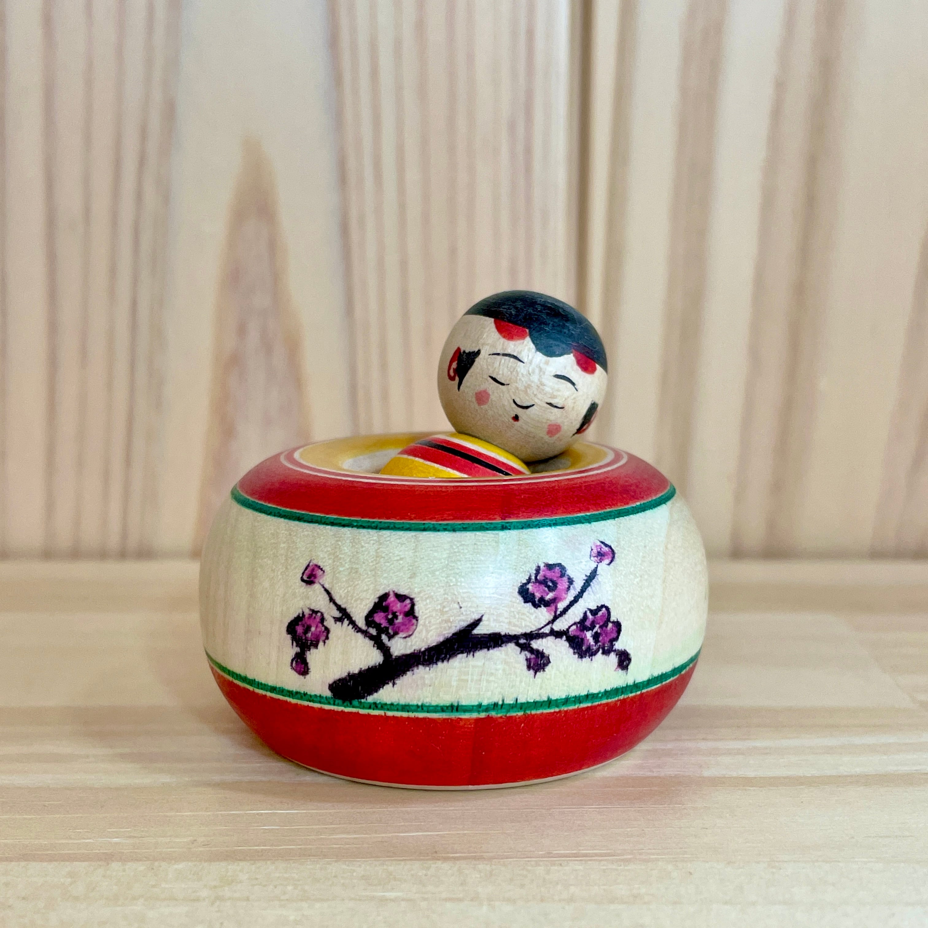 Since all kokeshi dolls are handmade by craftsmen, the grain and coloring of each kokeshi doll differs from one another.