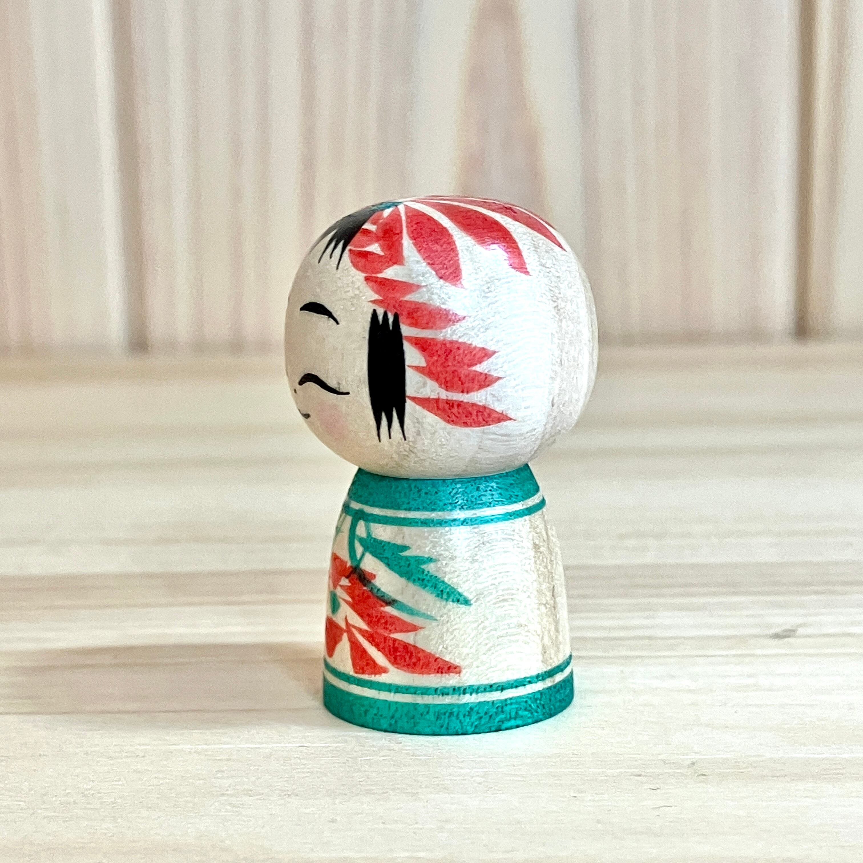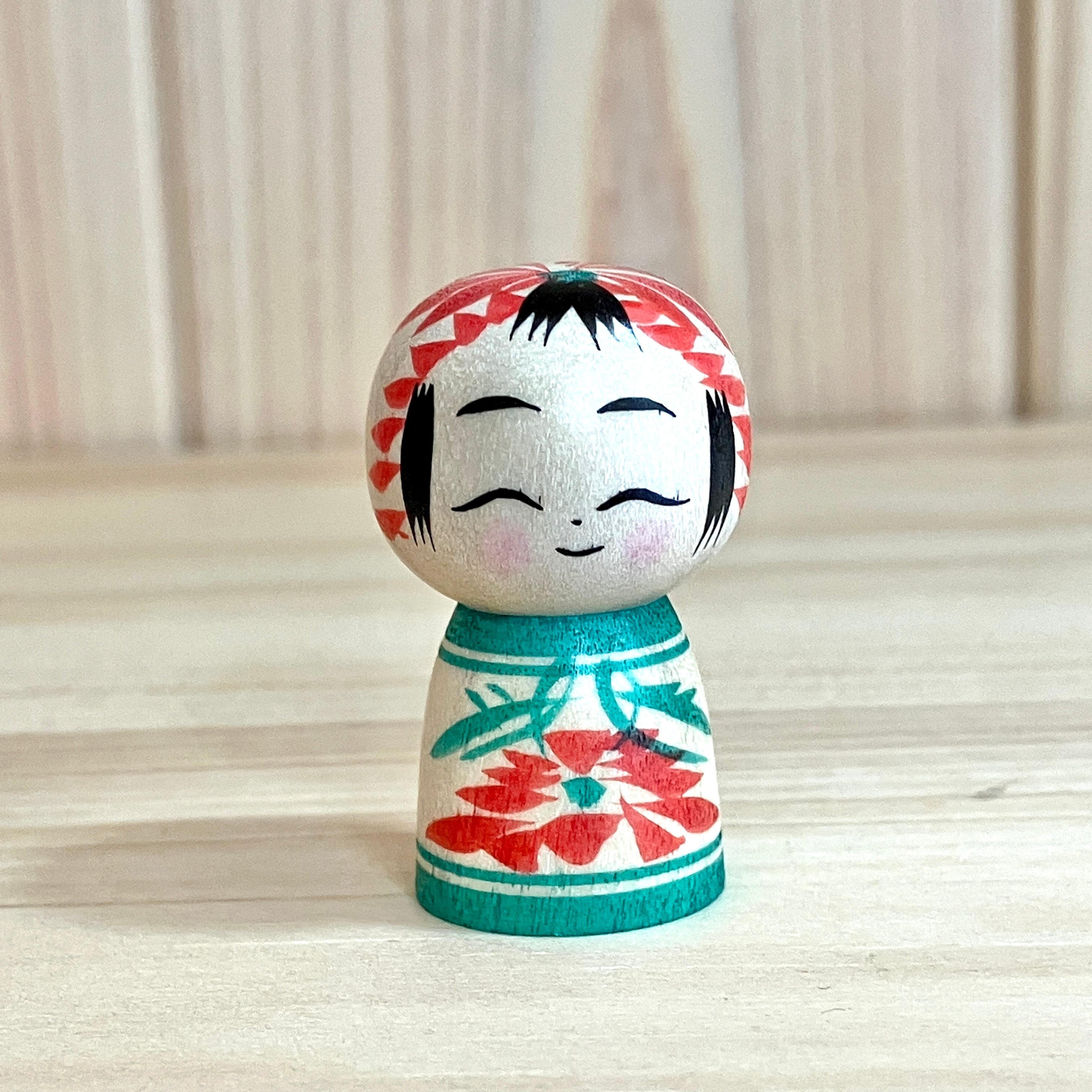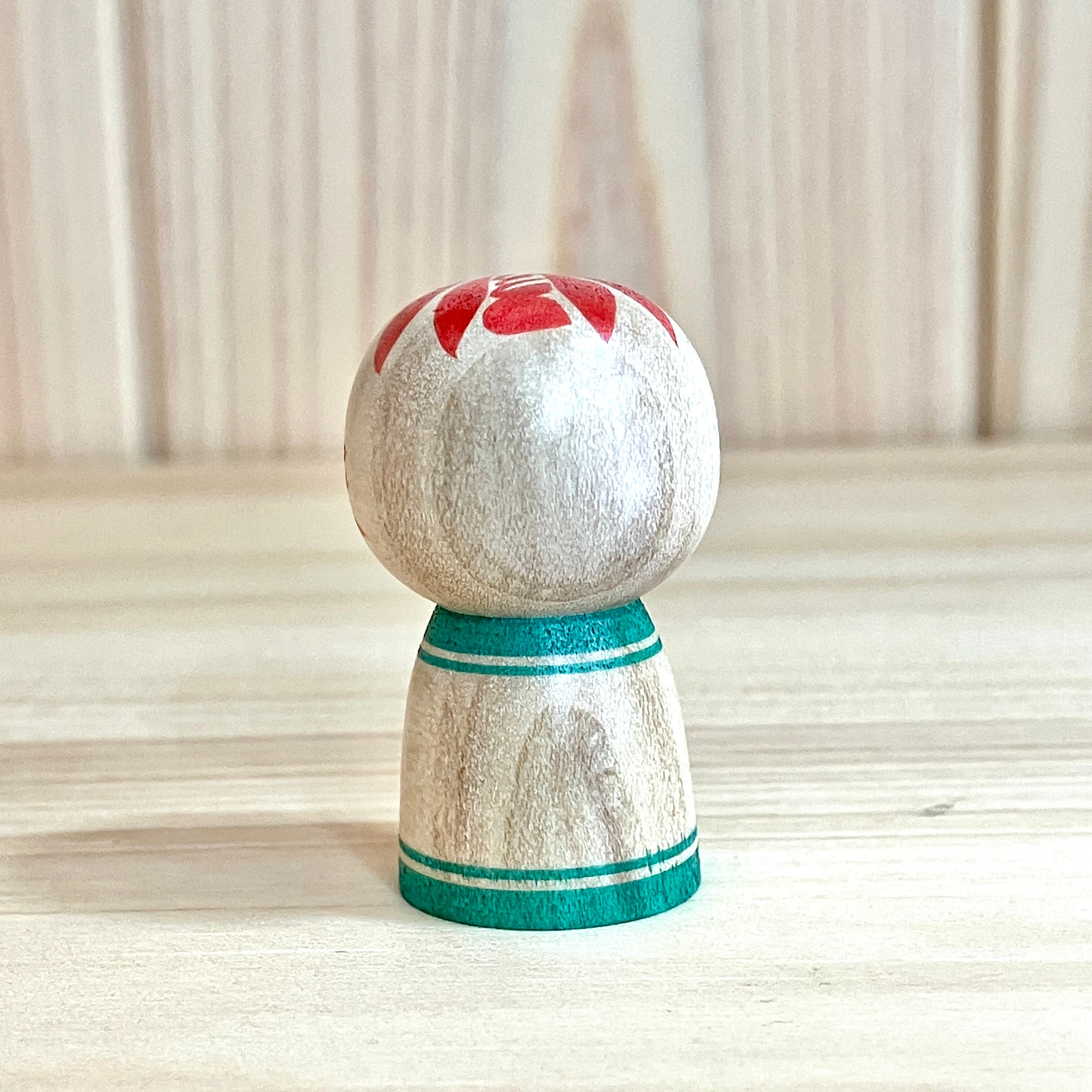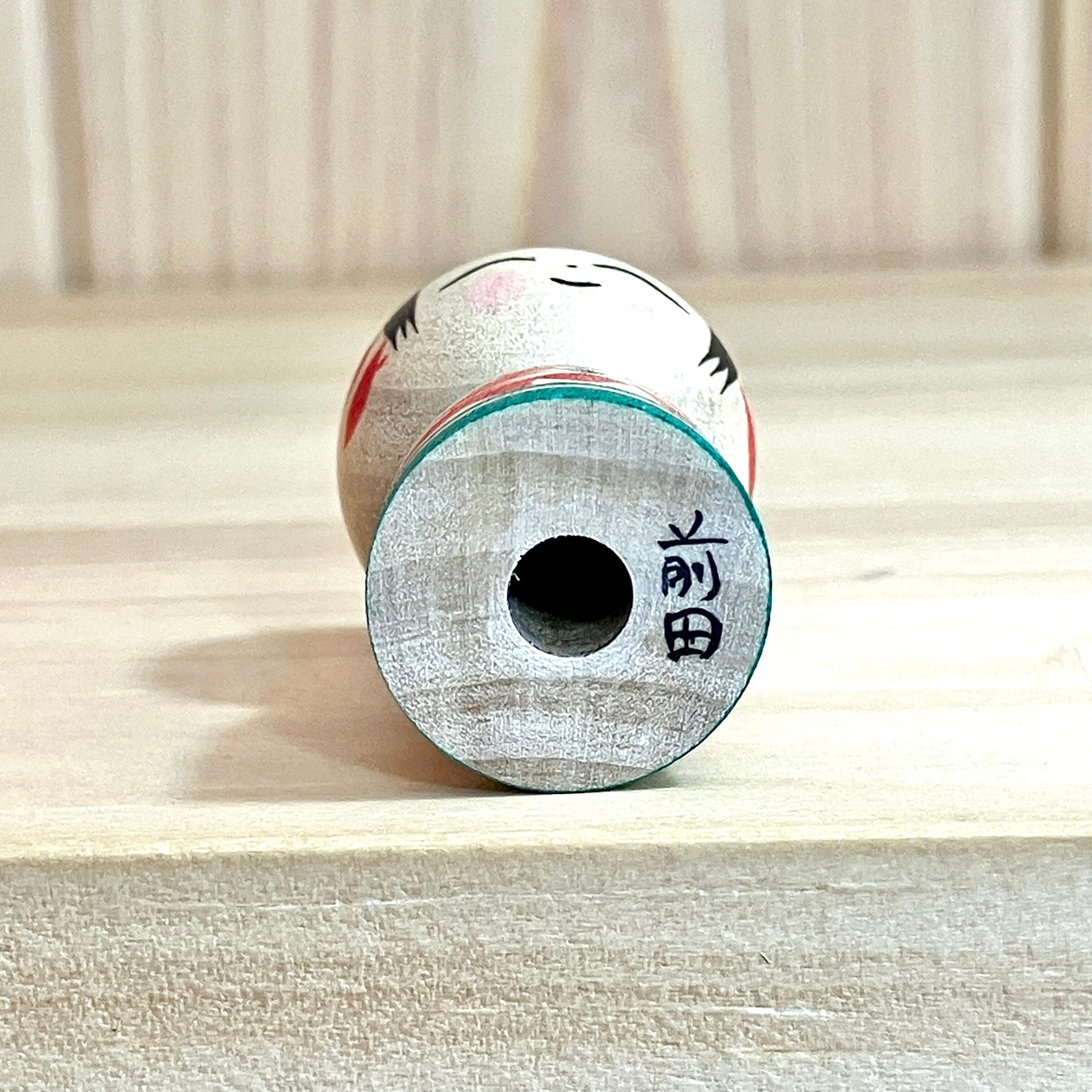 【前田良二工人:遠刈田系】1寸 こけし 緑赤 3.5cm N9RM-85