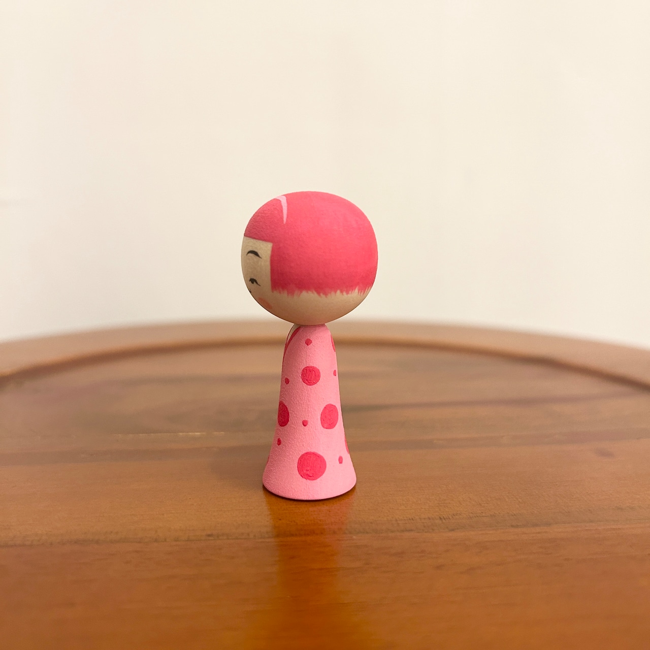 【鈴木明工人:作並系】こけし キャンディさん ピンクドット:5.5cm N6AS-207