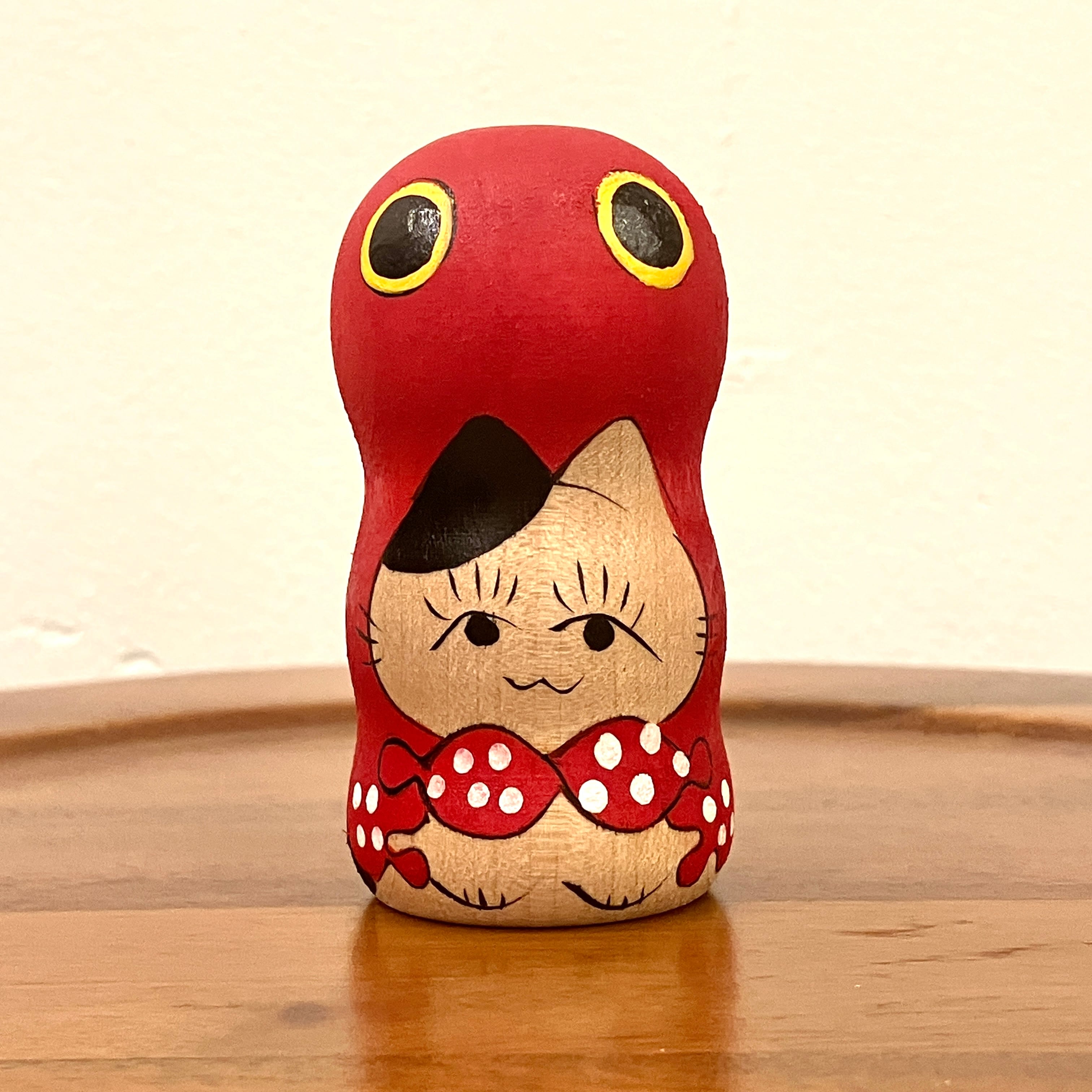【志田楓工人:山形系】2.3寸 こけし 猫に蛸:約6cm N7KaS-31