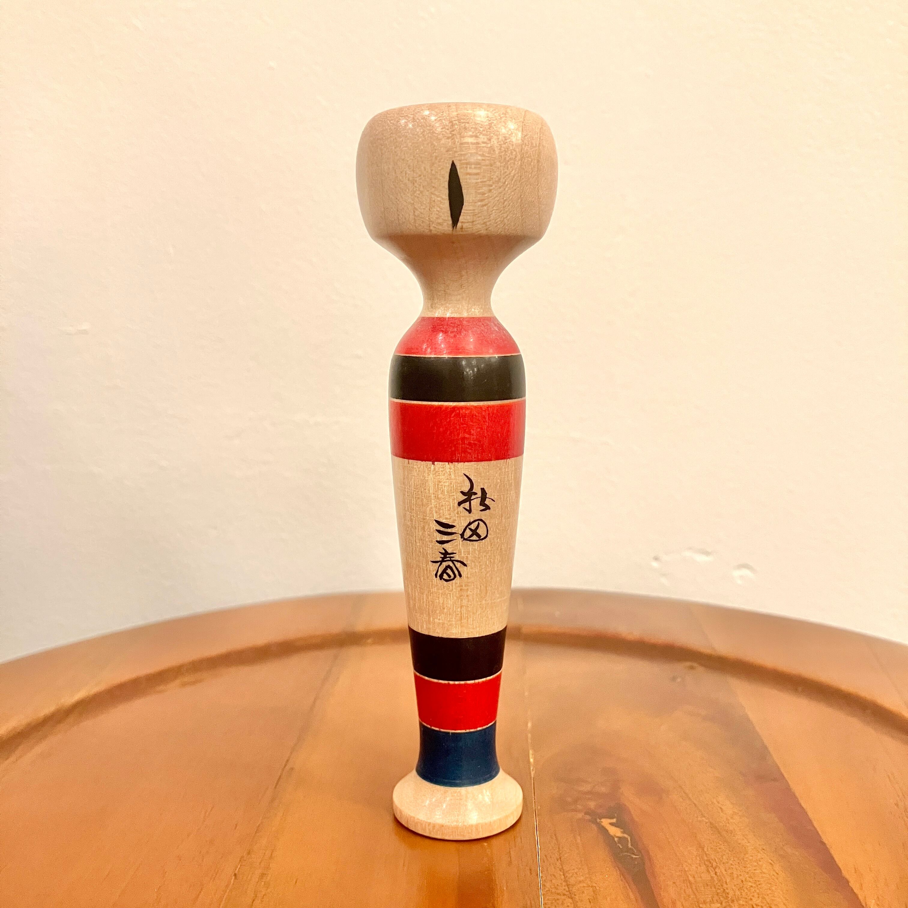 【三春文雄工人:木地山系】 こけし 治一 赤黒:4寸 12cm N3FM-69
