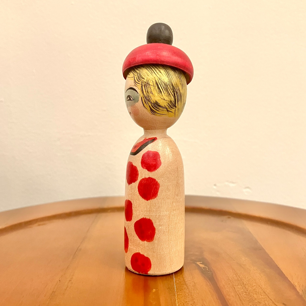 【佐藤達雄工人:木地山系】こけし 赤帽子 カラフルドット:11.5cm N3TS-110
