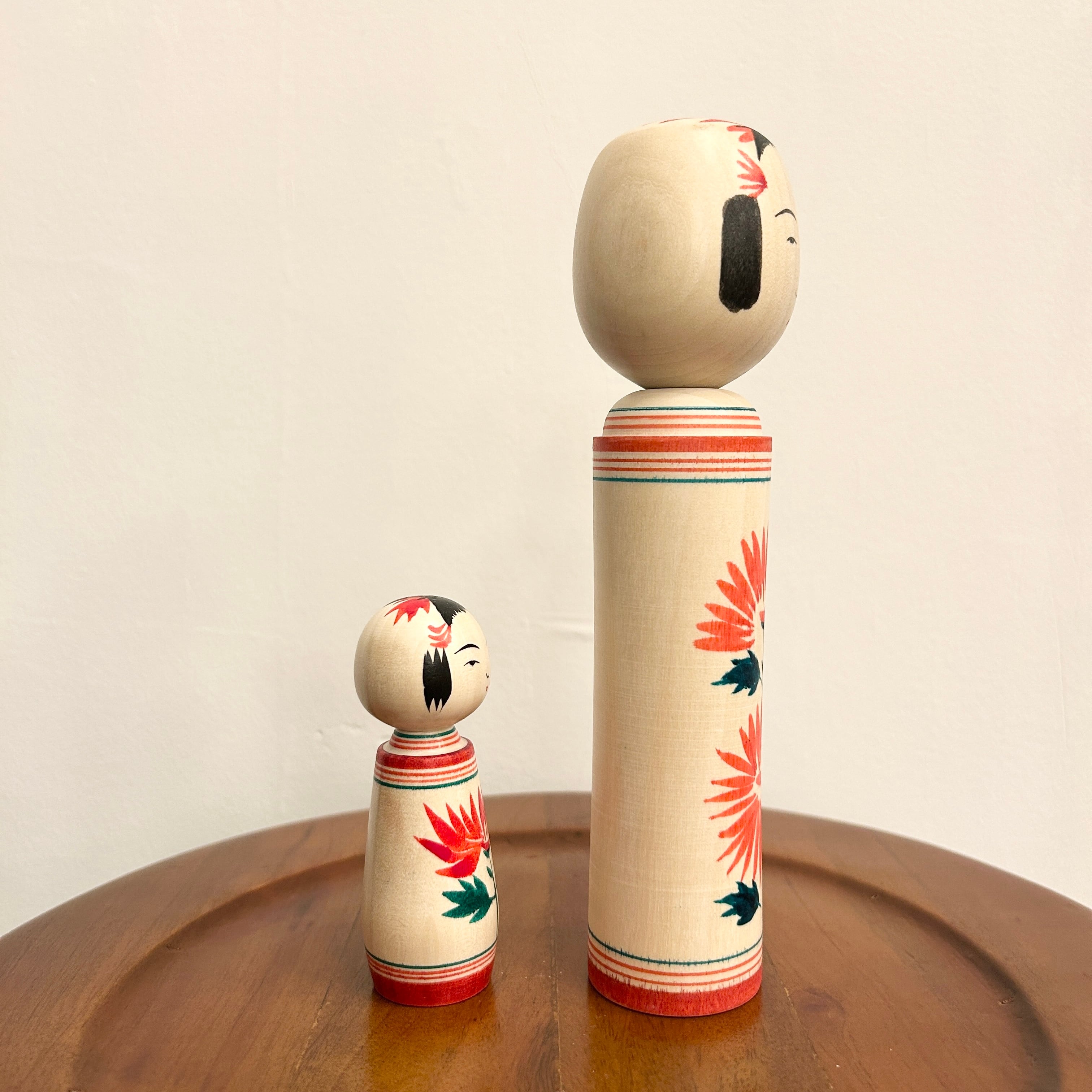 菅原修工人と斎藤祥子工人佐々木久作型こけしのセット。