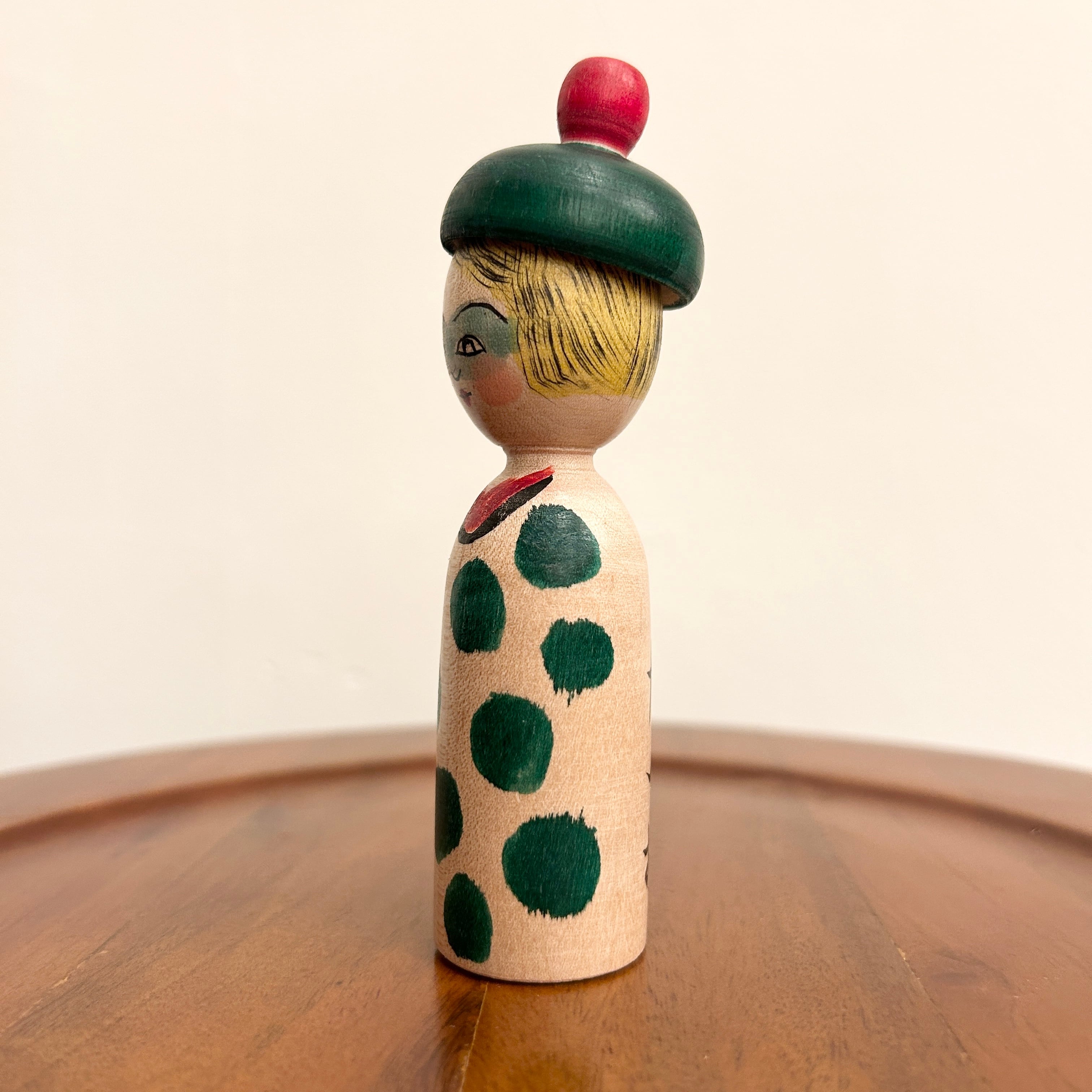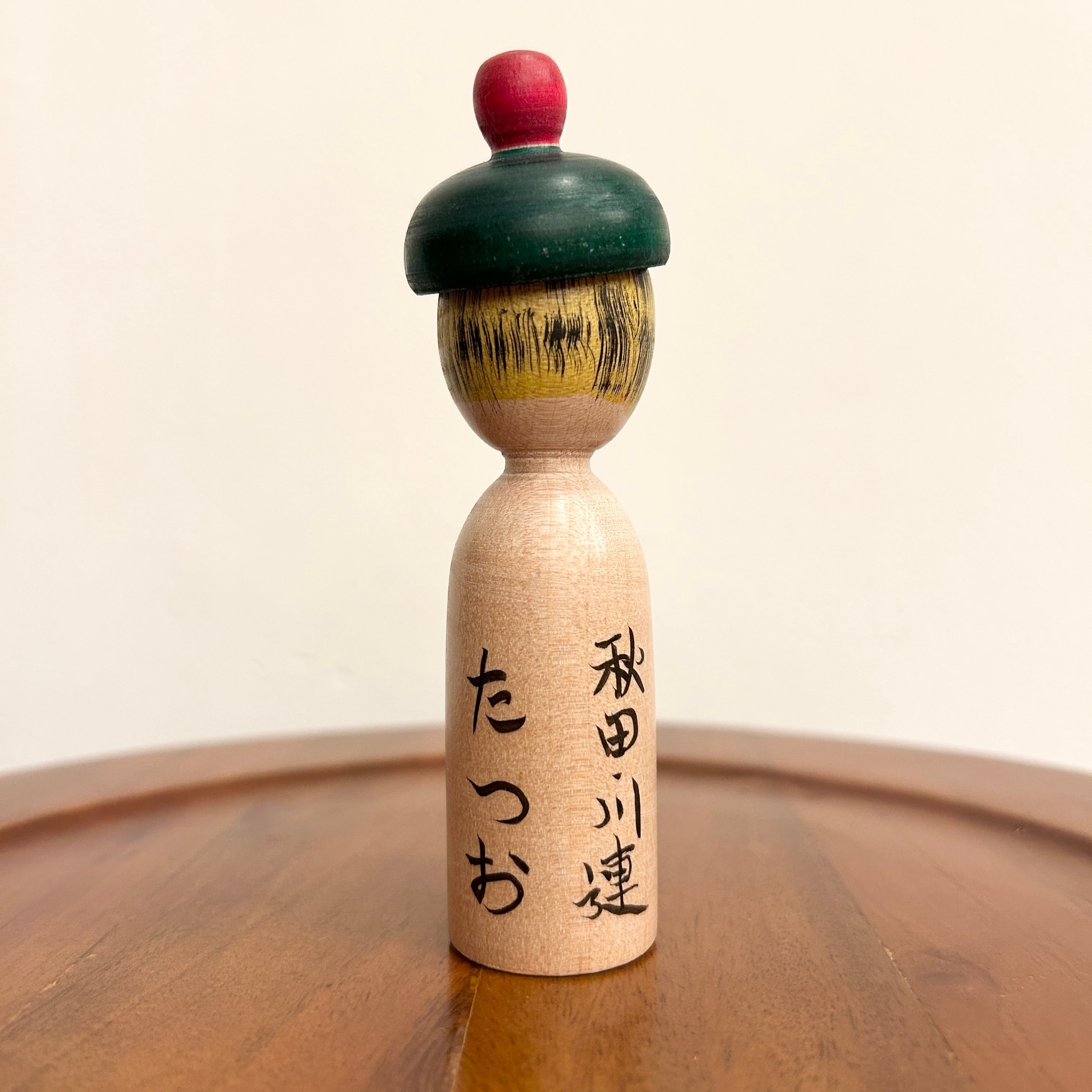 【佐藤達雄工人:木地山系】こけし 緑帽子 緑ドット:11.5cm N3TS-109