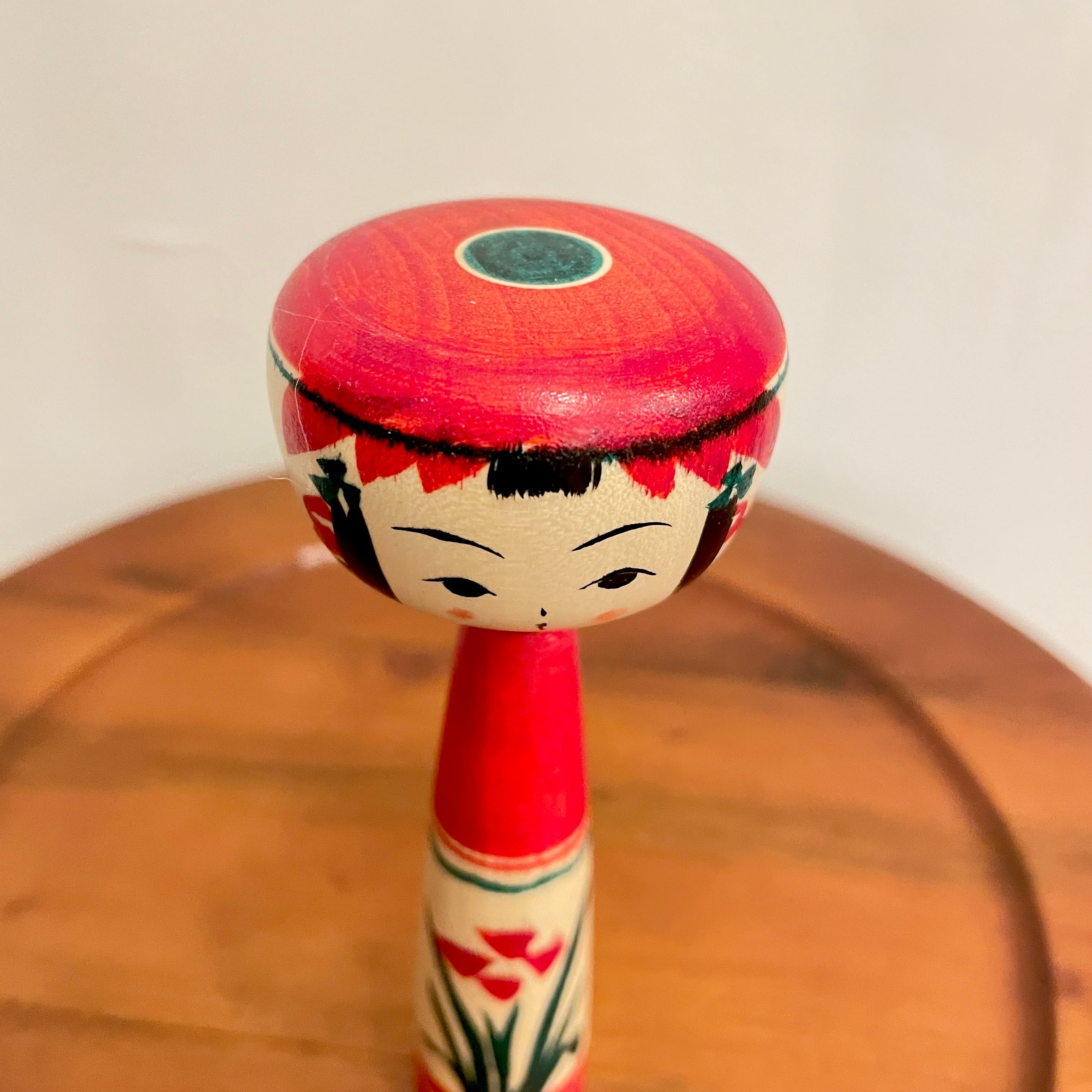 【新山真由美工人:弥治郎系】こけし 顔平 赤 花:7寸 21㎝ N10MaN-241