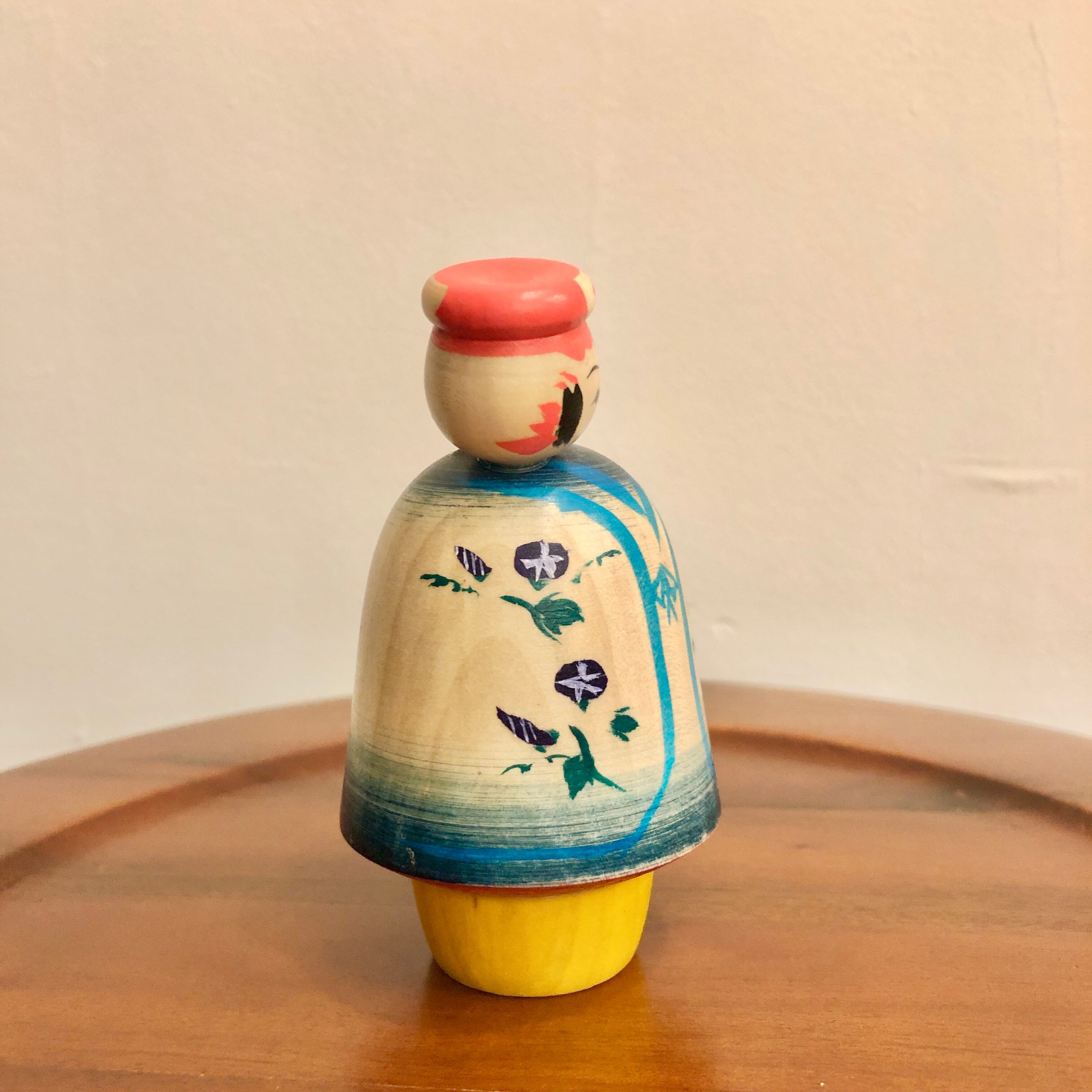 【新山真由美工人:弥治郎系】子守こけし 緑・青・ピンク・朝顔:3.3寸 約10.5cm N10MaN-227