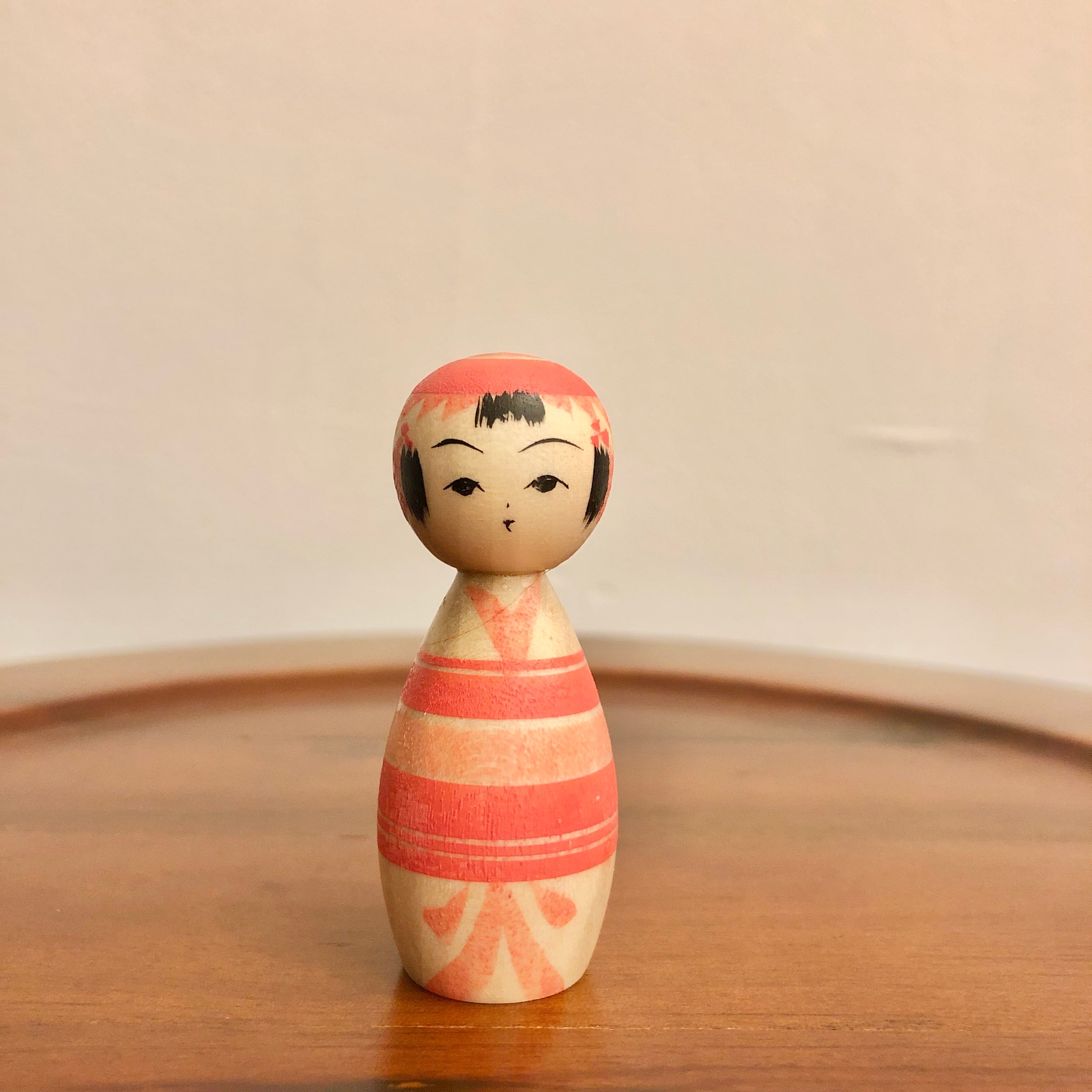 【新山真由美工人:弥治郎系】2寸 こけし 小寸 ピンク : 約6cm N10MaN-310