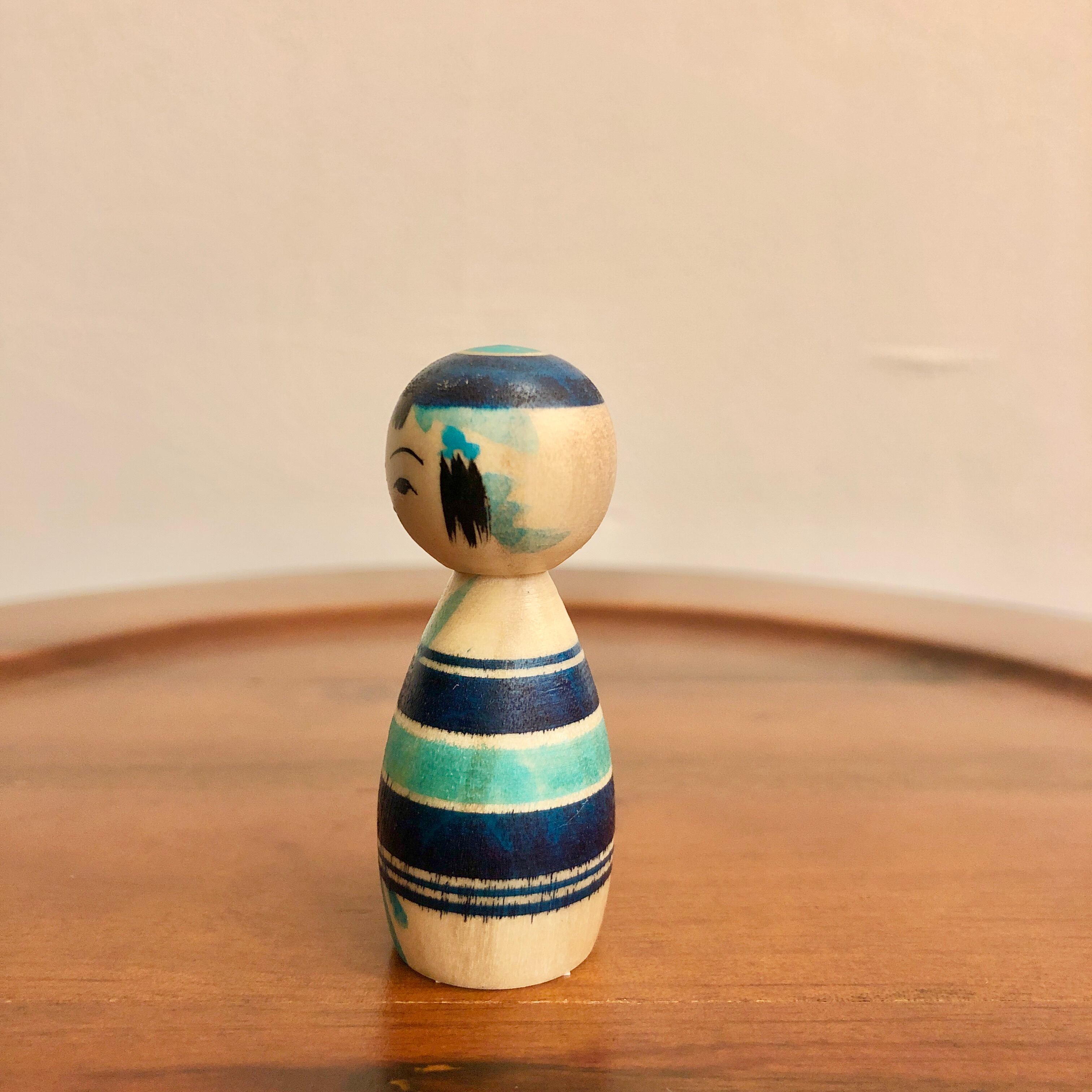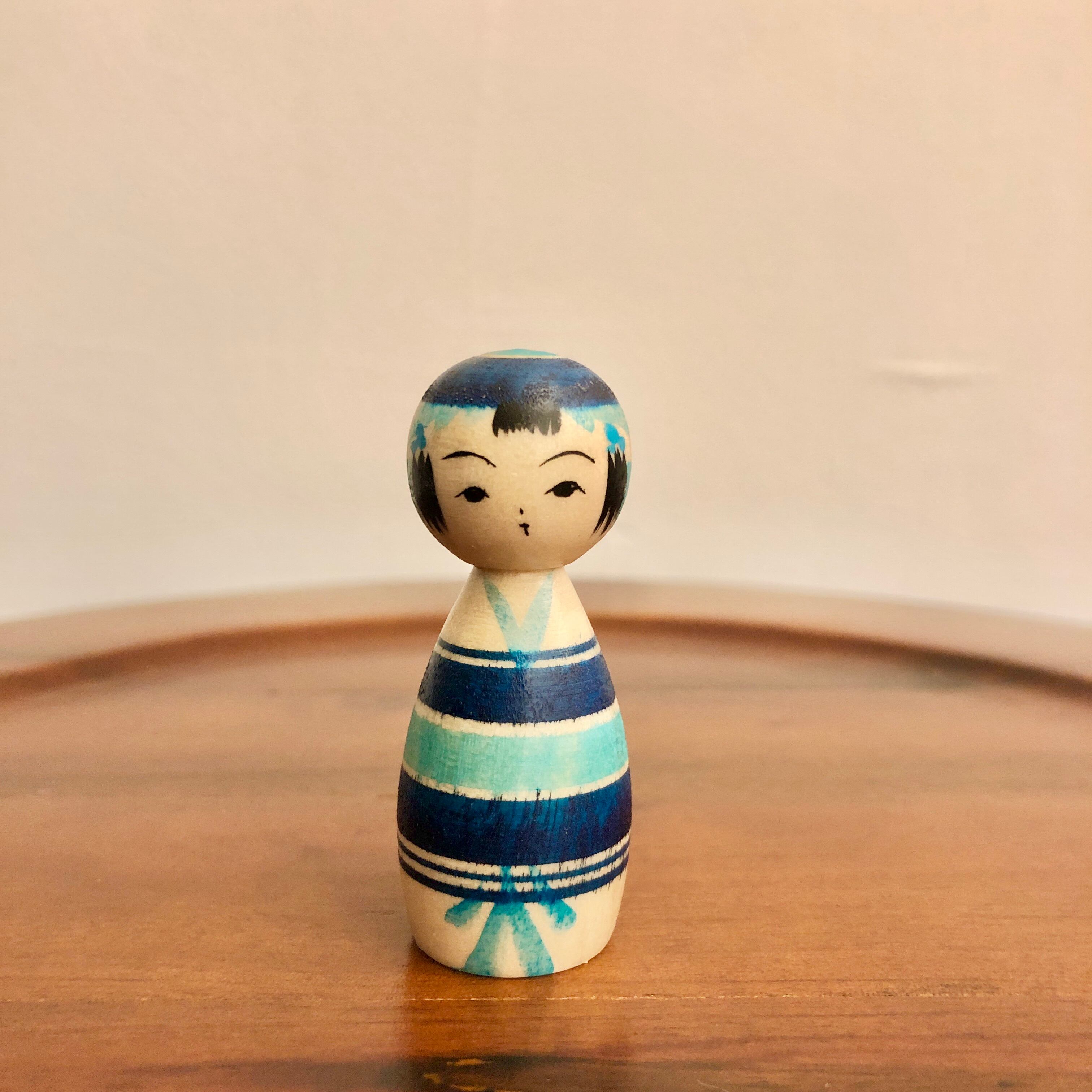 【新山真由美工人:弥治郎系】2寸 こけし 小寸 紺色 : 約6cm N10MaN-333