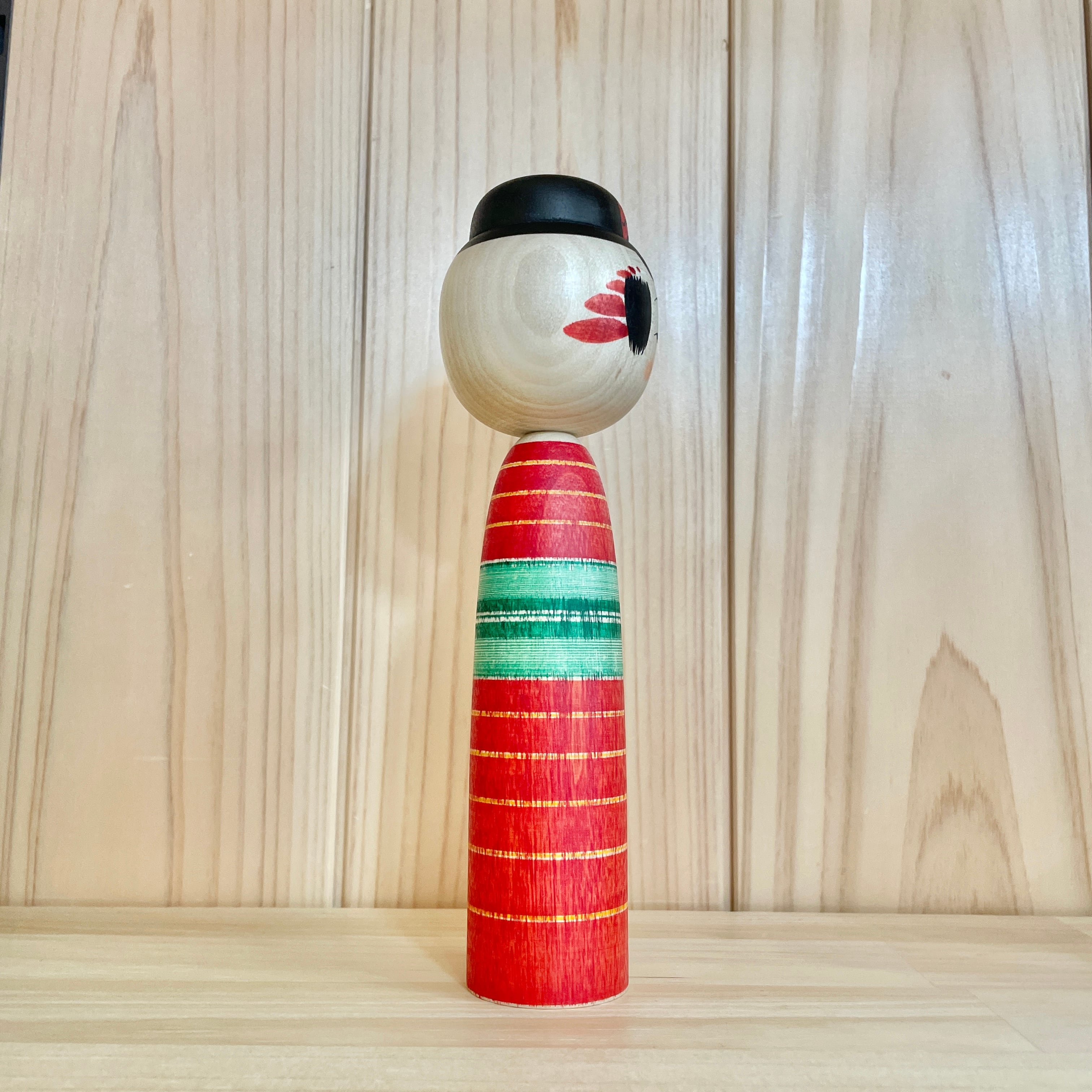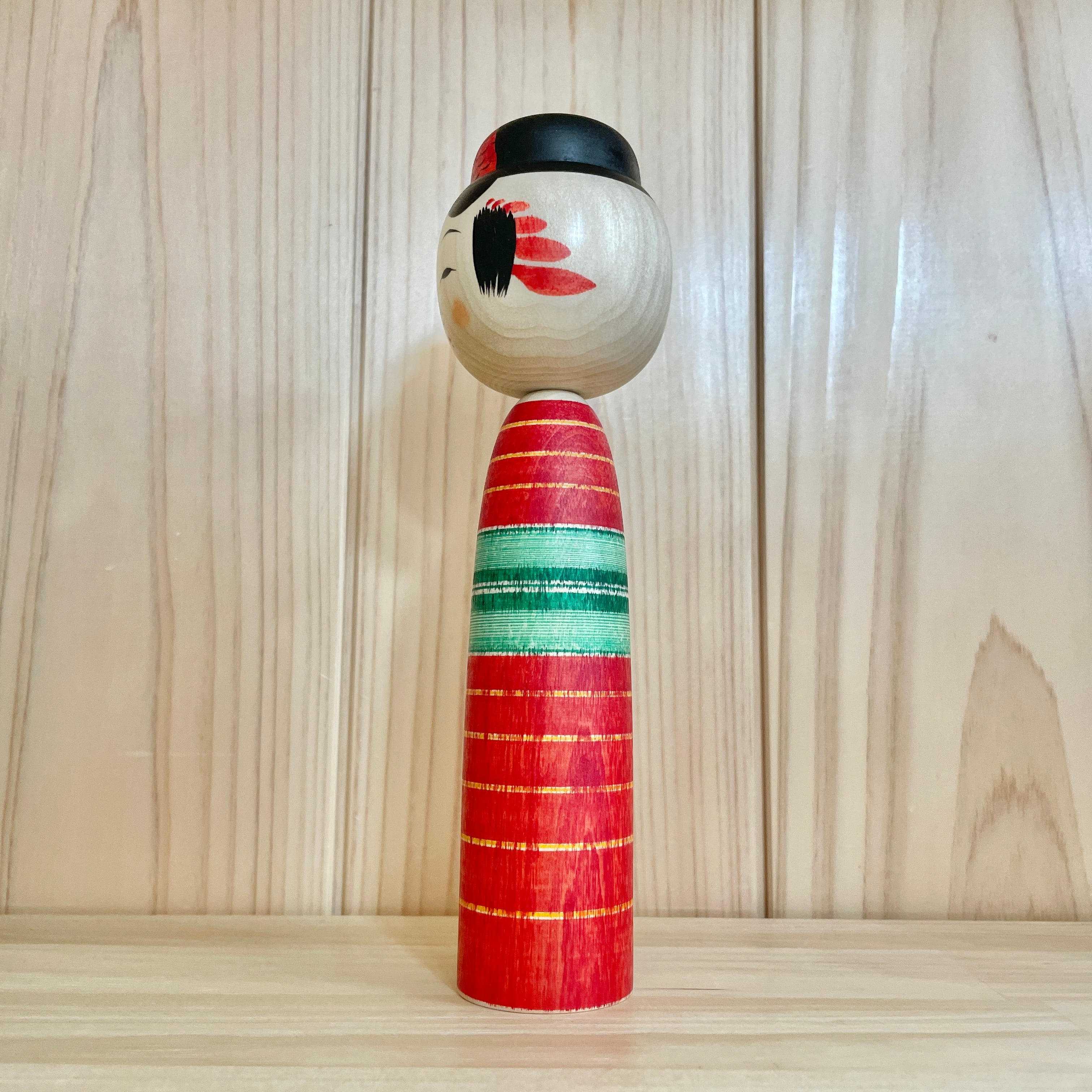 Since all kokeshi dolls are handmade by craftsmen, the grain and coloring of each kokeshi doll differ from one another.