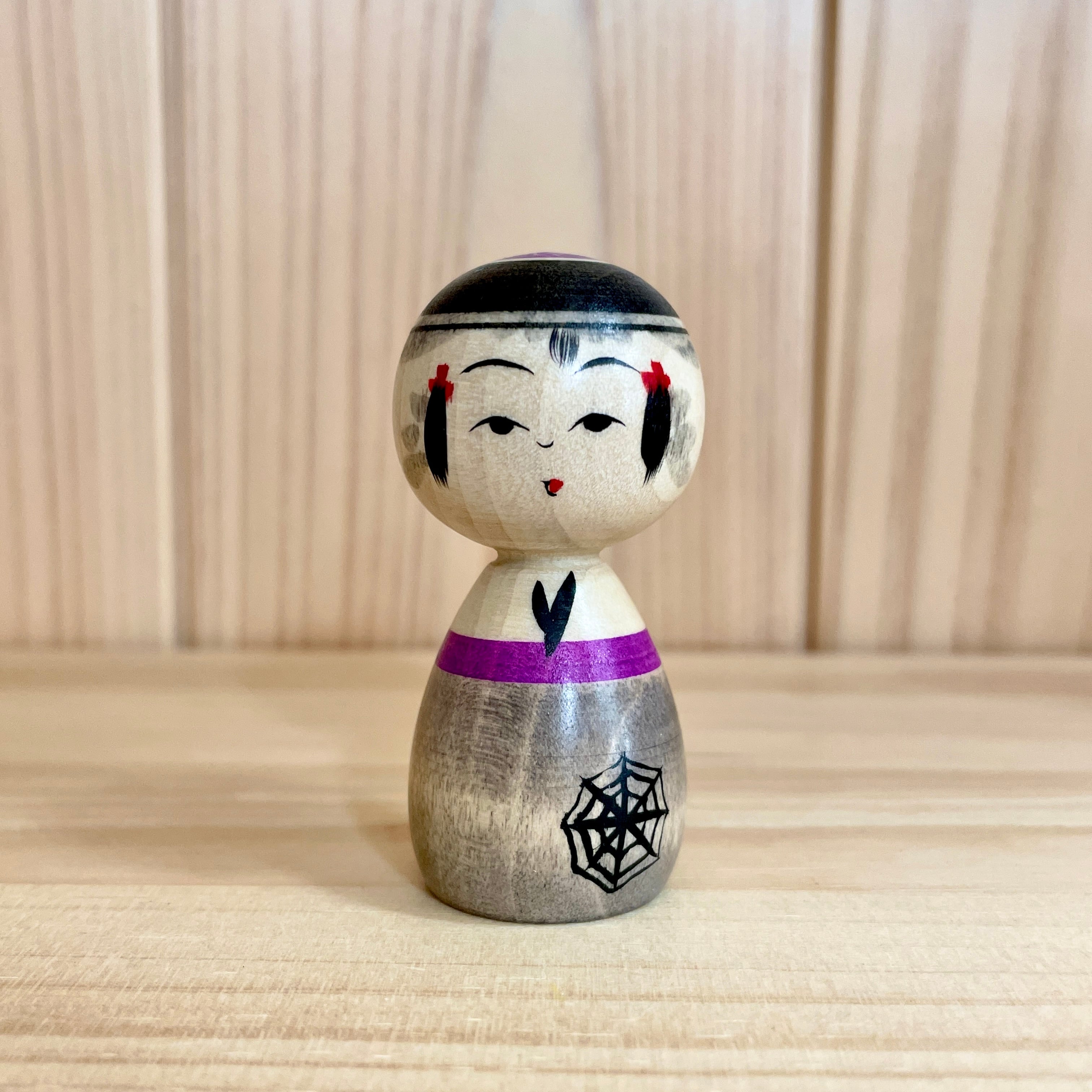 【池内潮音工人:弥治郎系】2寸 こけし ハロウィン 蜘蛛の巣:6cm N10SI-412