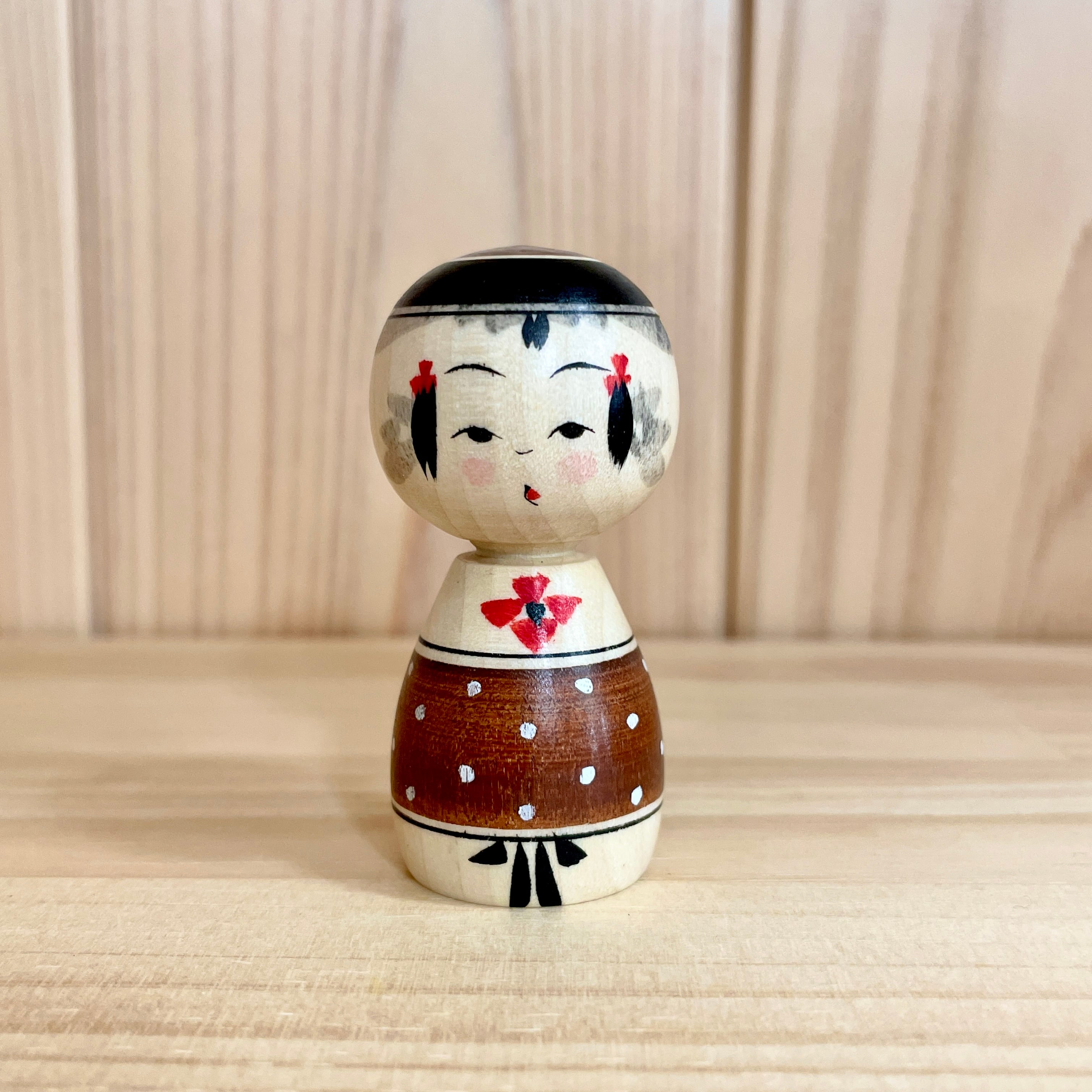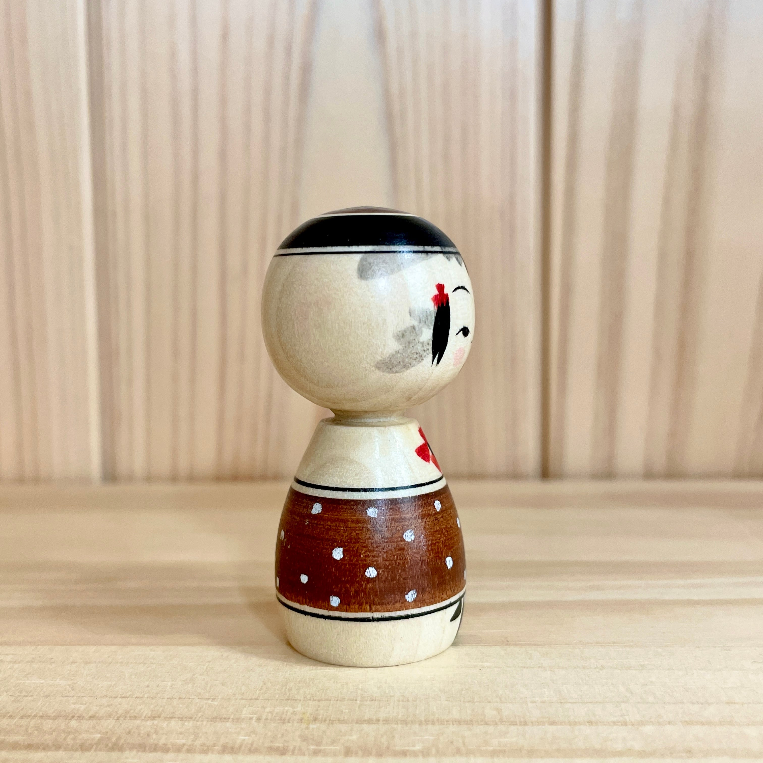 【池内潮音工人:弥治郎系】2寸 こけし 秋色ドット:6cm N10SI-399