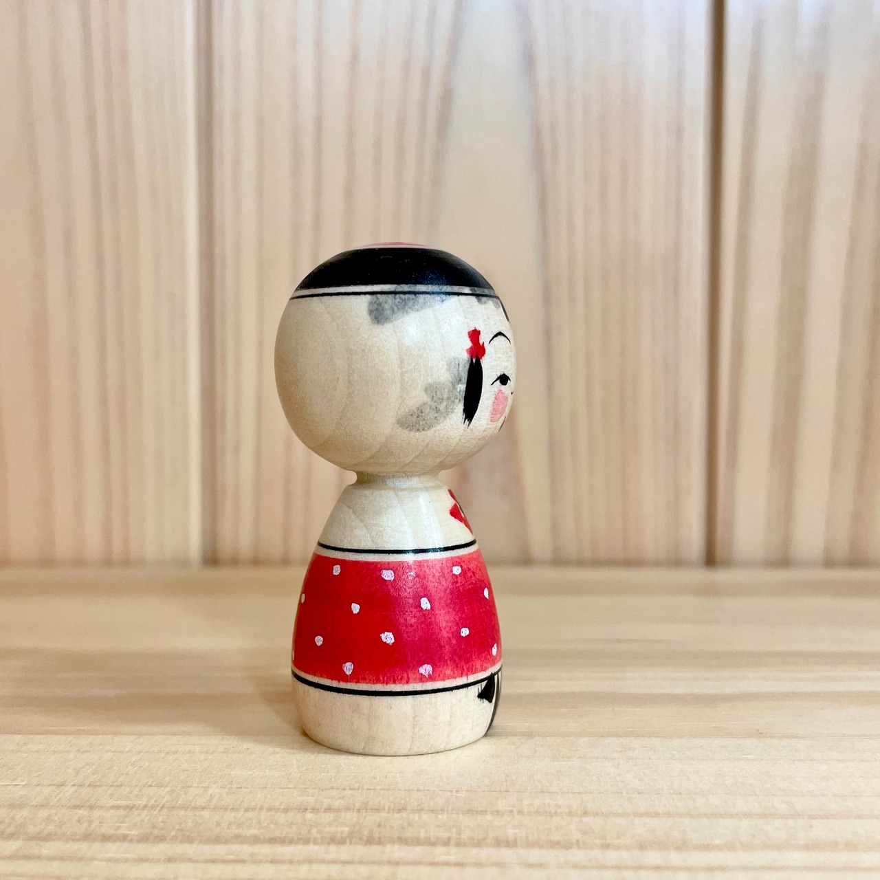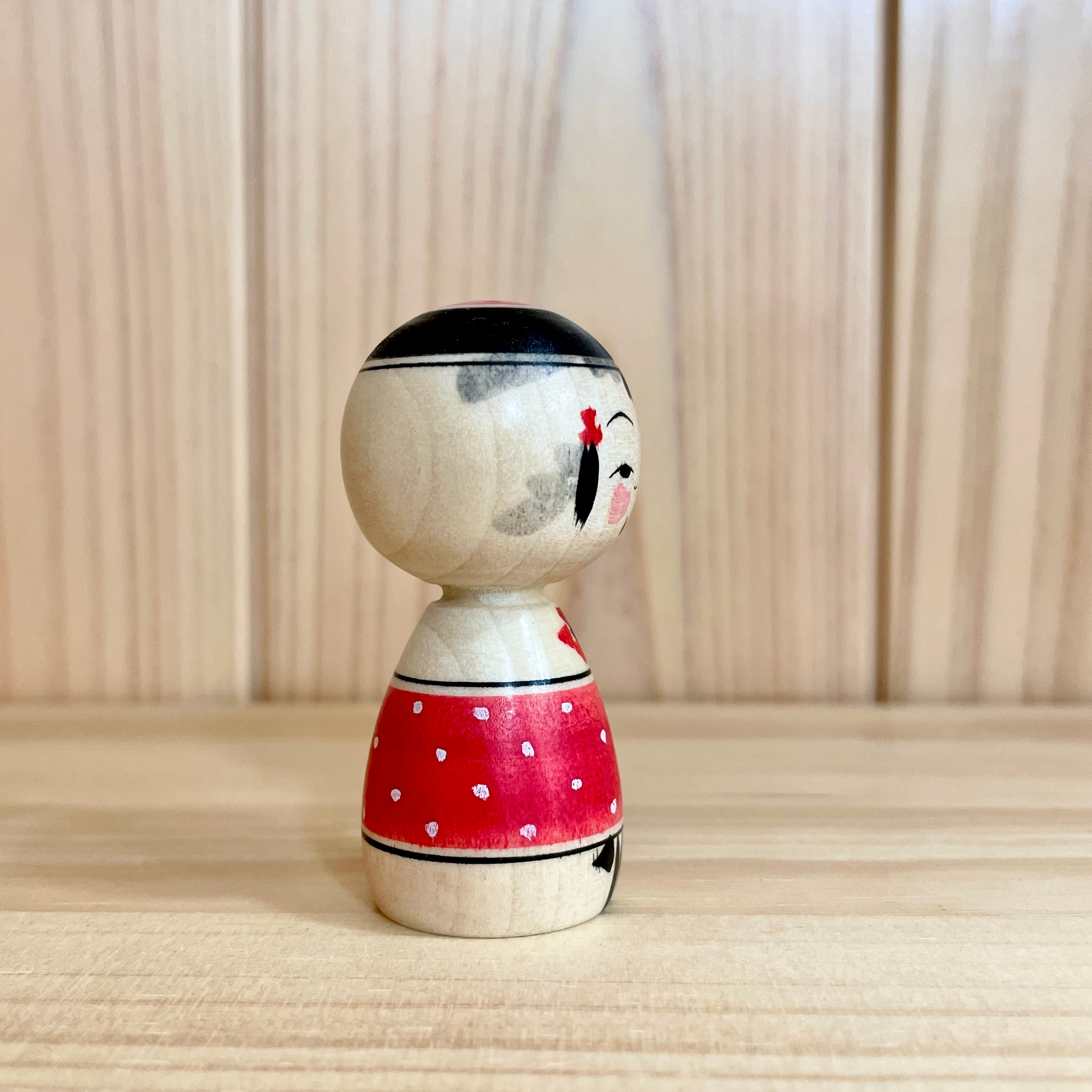 Since all kokeshi dolls are handmade by craftsmen, the grain and coloring of each kokeshi doll differs from one another.