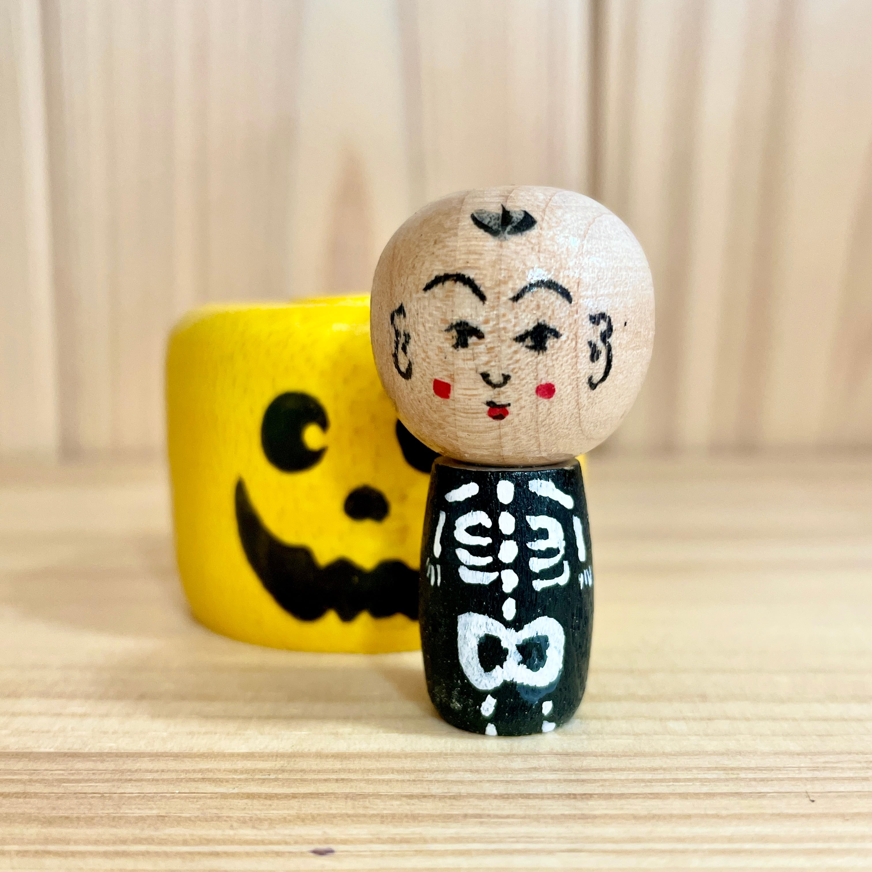 【西山敏彦工人:土湯系】こけし ハロウィンえじこ パンプキン:5.5cm N11TN-87