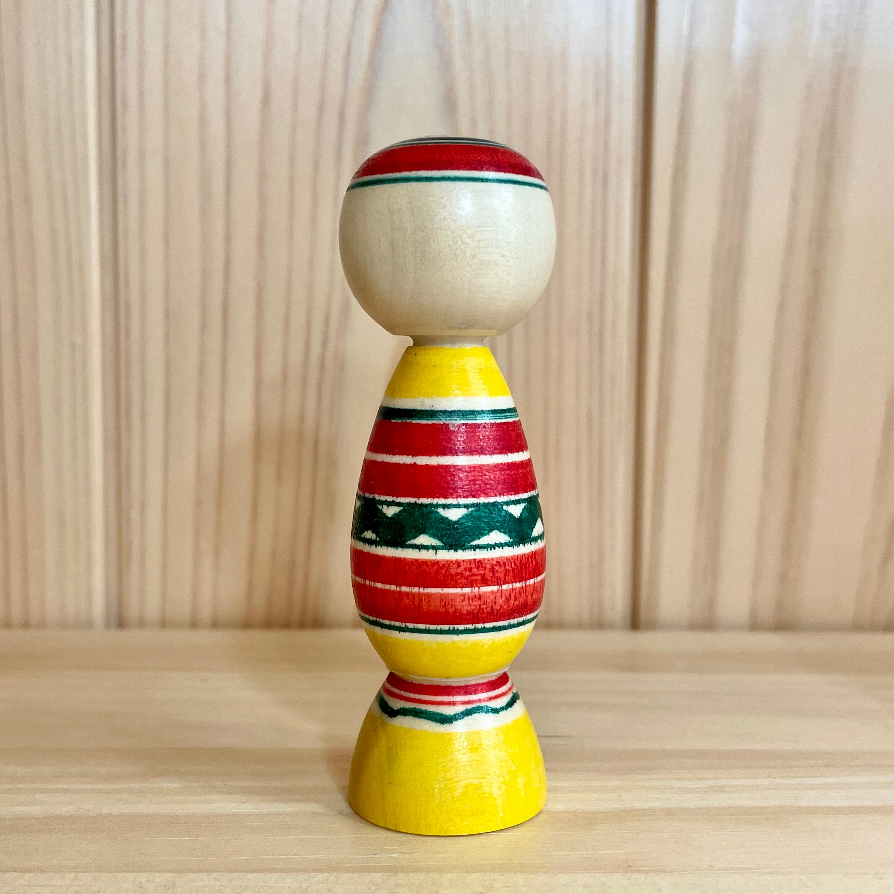 【新山真由美工人:弥治郎系】3寸 こけし 赤黄緑 ろくろ線 : 9㎝ N10MaN-383