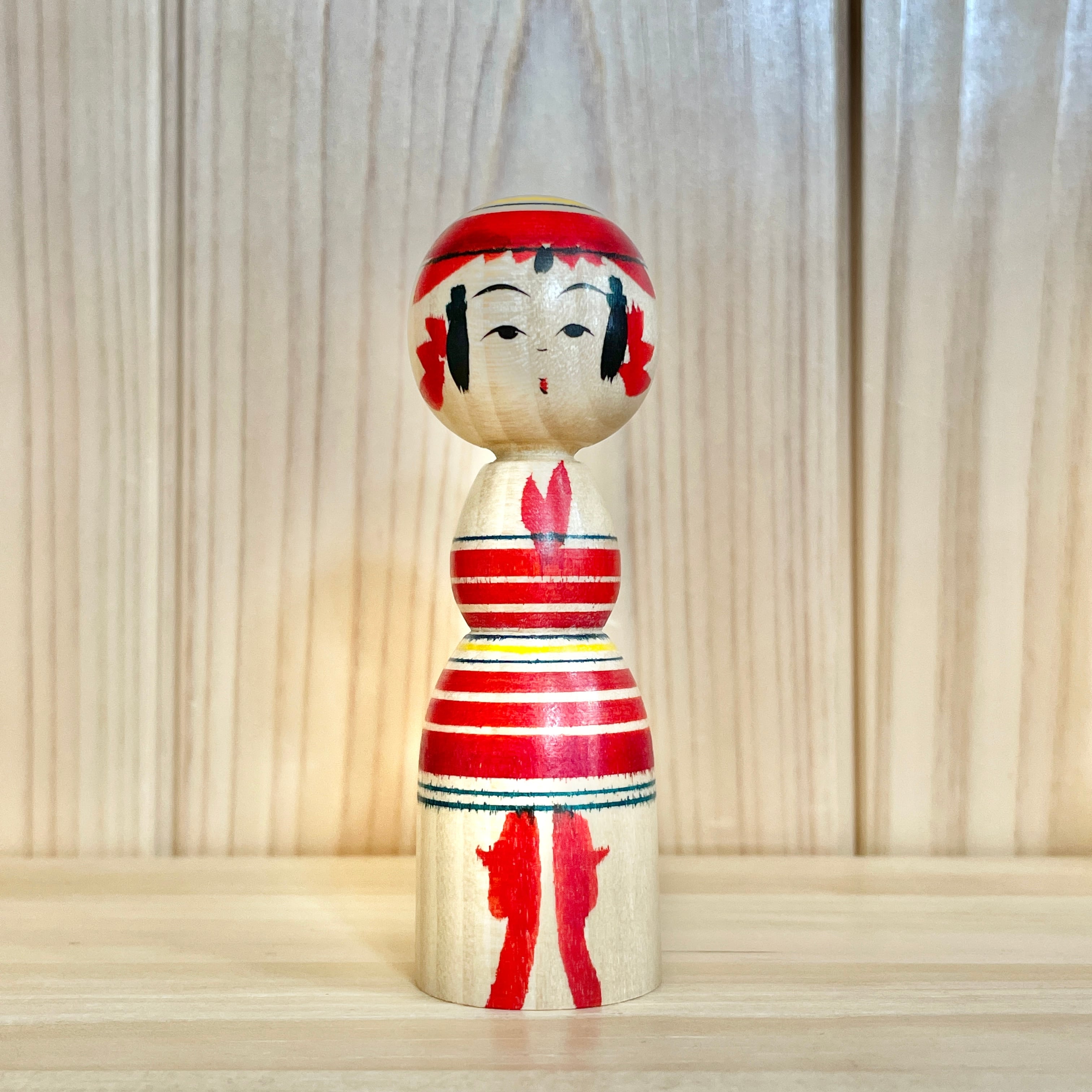 【池内潮音工人:弥治郎系】3寸 こけし 赤:約9cm N10SI-528