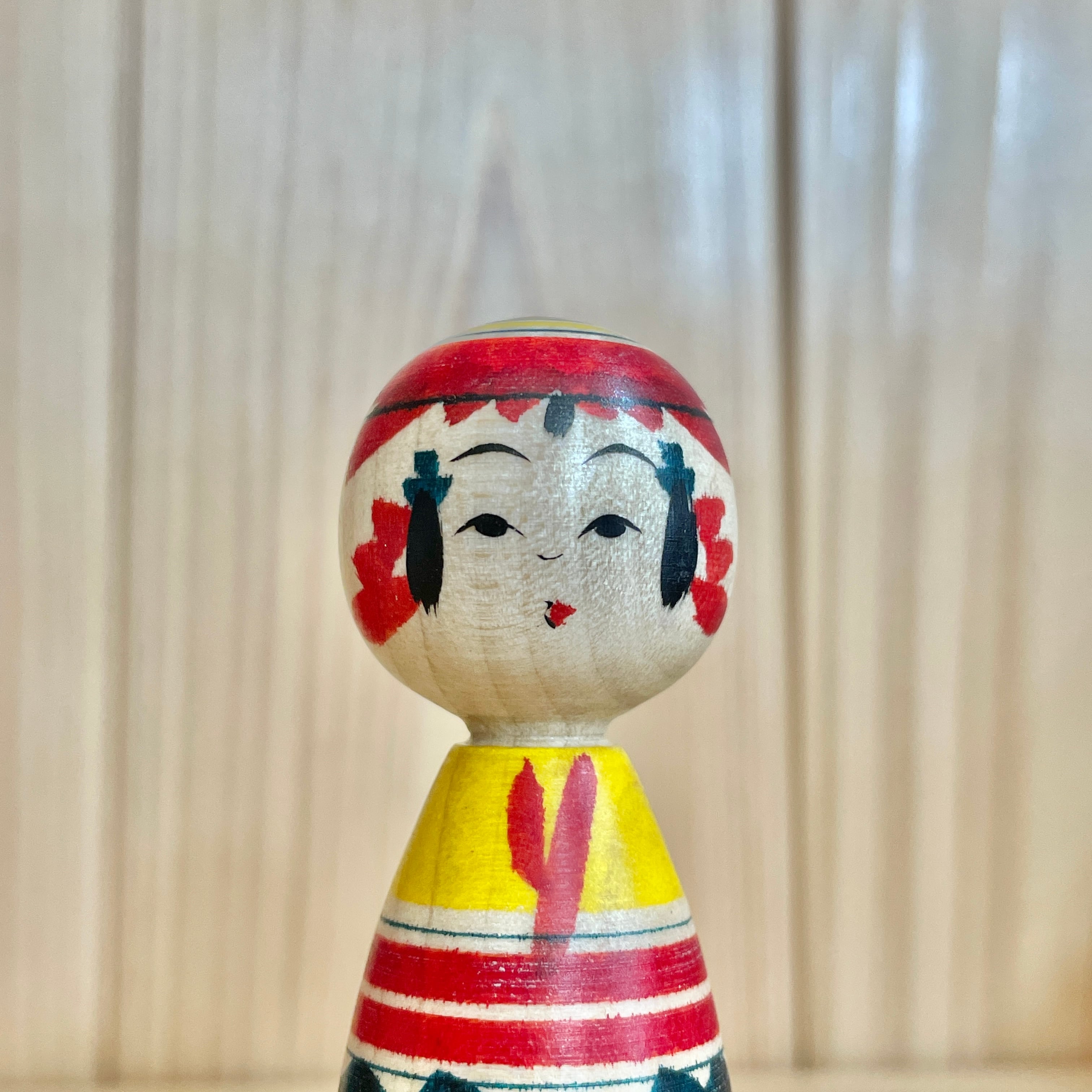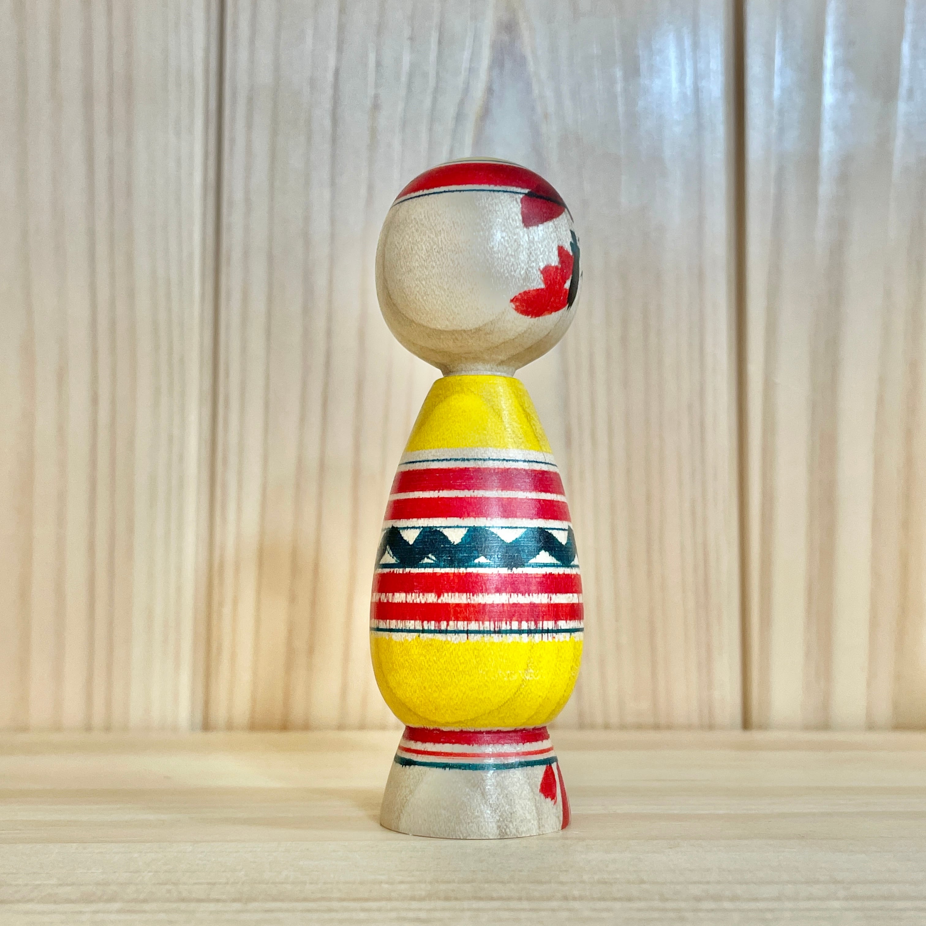 【池内潮音工人:弥治郎系】3寸 こけし 赤黄 :約9cm N10SI-533