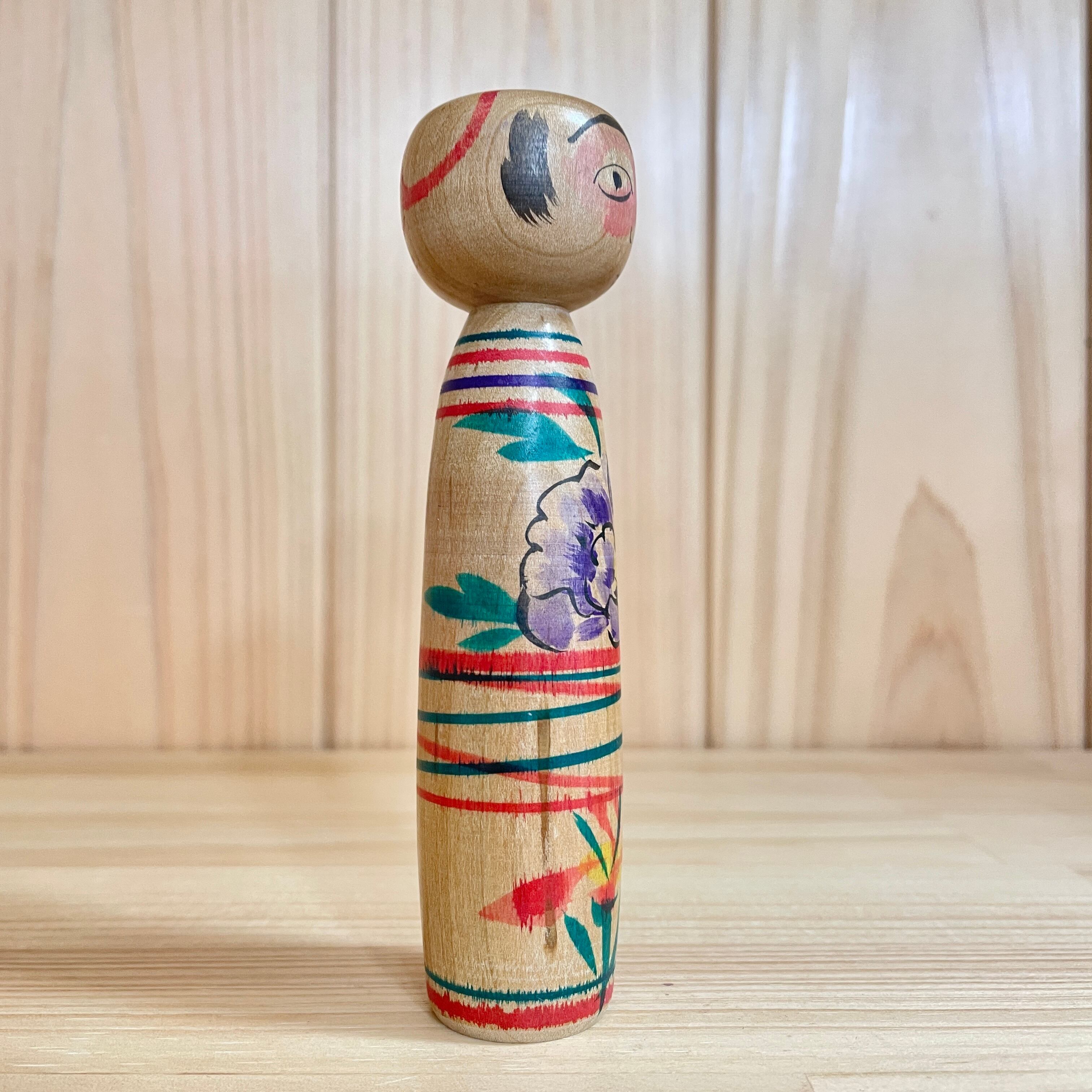 【柿崎文雄工人:中ノ沢系】4寸 こけし 牡丹:12㎝ N12FK-188