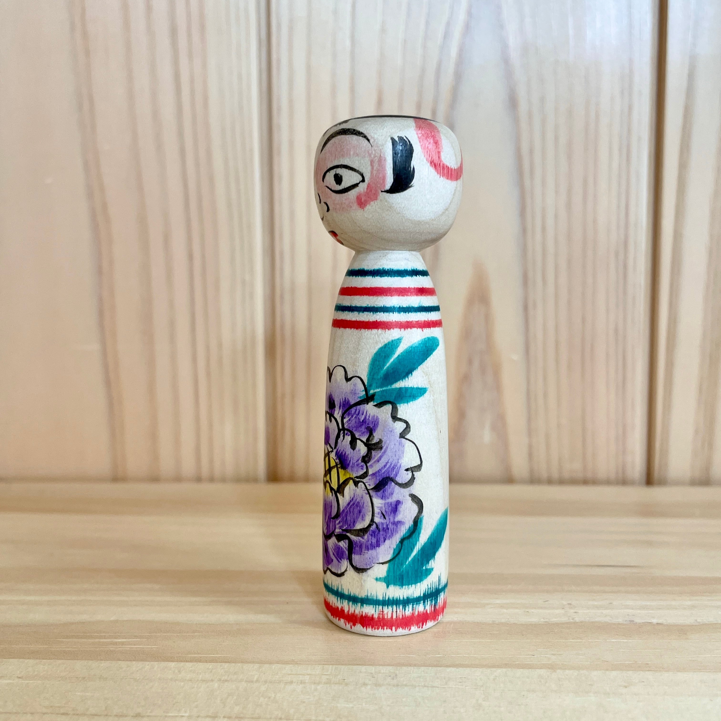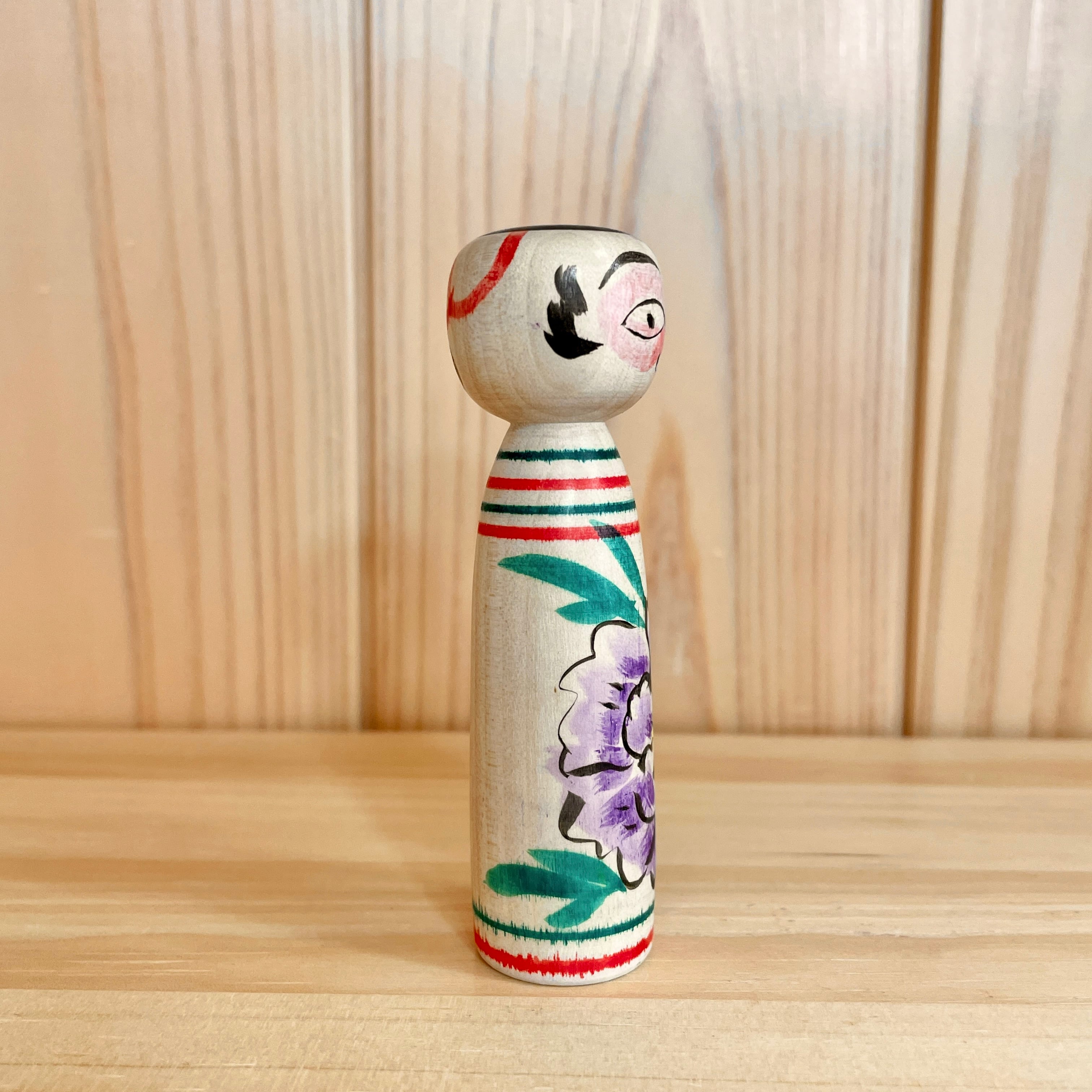 【柿崎文雄工人:中ノ沢系】3寸 こけし 牡丹 紫:約9㎝ N12FK-169