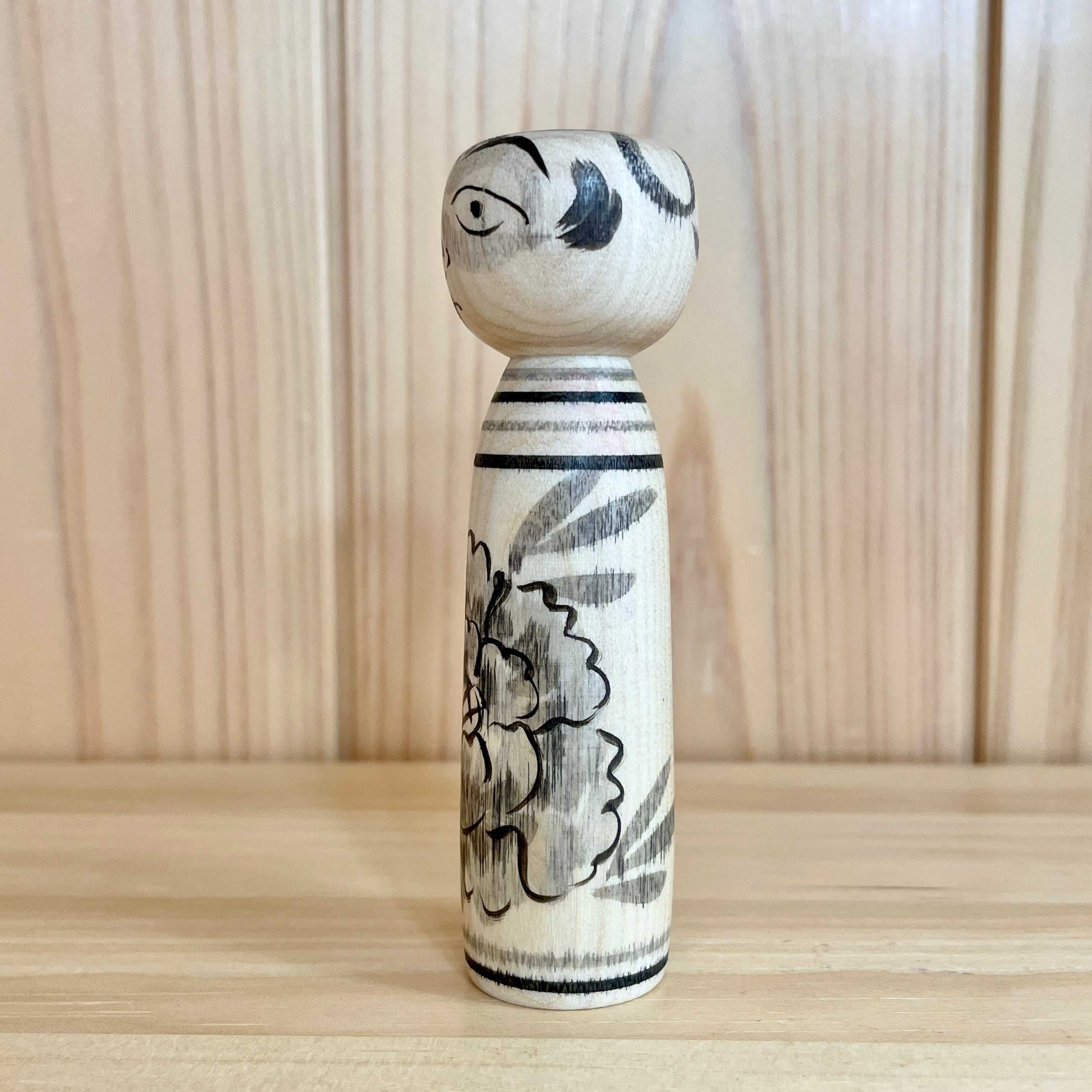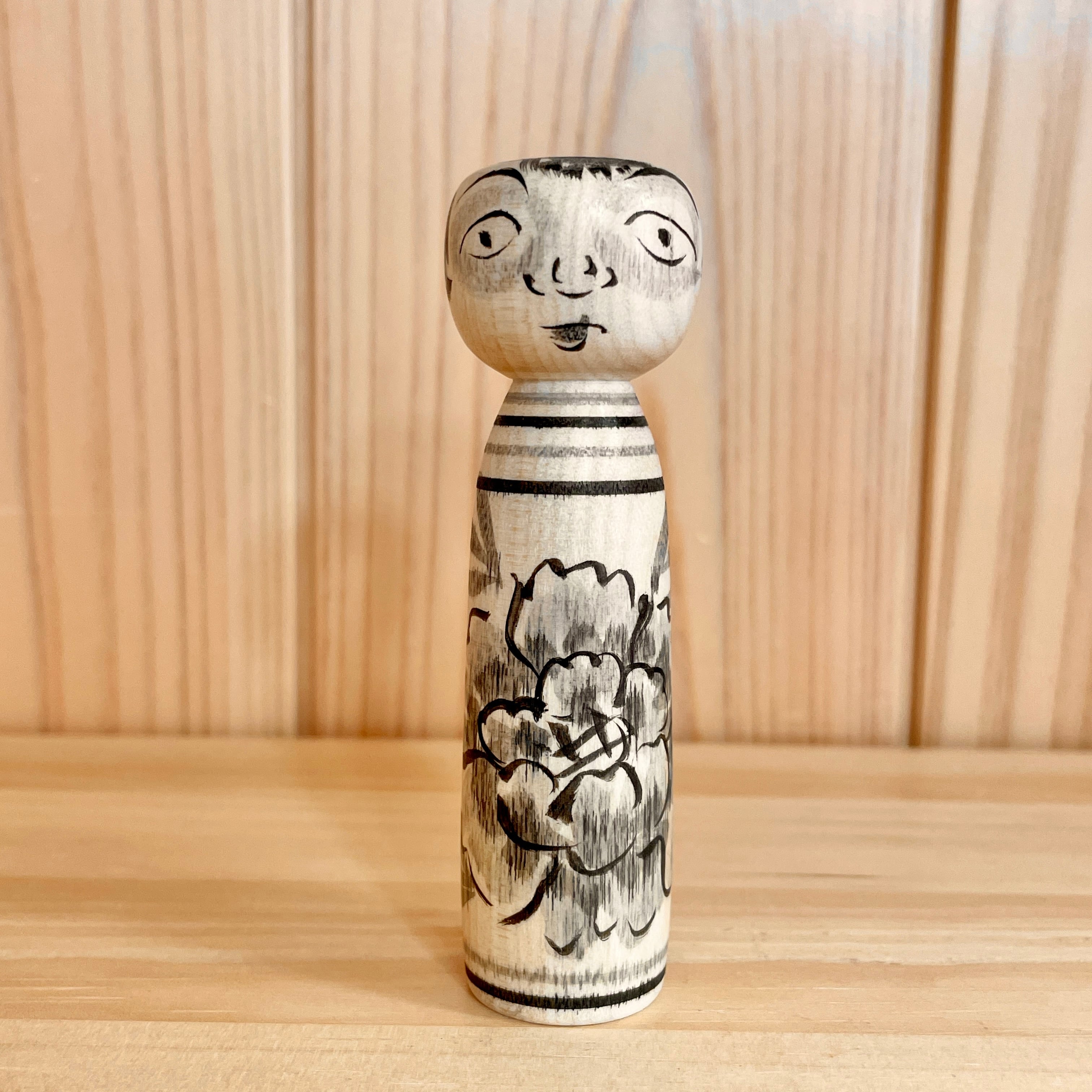 【柿崎文雄工人:中ノ沢系】3寸 こけし 牡丹 黒:約9㎝ N12FK-160