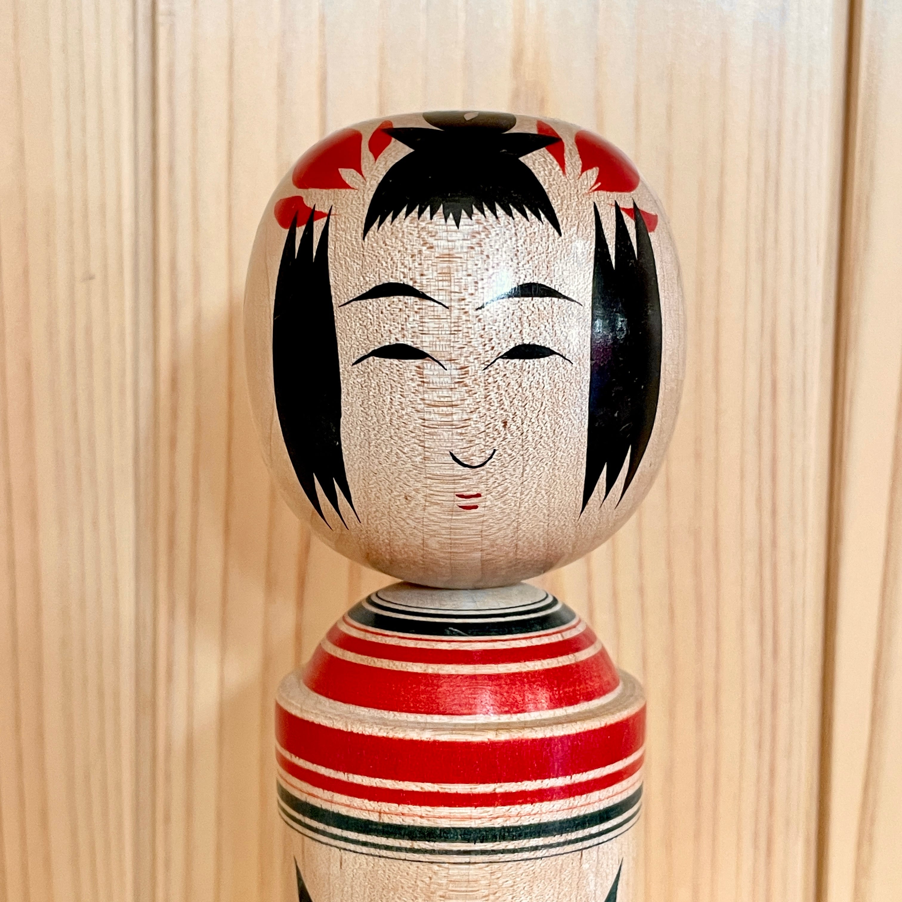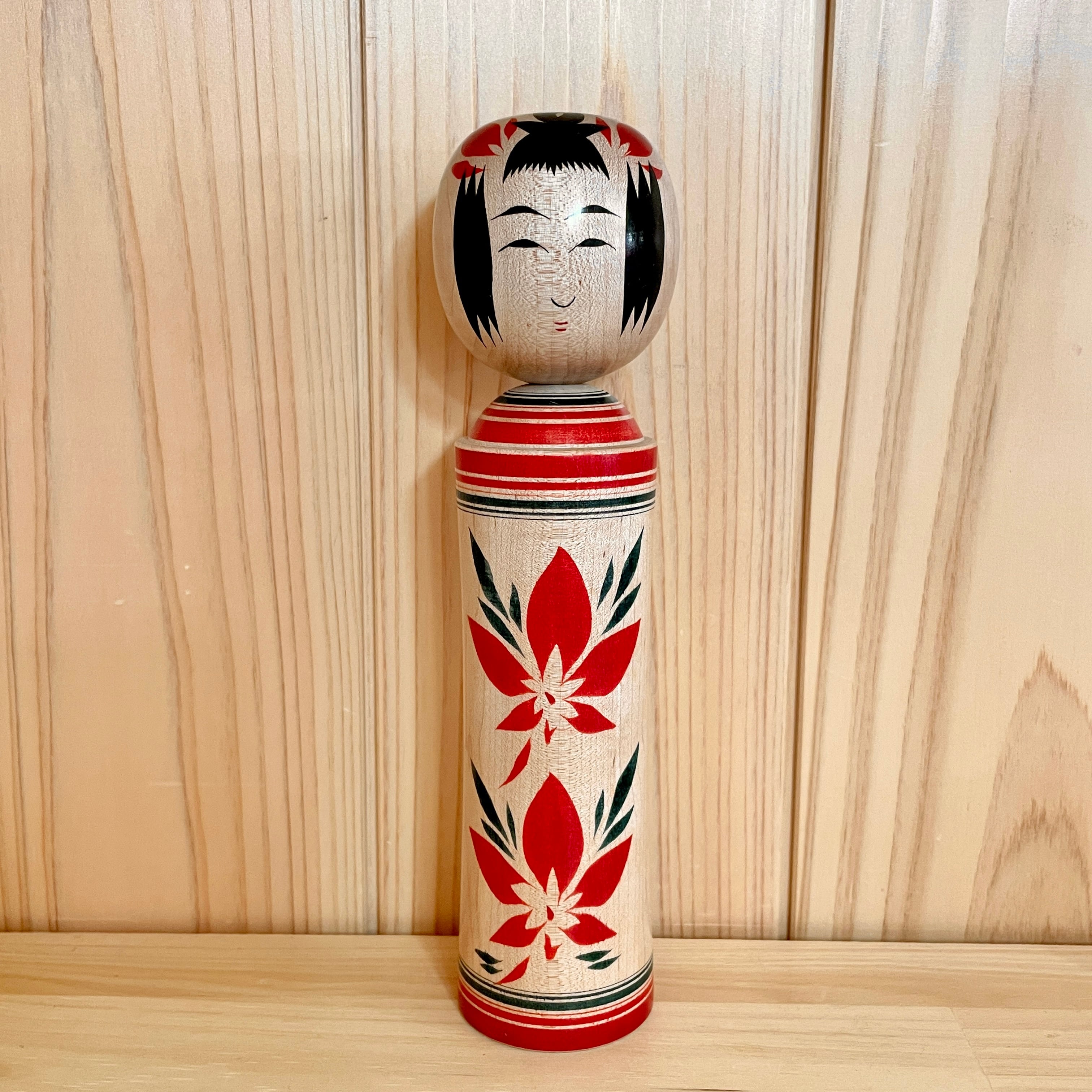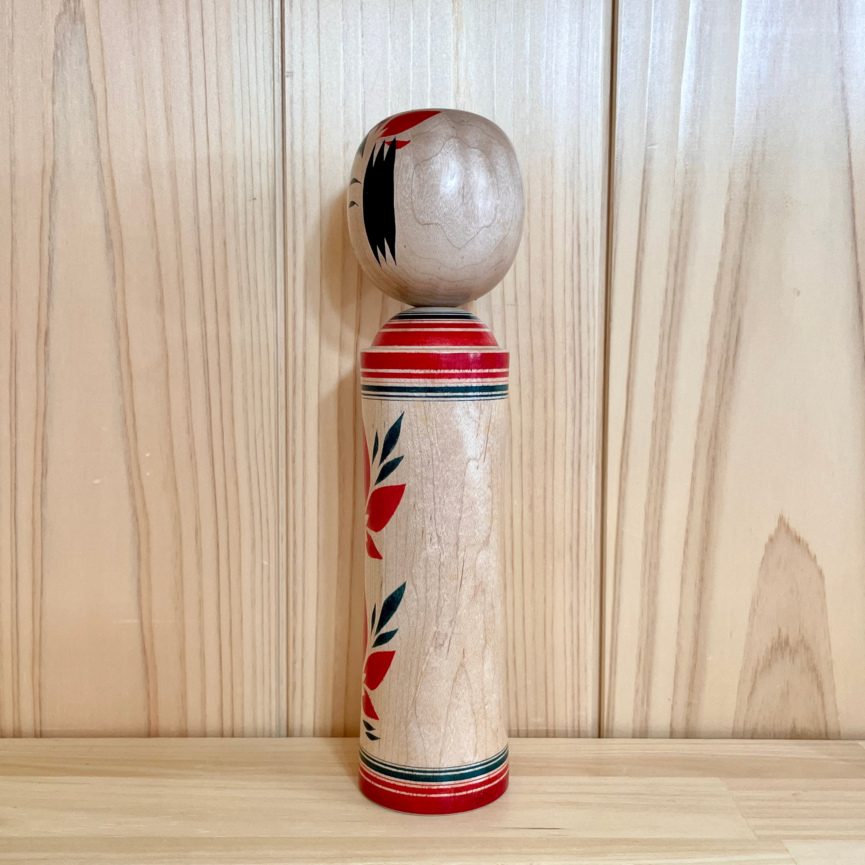 【小林繁男工人:鳴子系】7寸 こけし 楓模様:約21㎝ N4SK-2