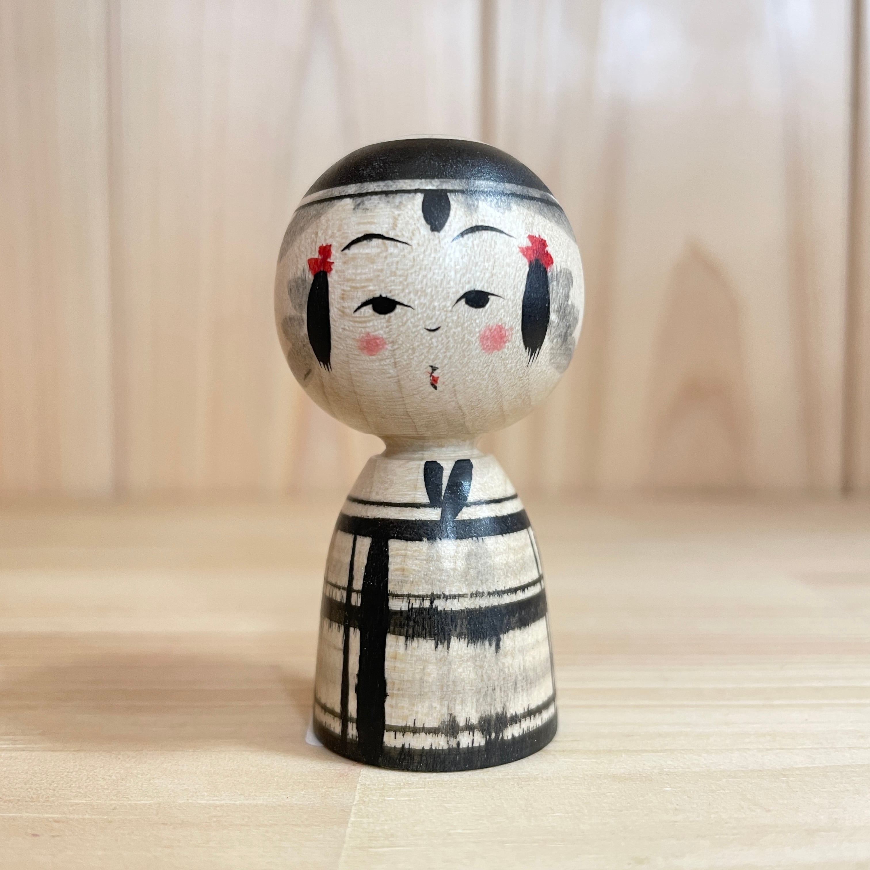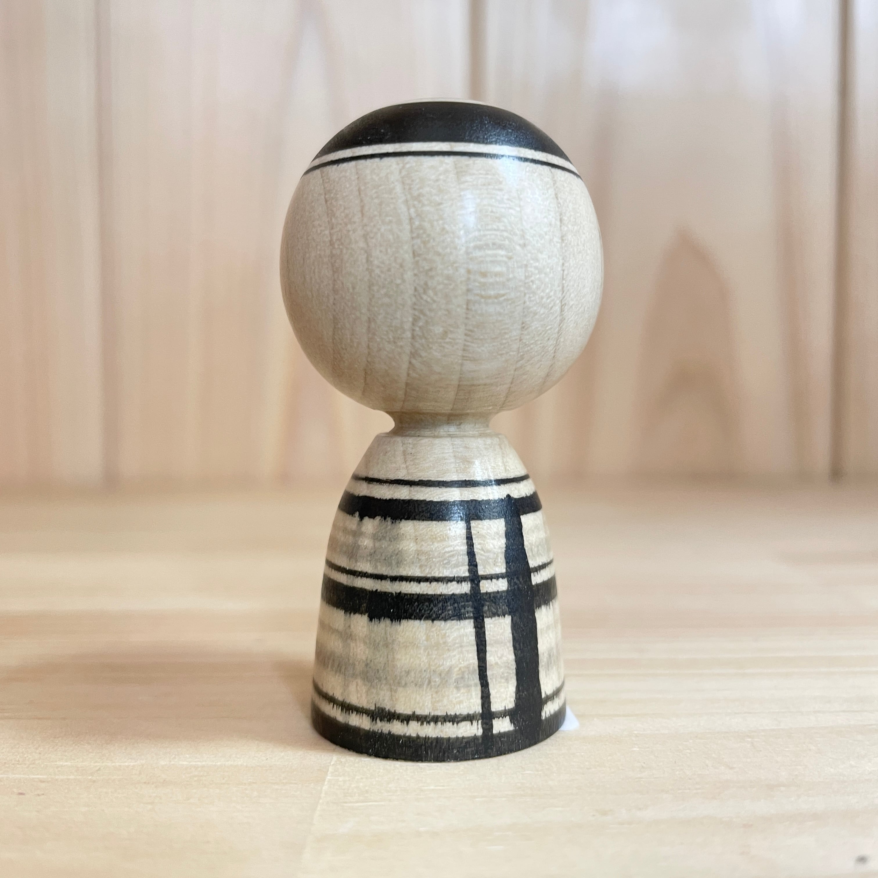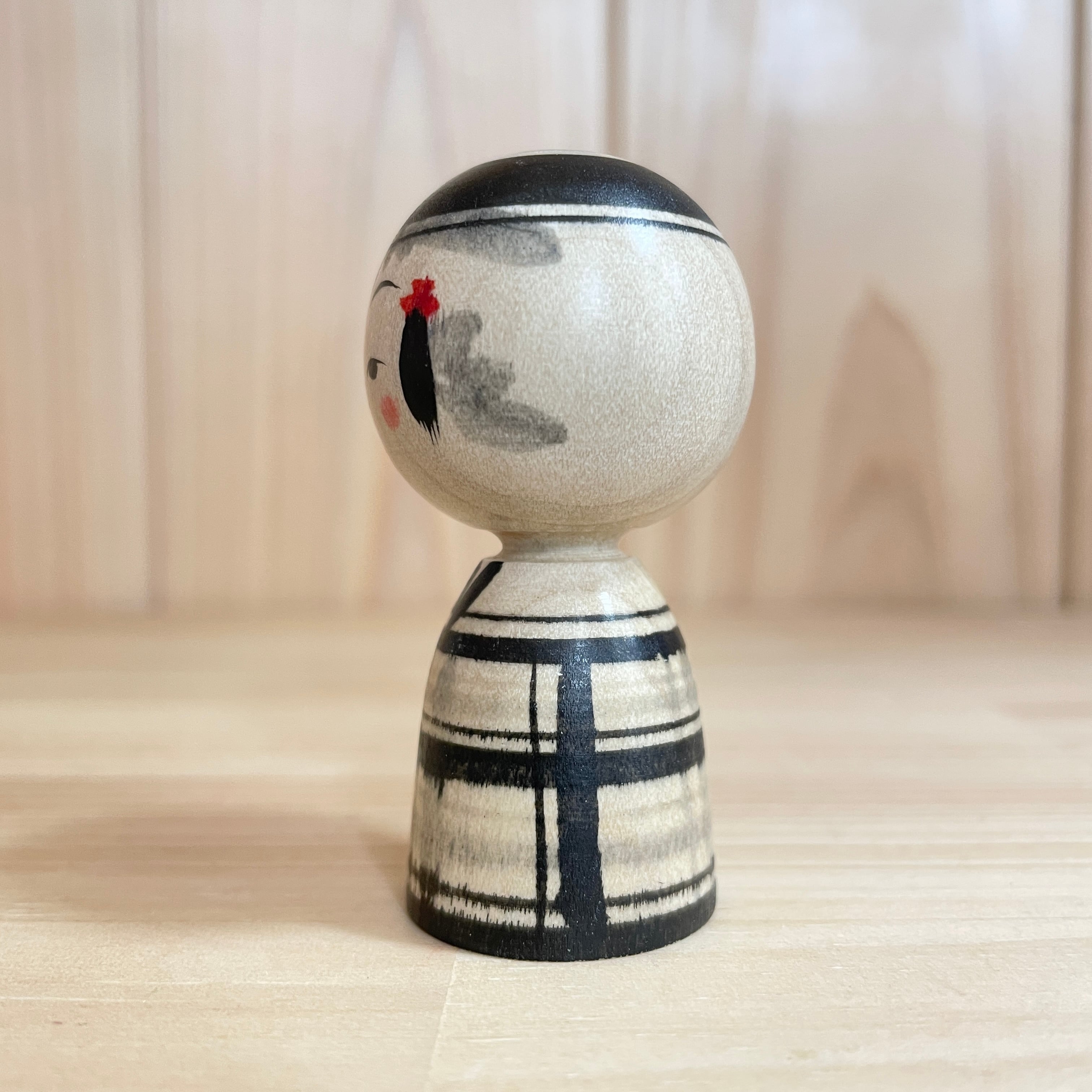 【池内潮音工人:弥治郎系】2寸 こけし 冬色チェック 黒:6cm N10SI-730