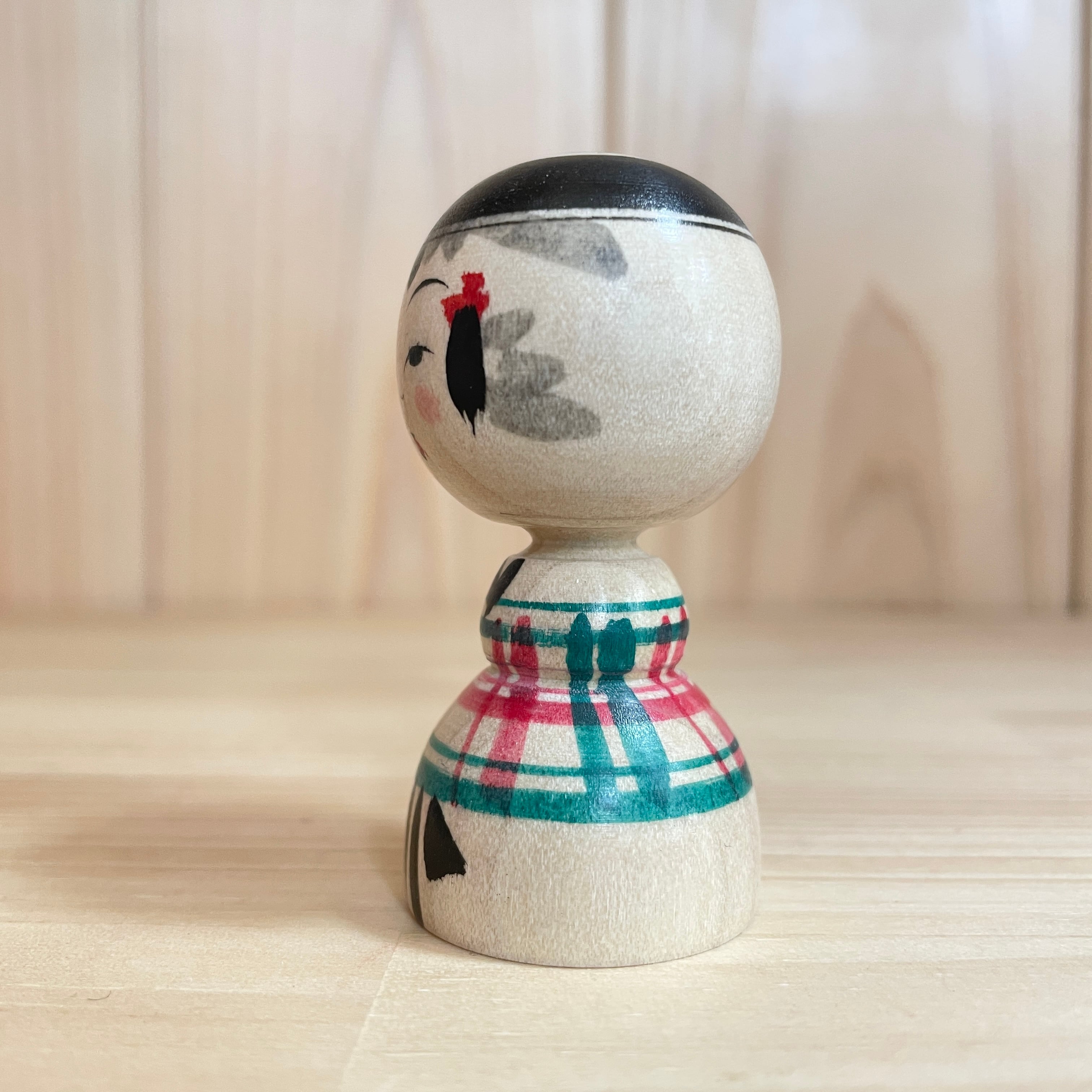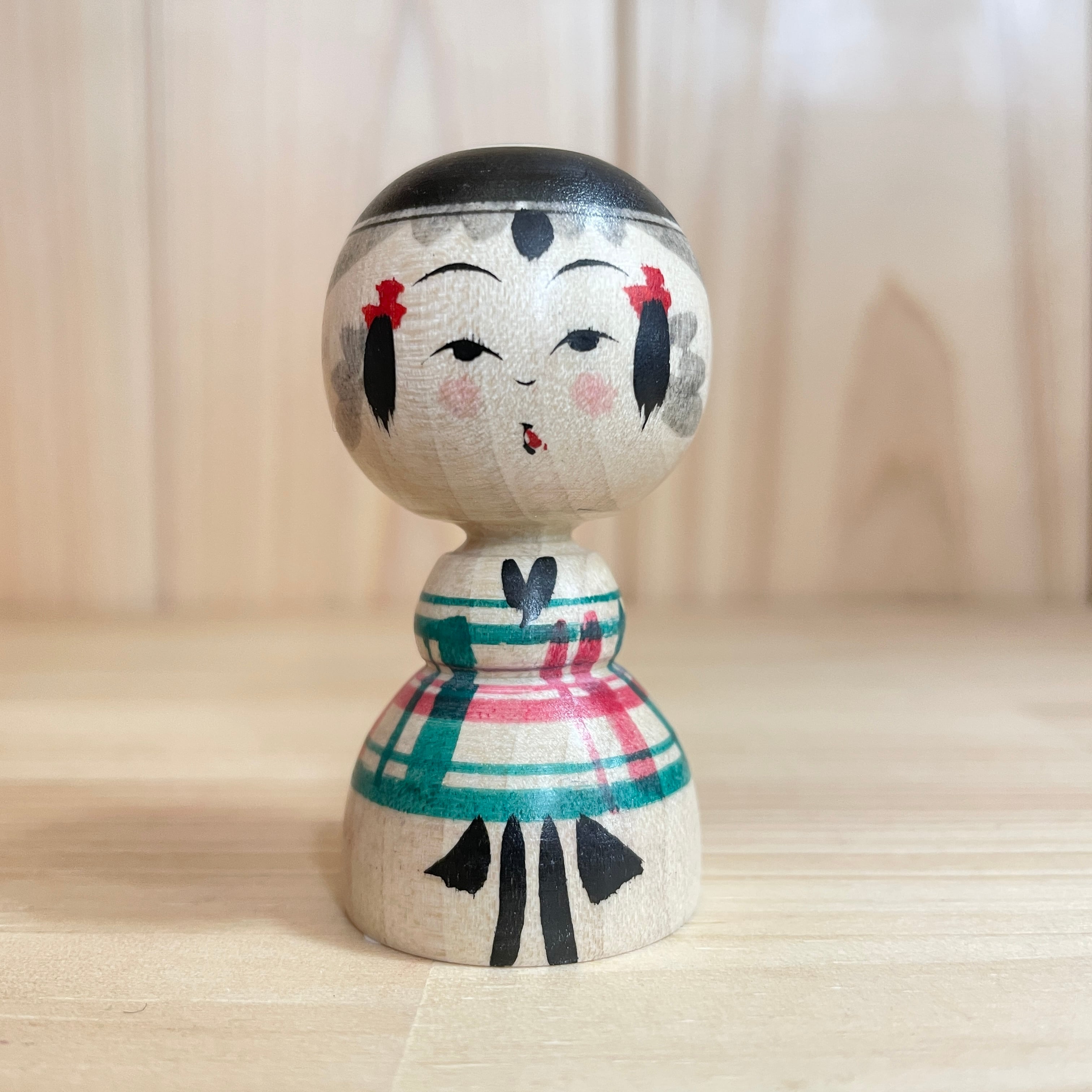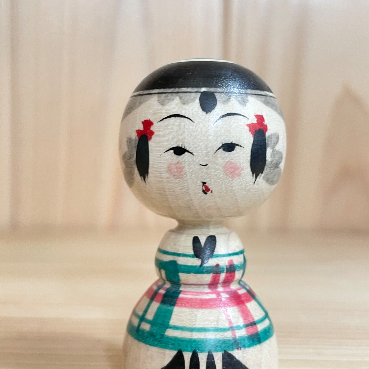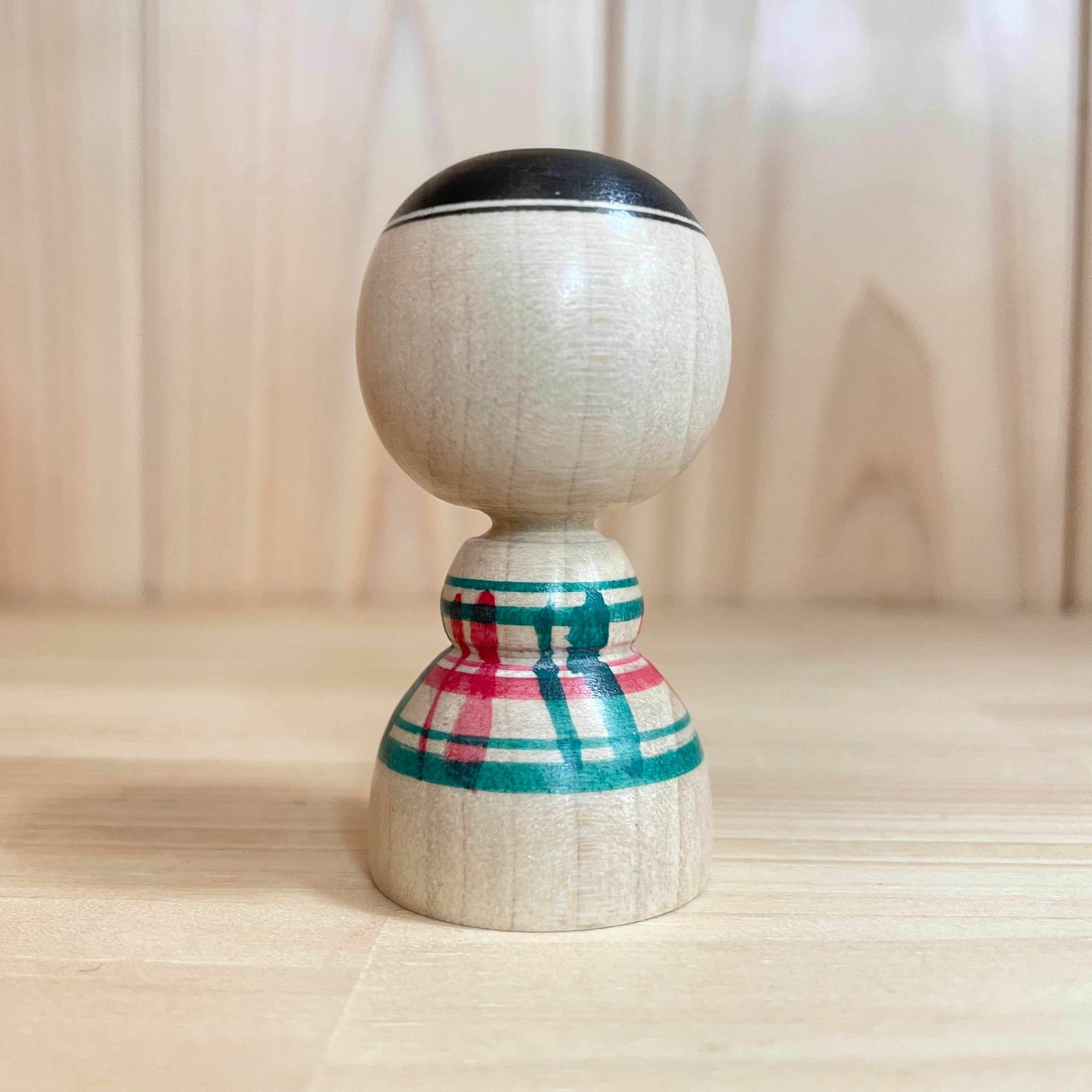 【池内潮音工人:弥治郎系】2寸 こけし 冬色チェック 緑・赤:6cm N10SI-714