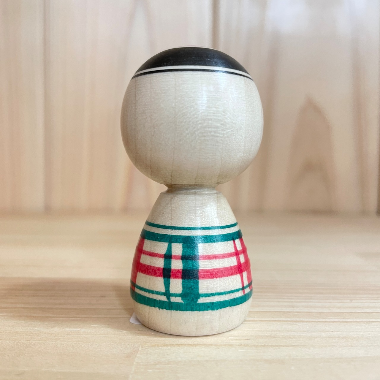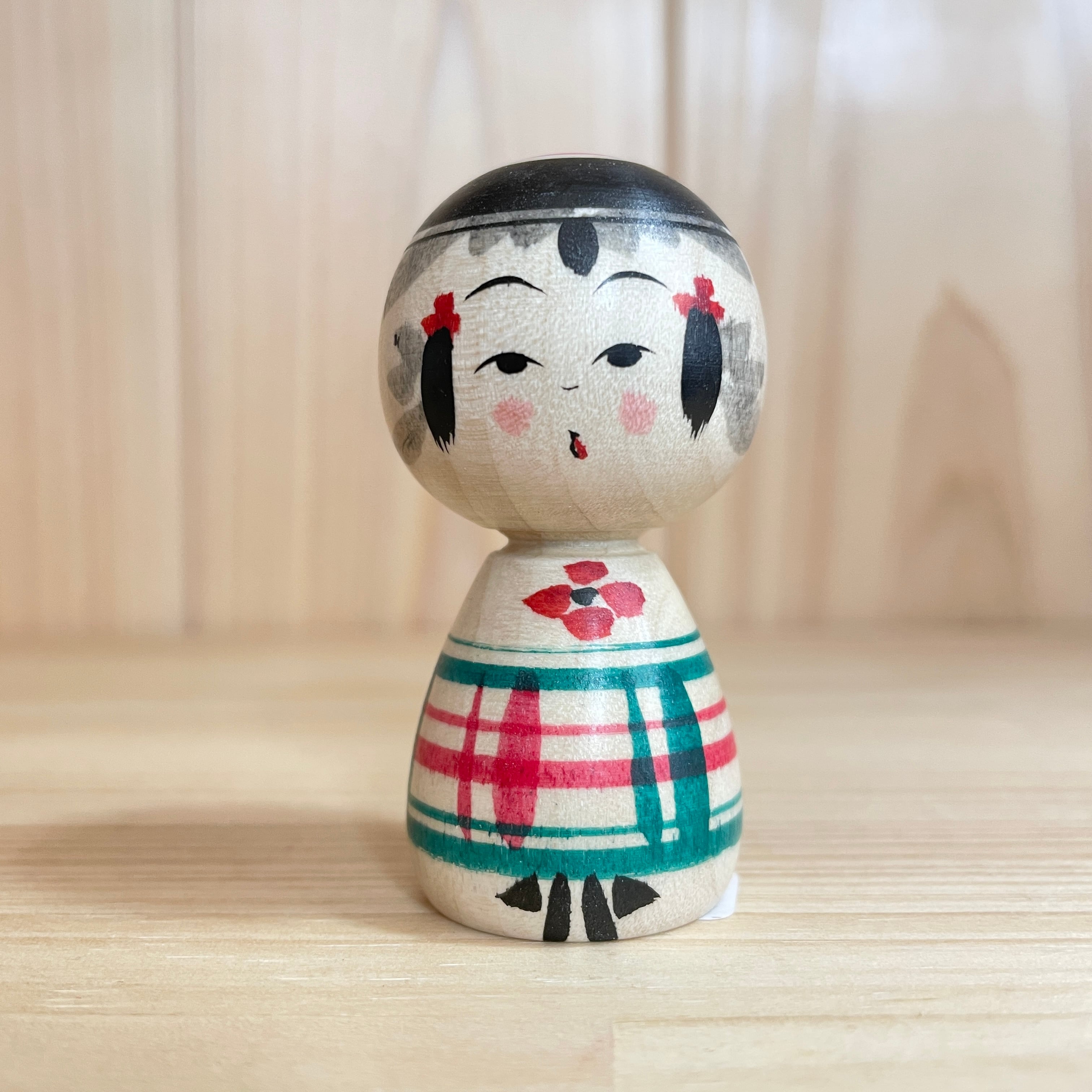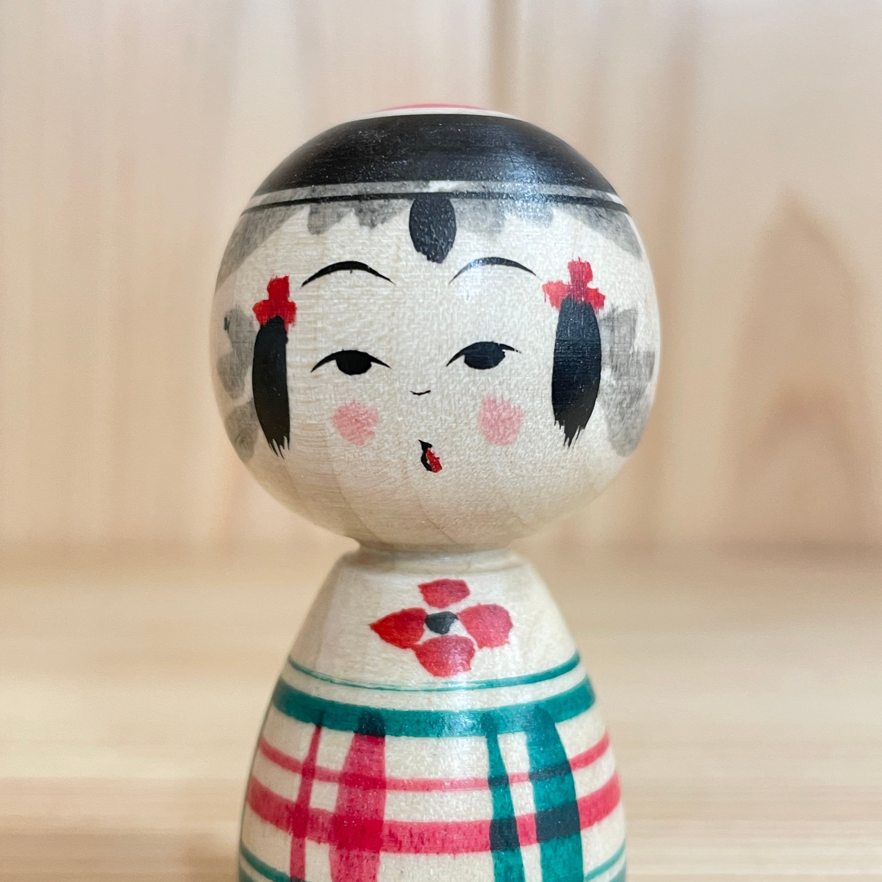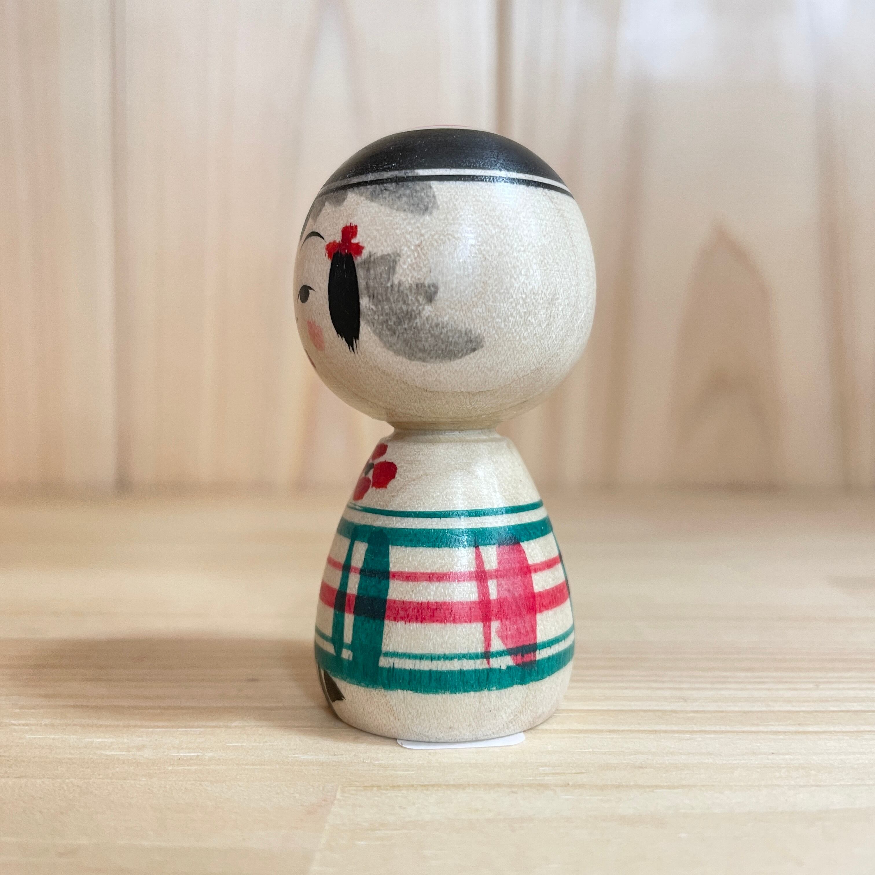 【池内潮音工人:弥治郎系】2寸 こけし 冬色チェック 緑・赤:6cm N10SI-715