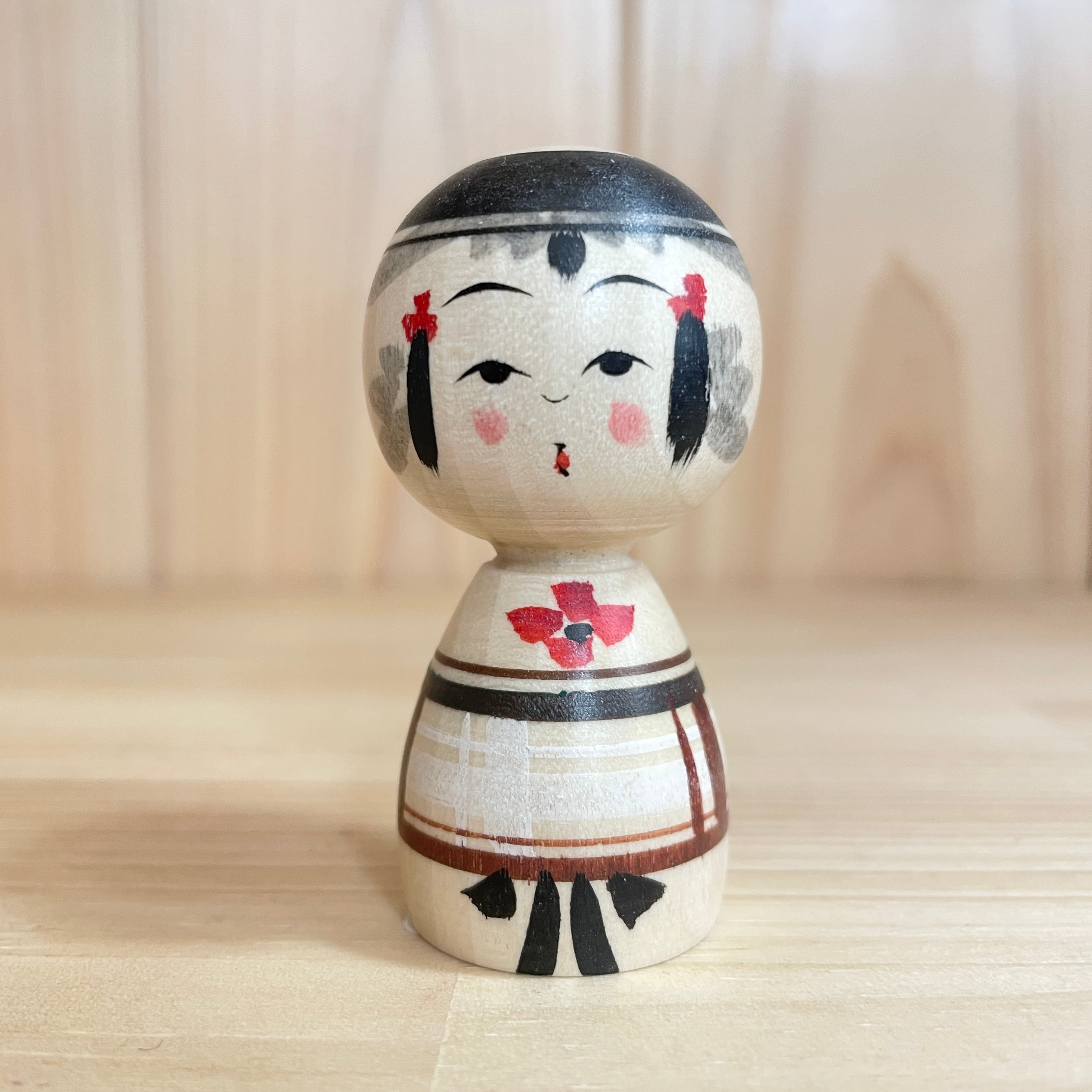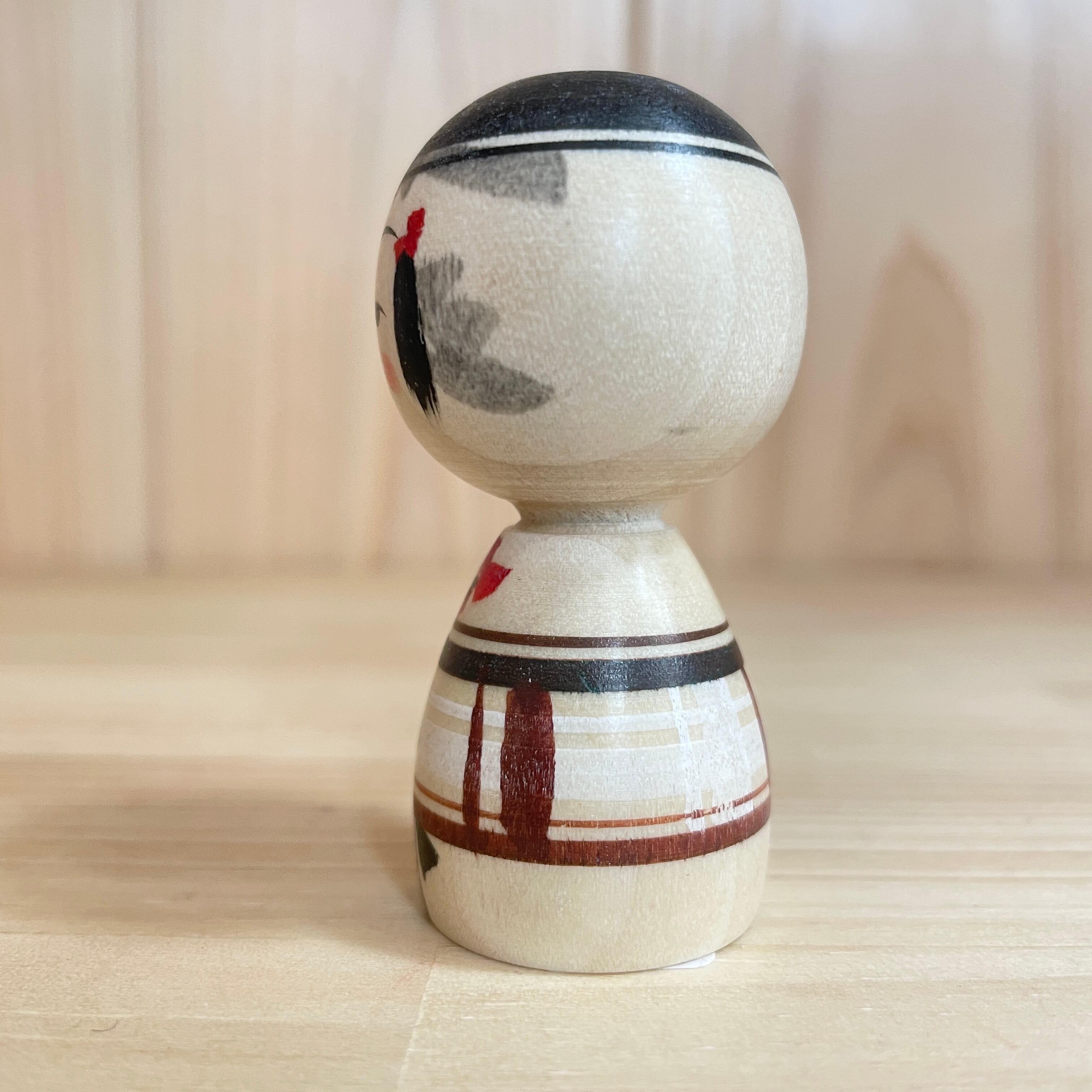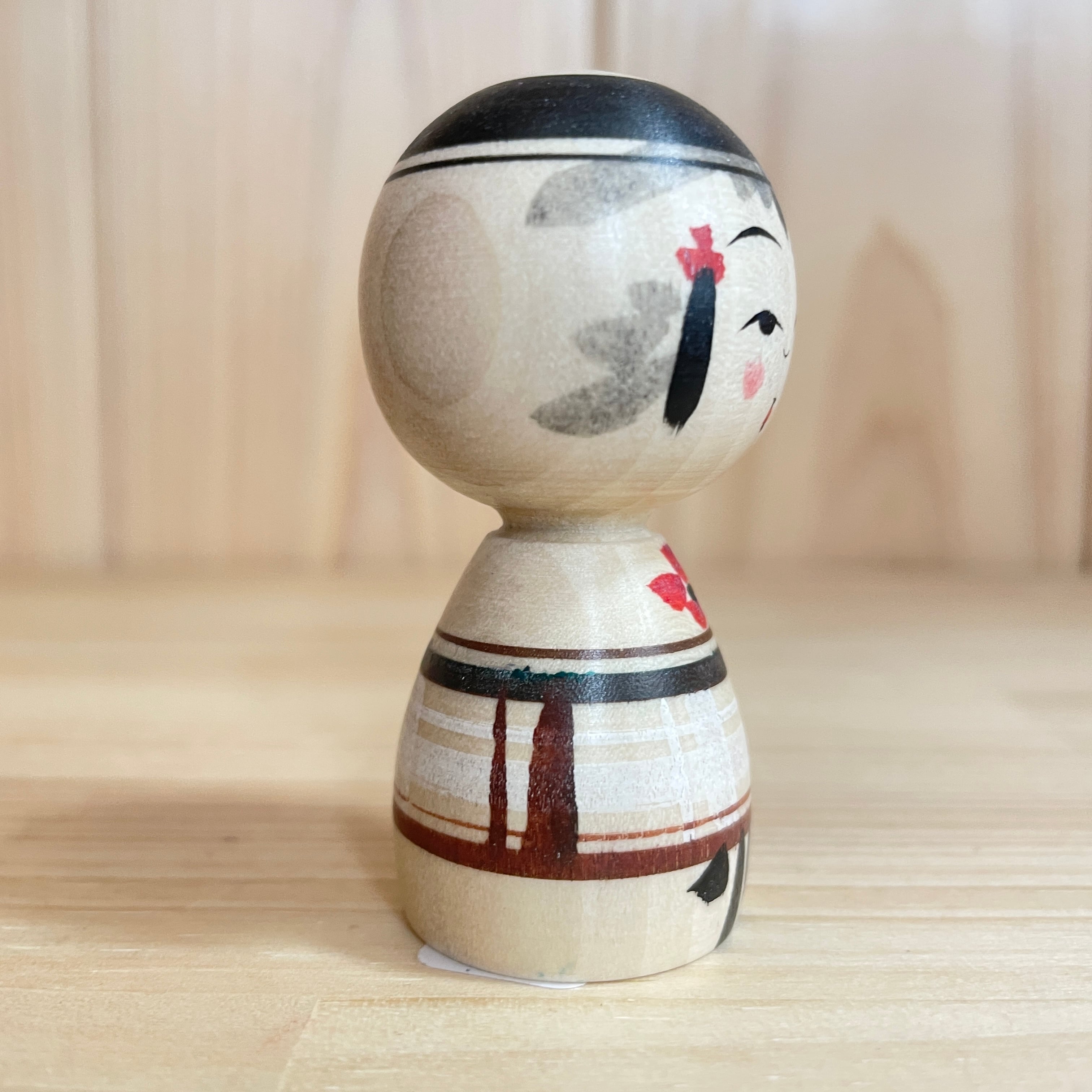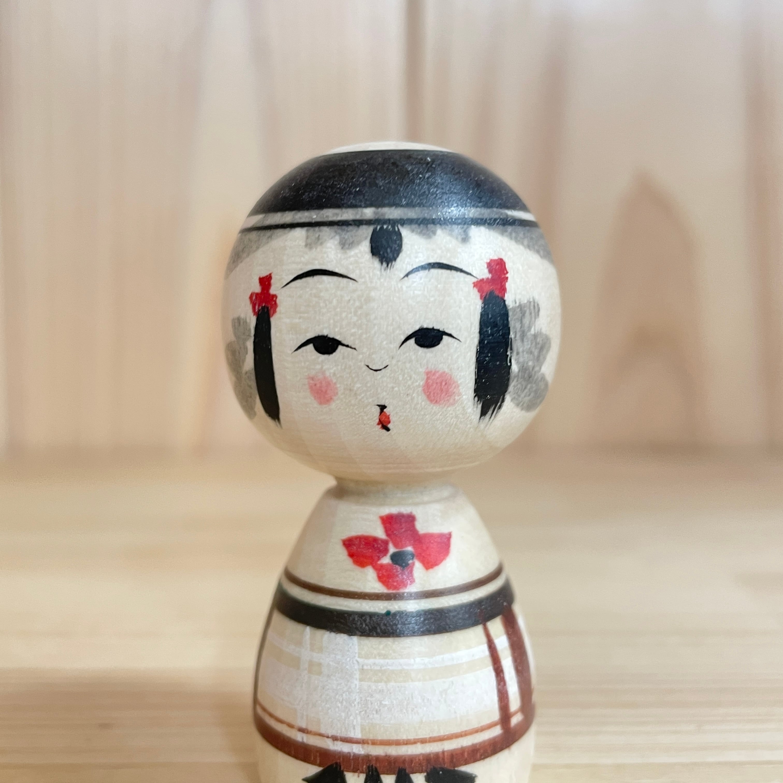 【池内潮音工人:弥治郎系】2寸 こけし 冬色チェック 茶:6cm N10SI-718