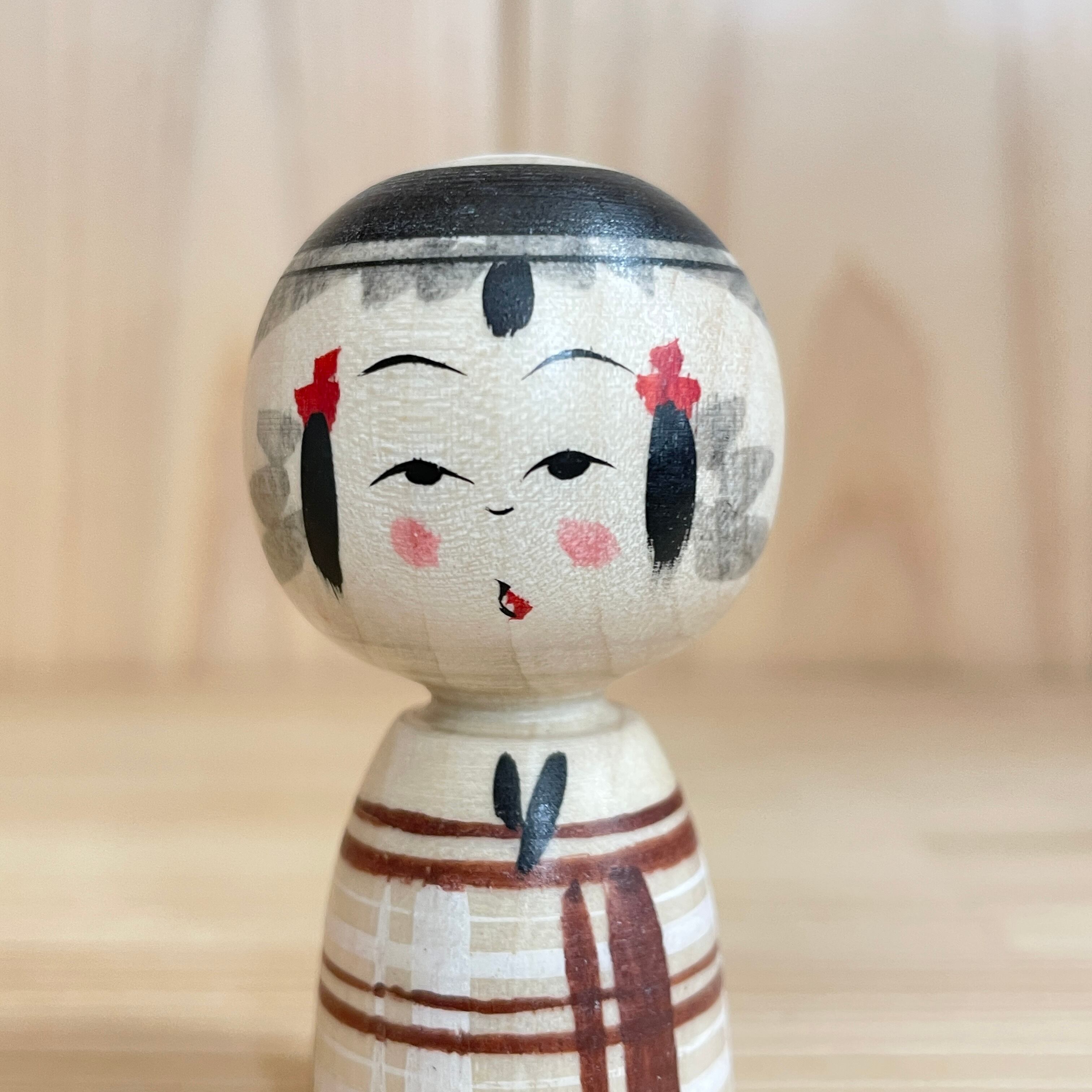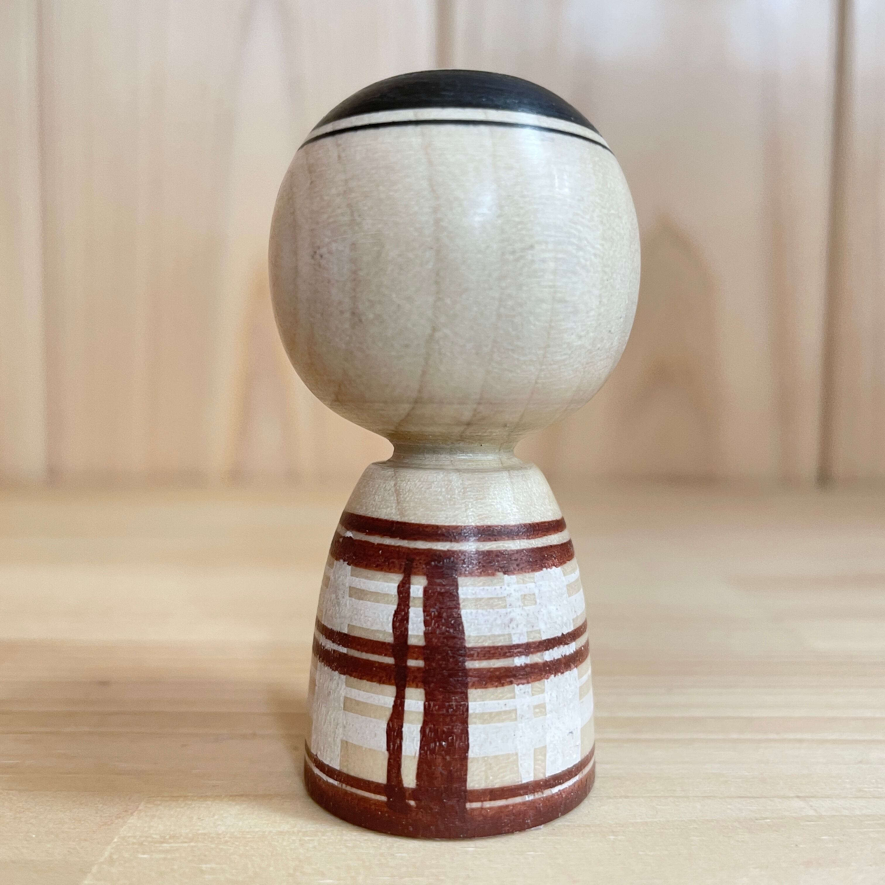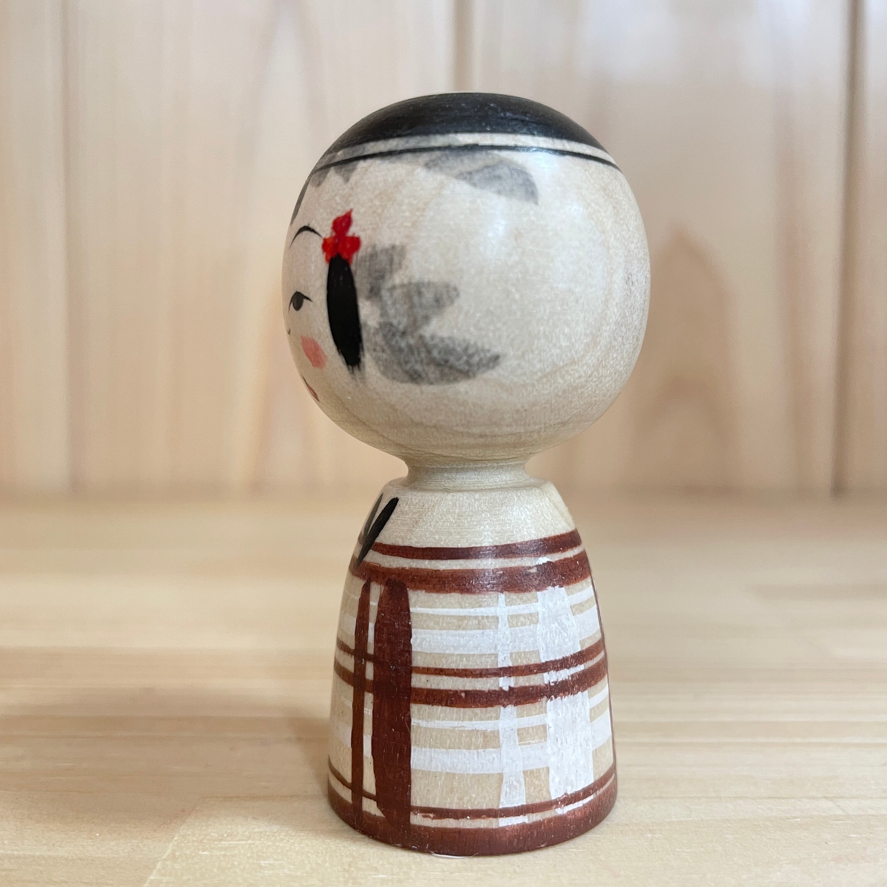 【池内潮音工人:弥治郎系】2寸 こけし 冬色チェック 茶:6cm N10SI-722