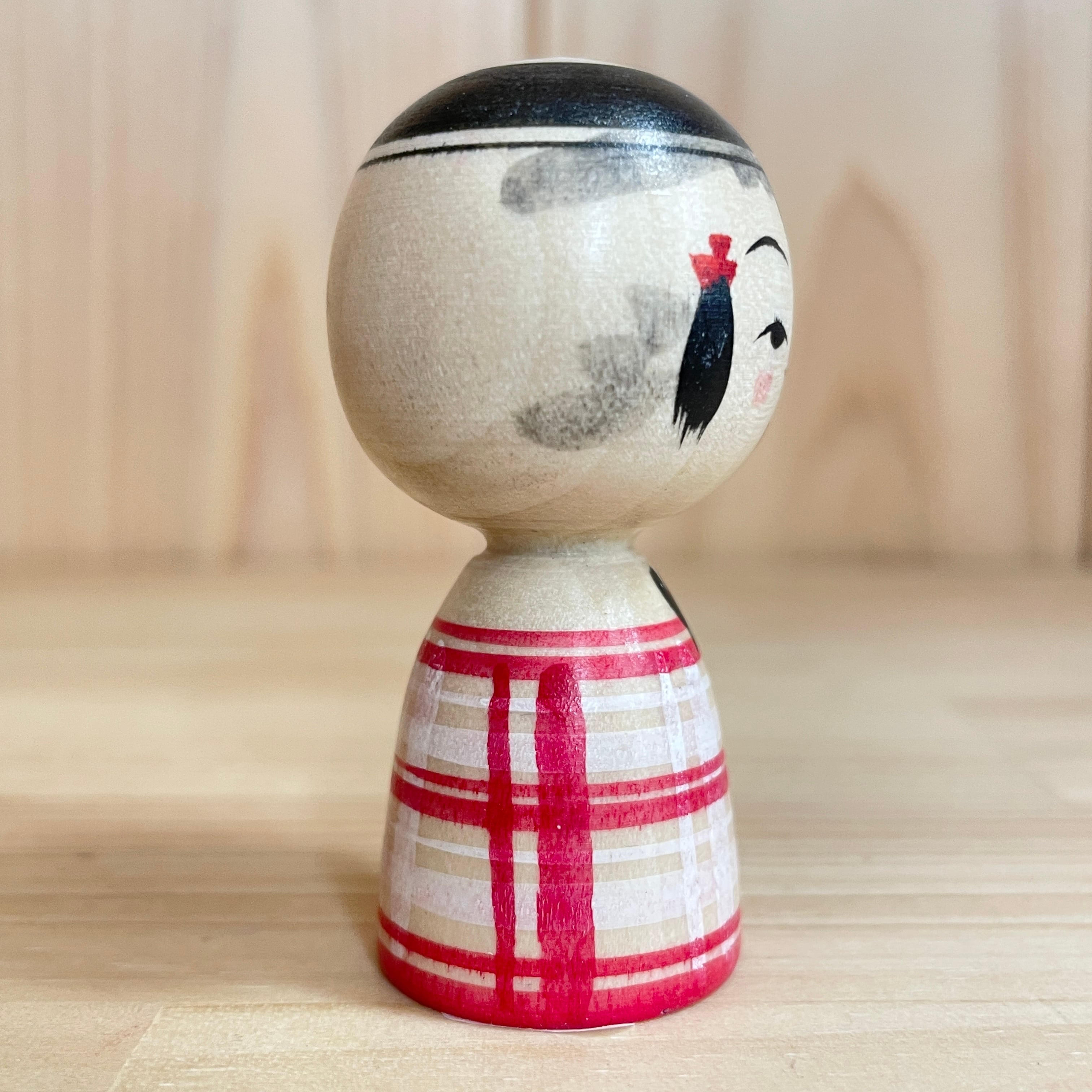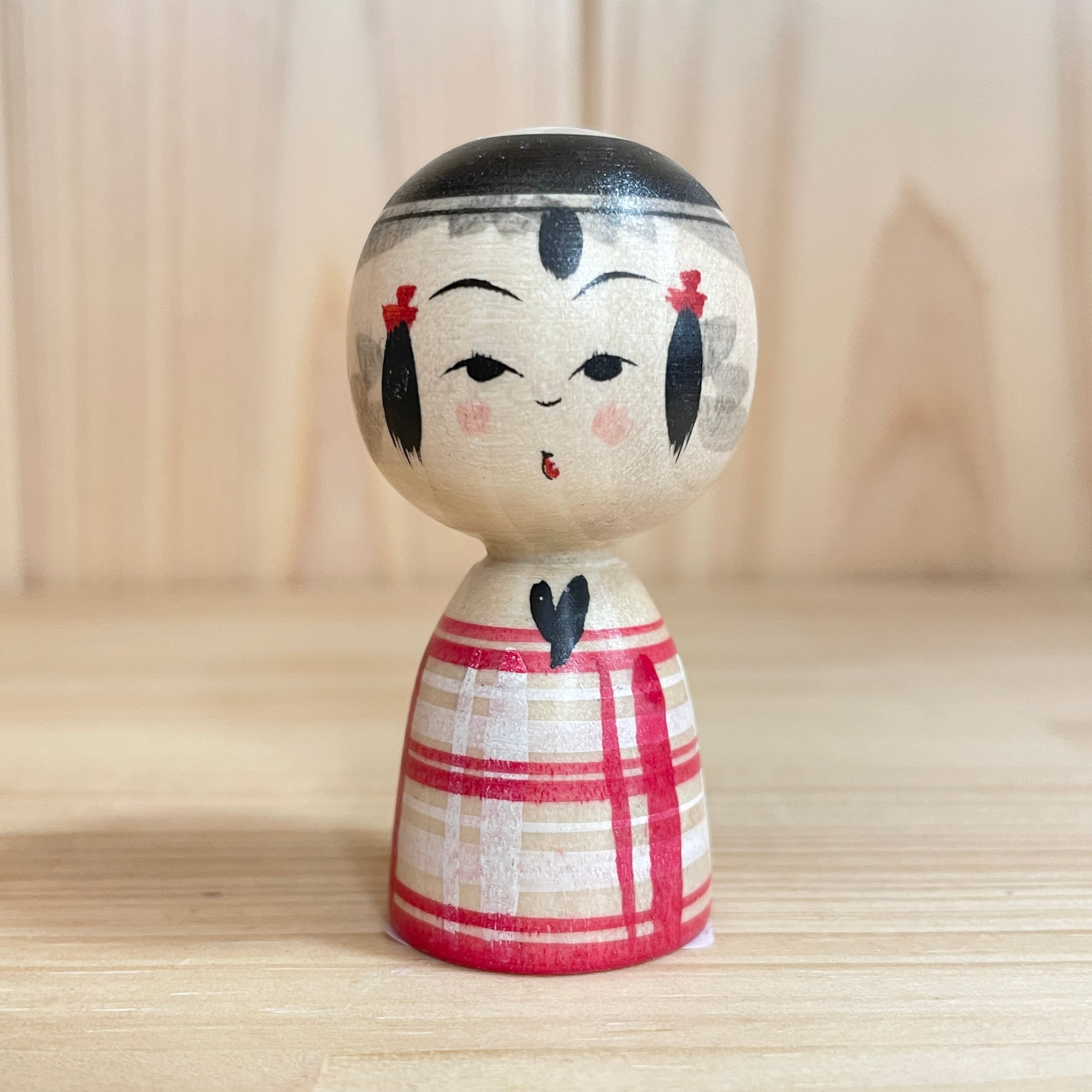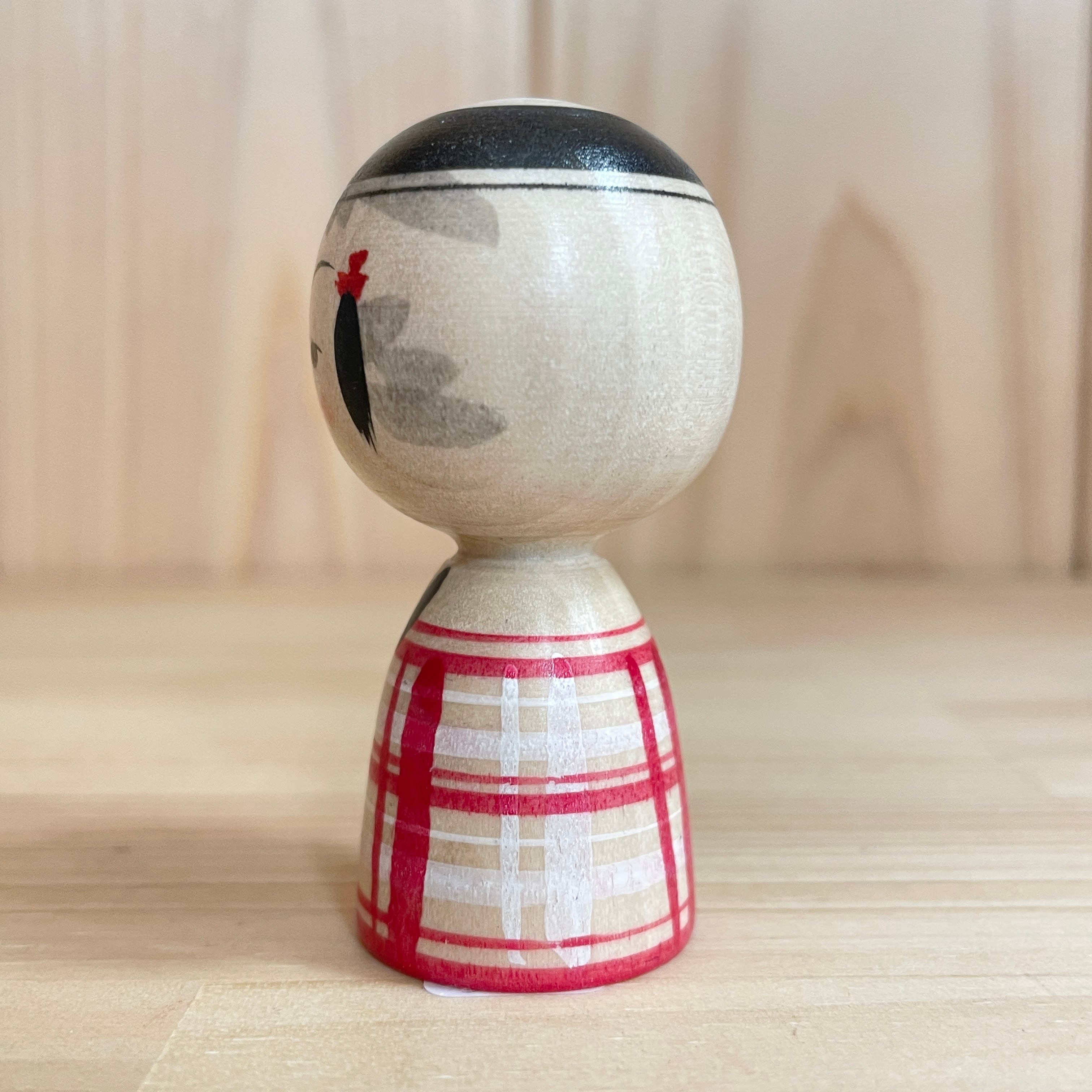 【池内潮音工人:弥治郎系】2寸 こけし 冬色チェック 赤・白:6cm N10SI-688