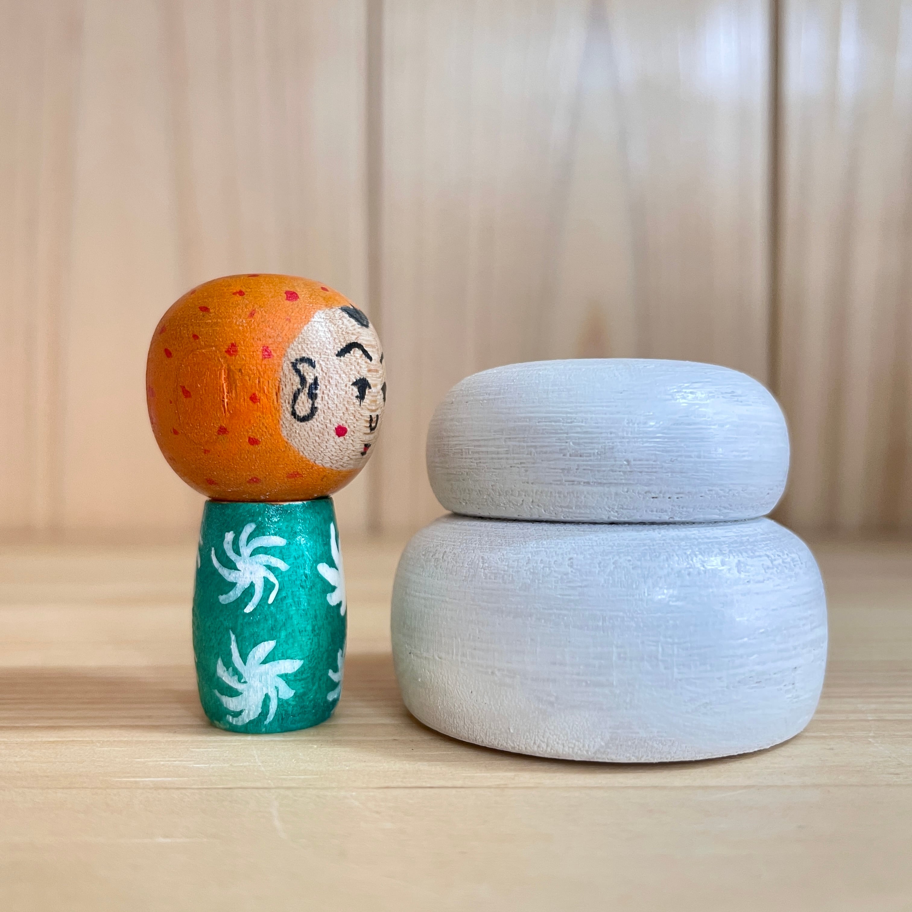 【西山敏彦工人:土湯系】お正月 鏡餅 こけし:5.5cm N11TN-217