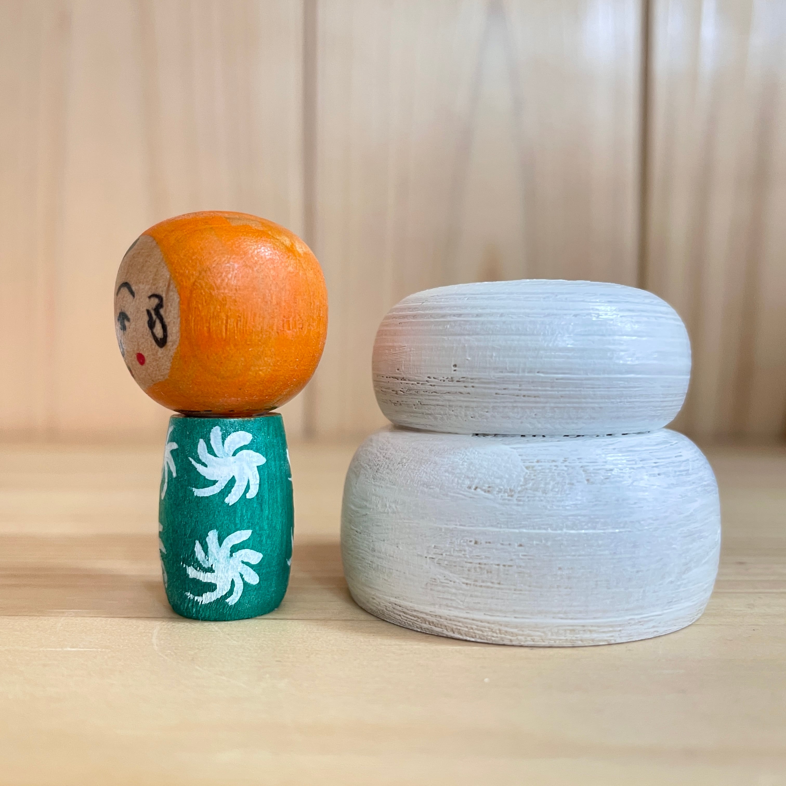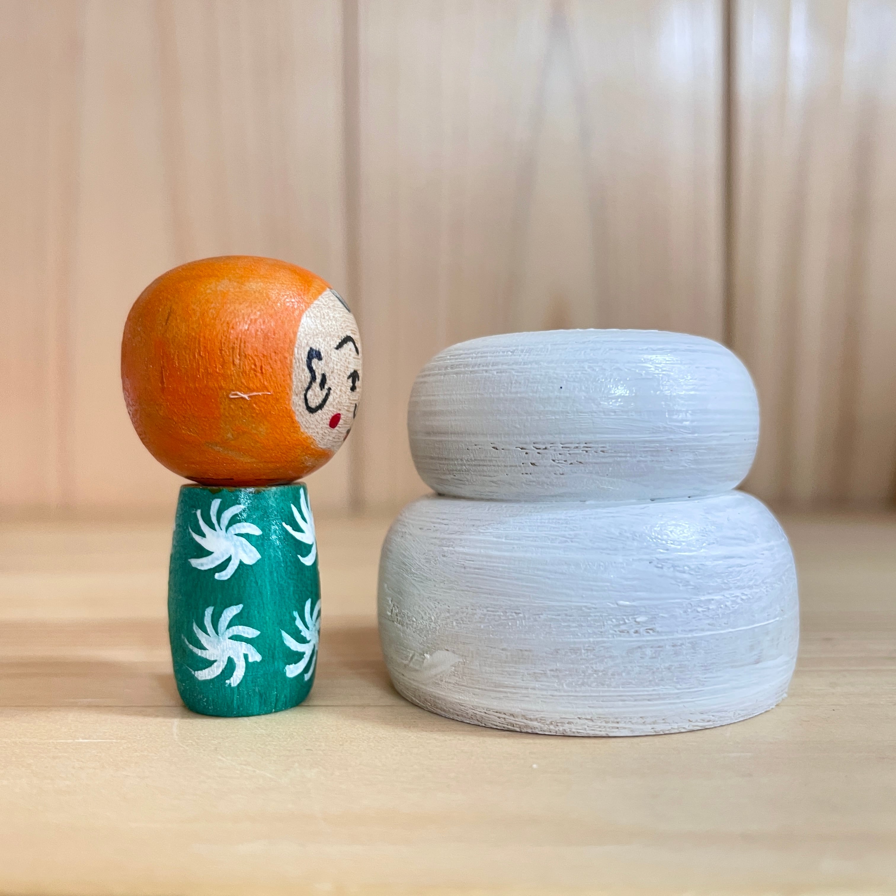 【西山敏彦工人:土湯系】お正月 鏡餅 こけし:5.5cm N11TN-222