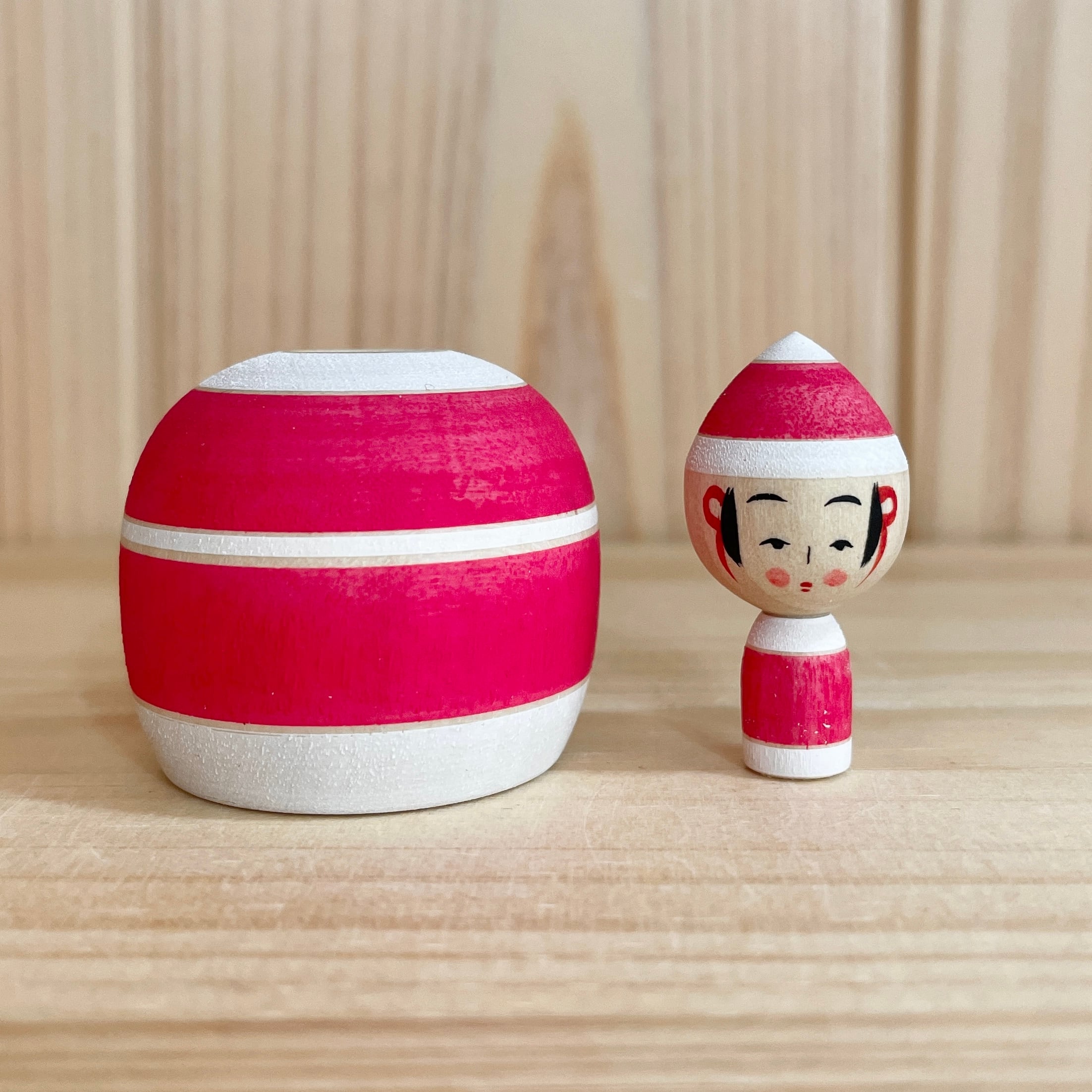 Since all kokeshi dolls are handmade by craftsmen, the grain and coloring of each kokeshi doll differs from one another.