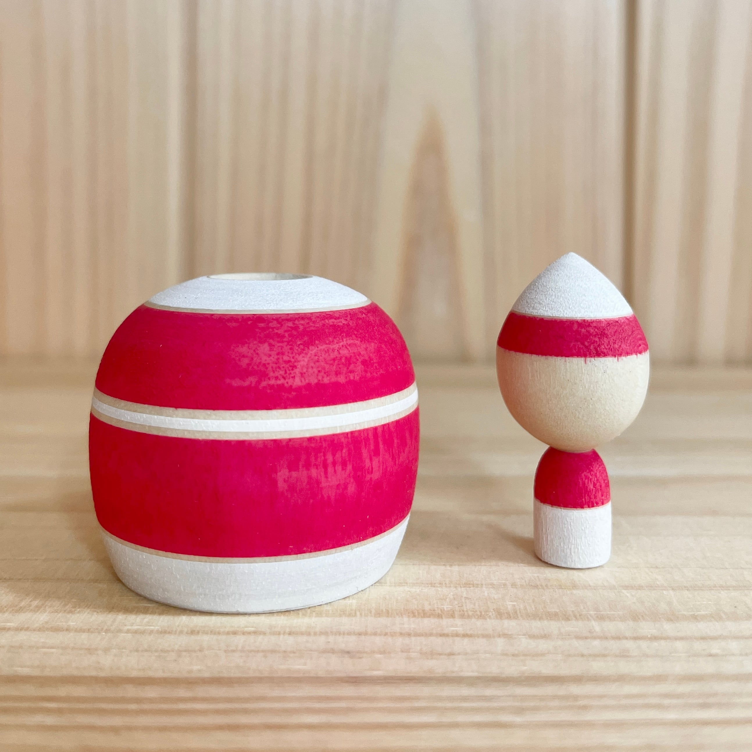 Since all kokeshi dolls are handmade by craftsmen, the grain and coloring of each kokeshi doll differs from one another.