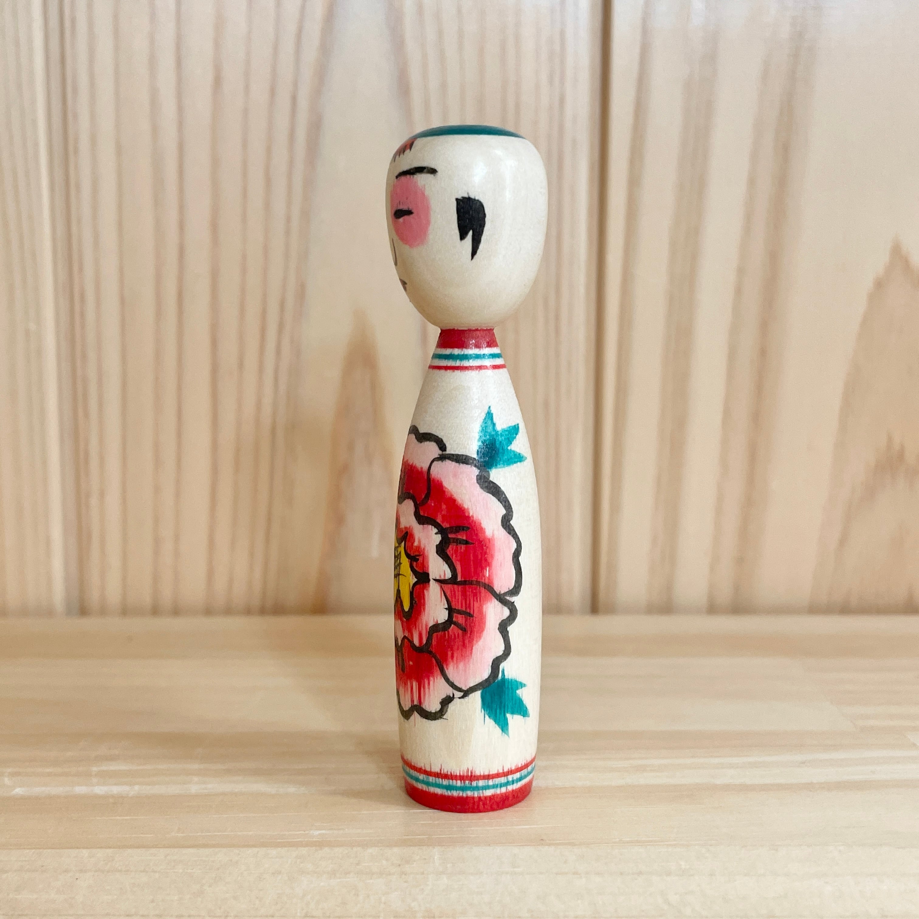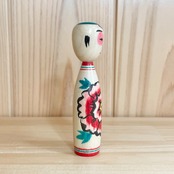 【半澤正則工人:中ノ沢系】3寸 こけし ぽつ目 牡丹模様:9㎝ N12MH-51